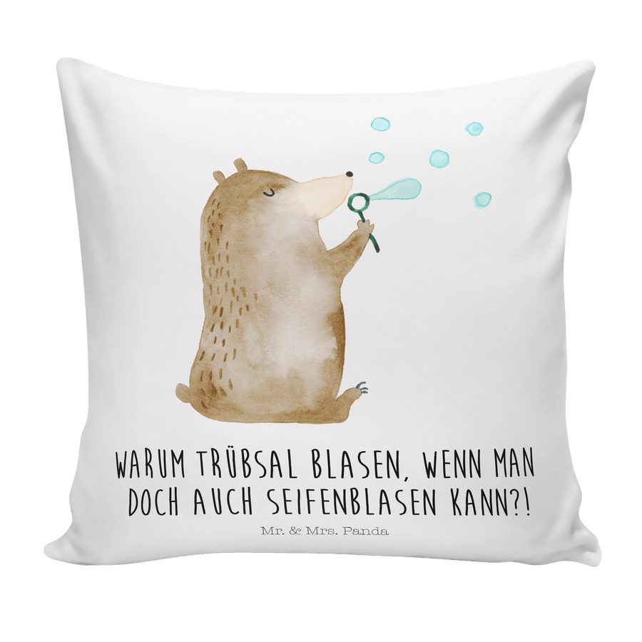 40x40 Kissen Bär Seifenblasen - mit Spruch - Weiß