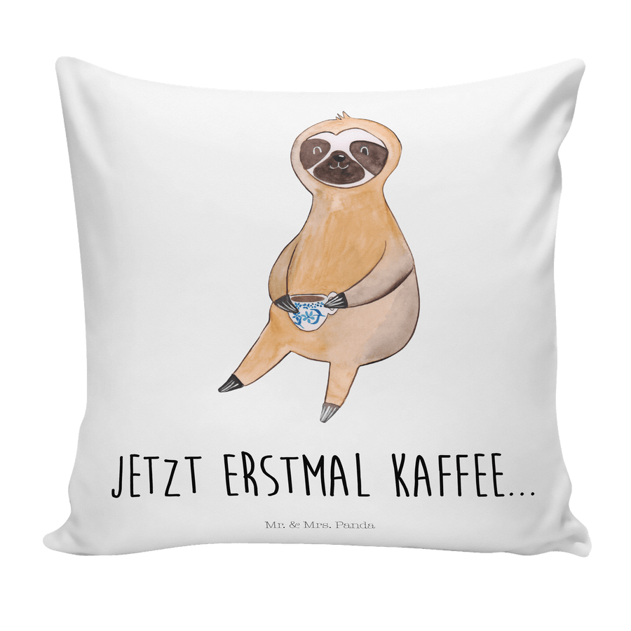 40x40 Kissen Faultier Kaffee - mit Spruch - Weiß