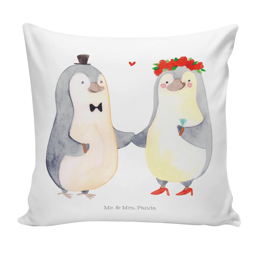 40x40 Kissen Pinguin Heirat Kissenhülle, Kopfkissen, Sofakissen, Dekokissen, Motivkissen, Liebe, Partner, Freund, Freundin, Ehemann, Ehefrau, Heiraten, Verlobung, Heiratsantrag, Liebesgeschenk, Jahrestag, Hocheitstag