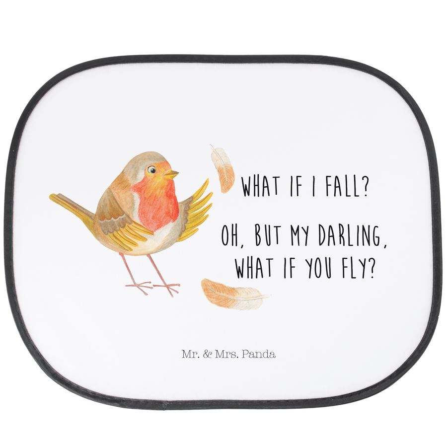 Auto Sonnenschutz Rotkehlchen mit Federn - mit Spruch - Weiß