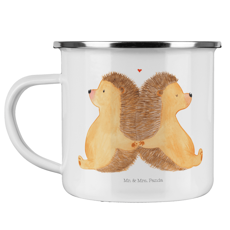 Camping Emaille Tasse Igel händchenhaltend - ohne Spruch - Weiß