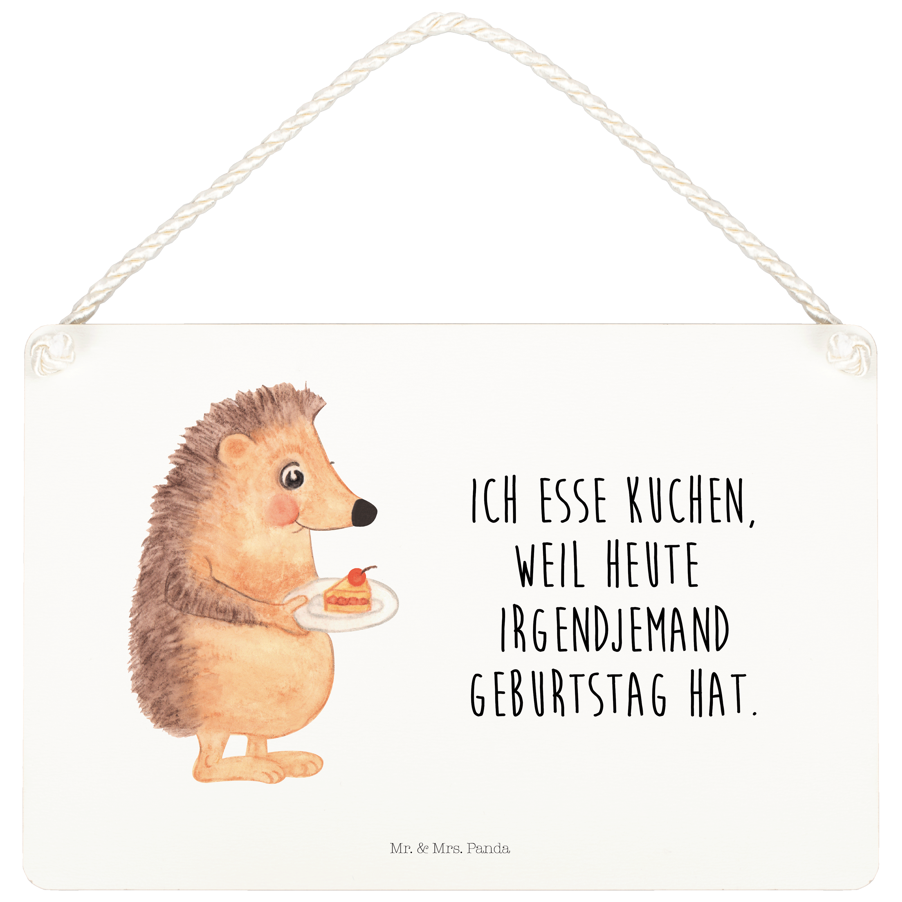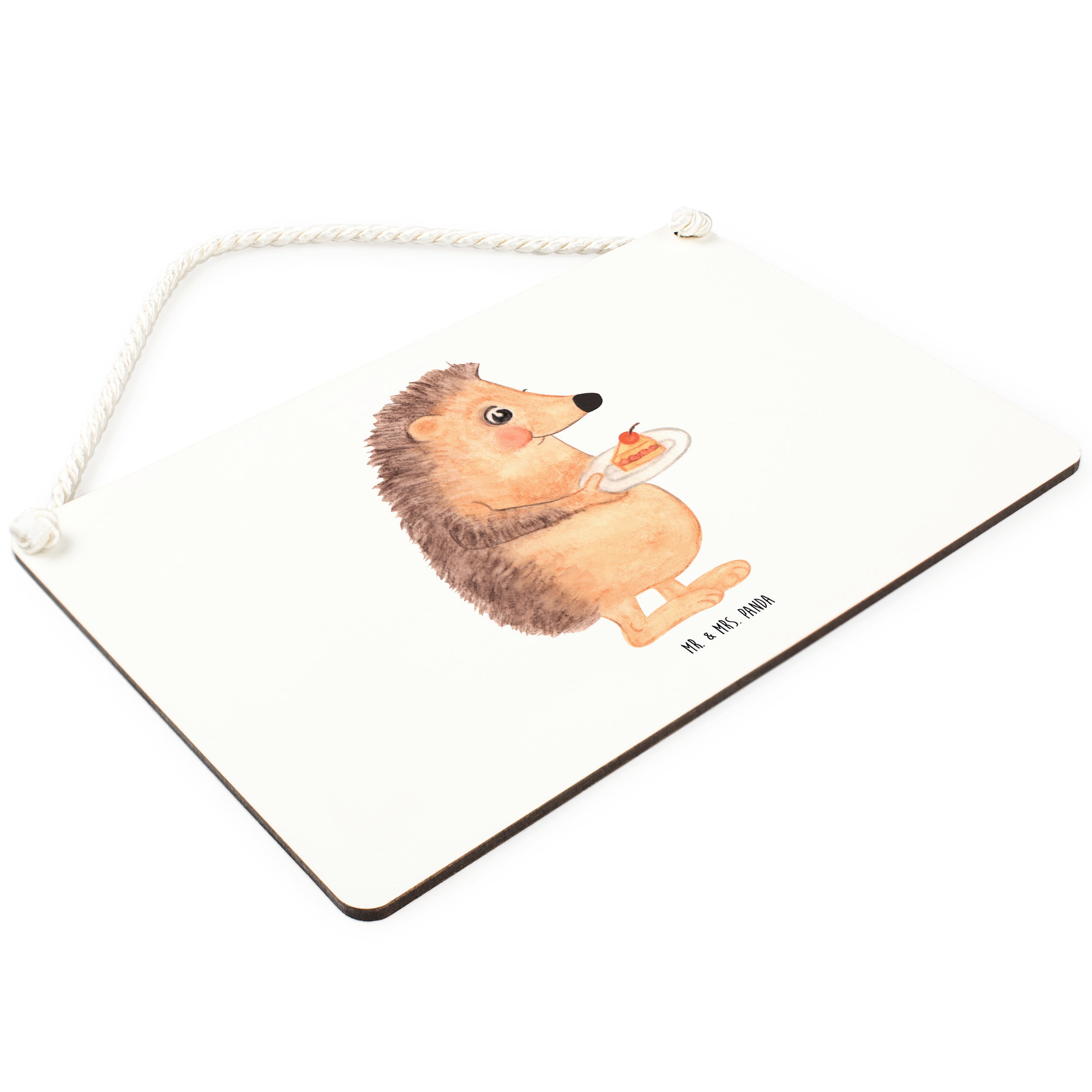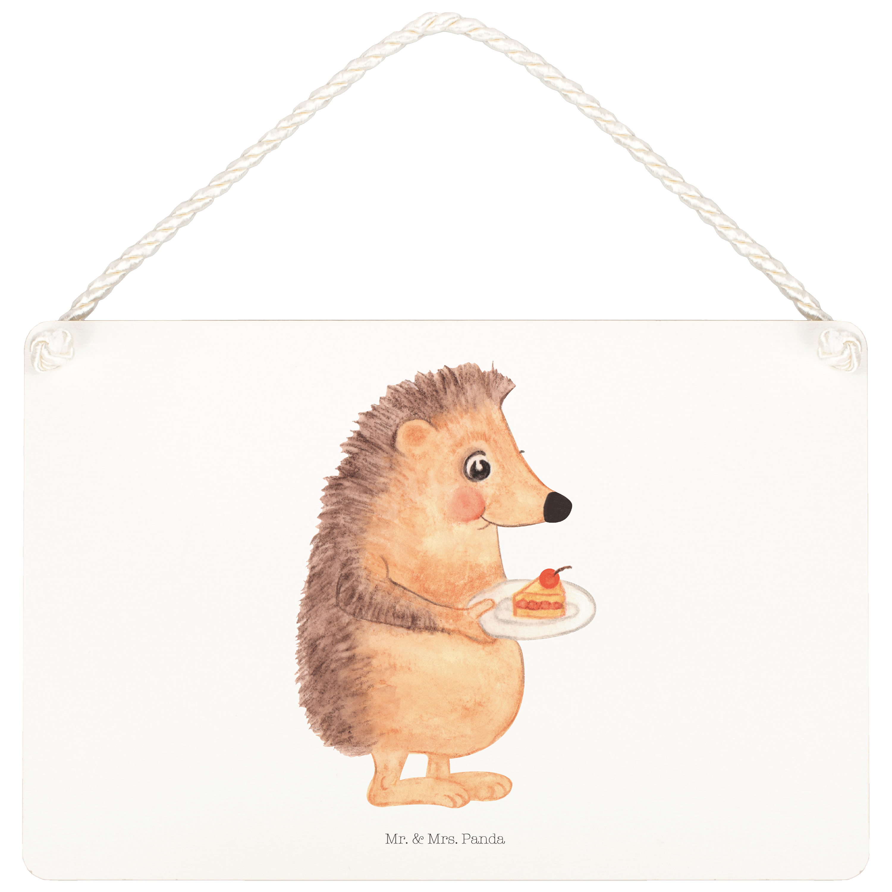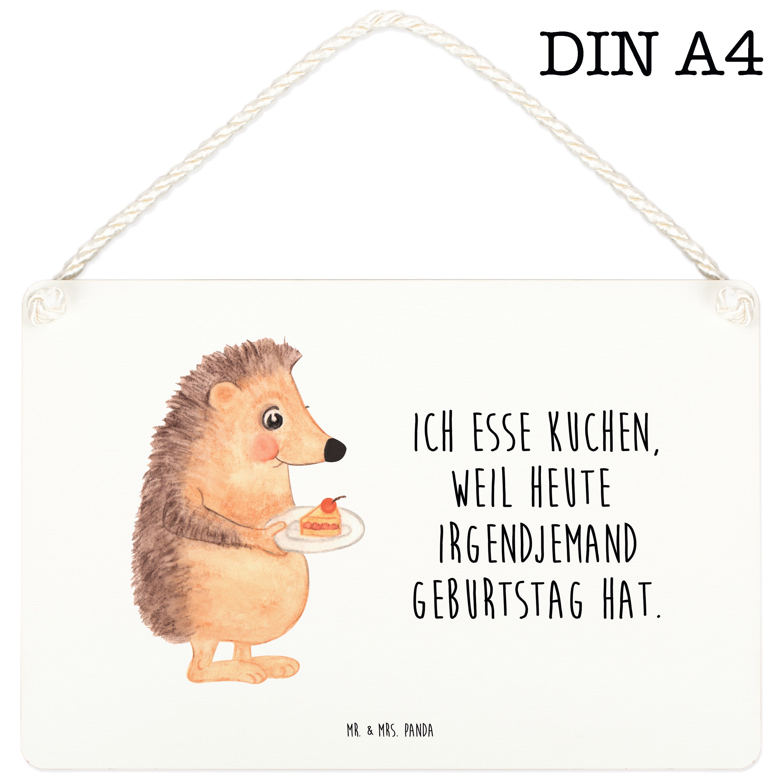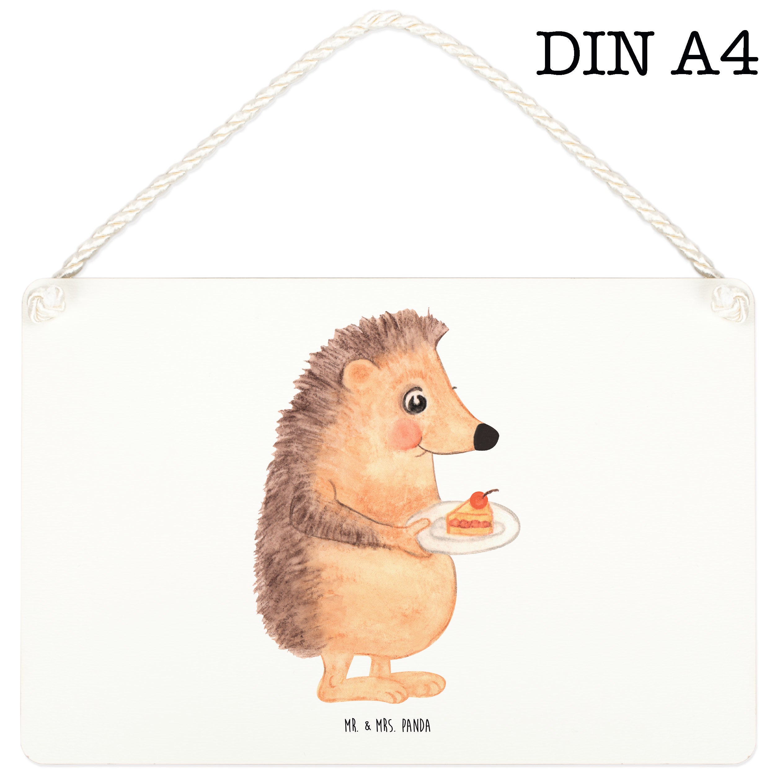 Deko Schild Igel mit Kuchenstück - DIN A4 - ohne Spruch - Weiß