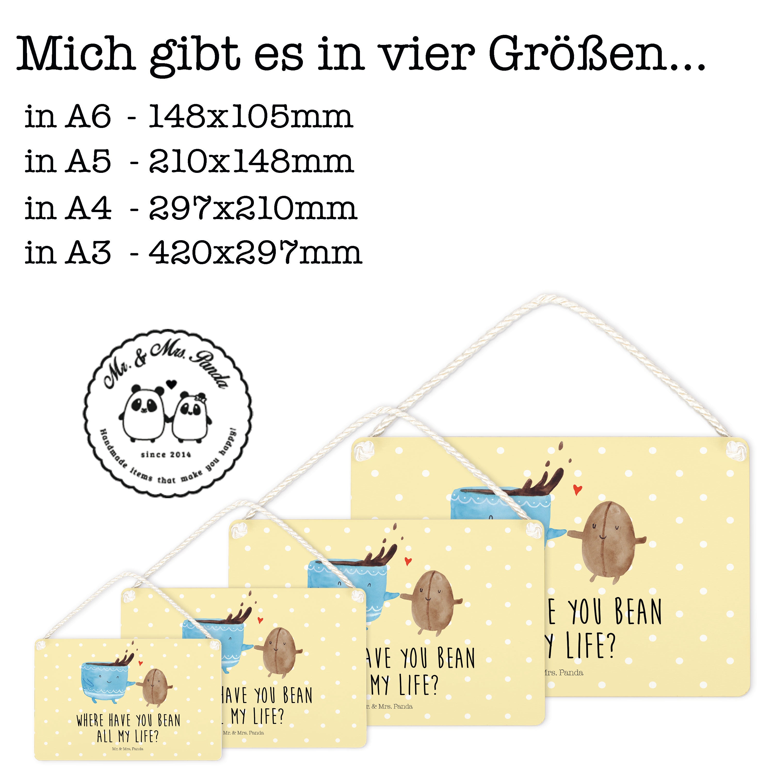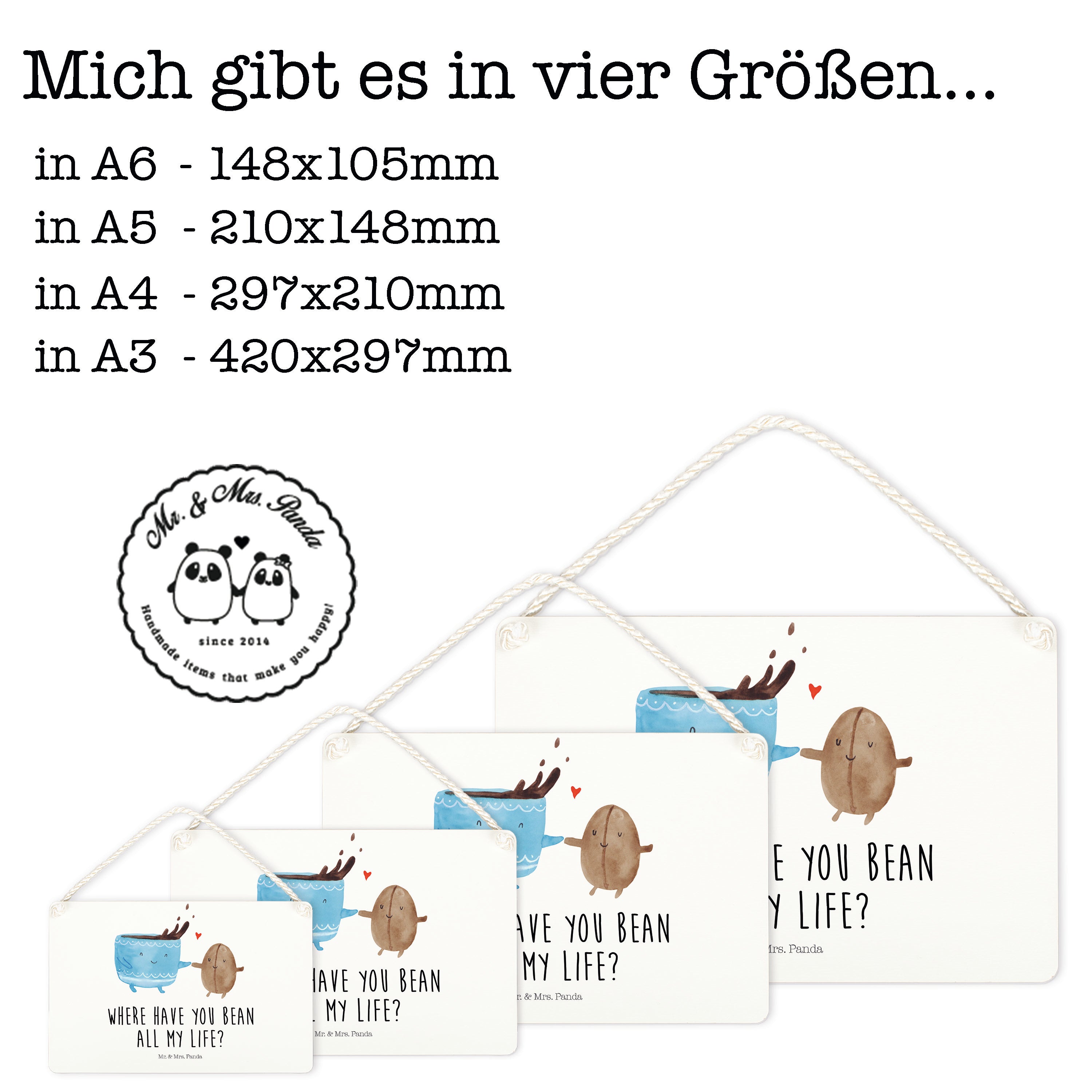 Deko Schild Kaffee Bohne - DIN A5 - mit Spruch - Weiß