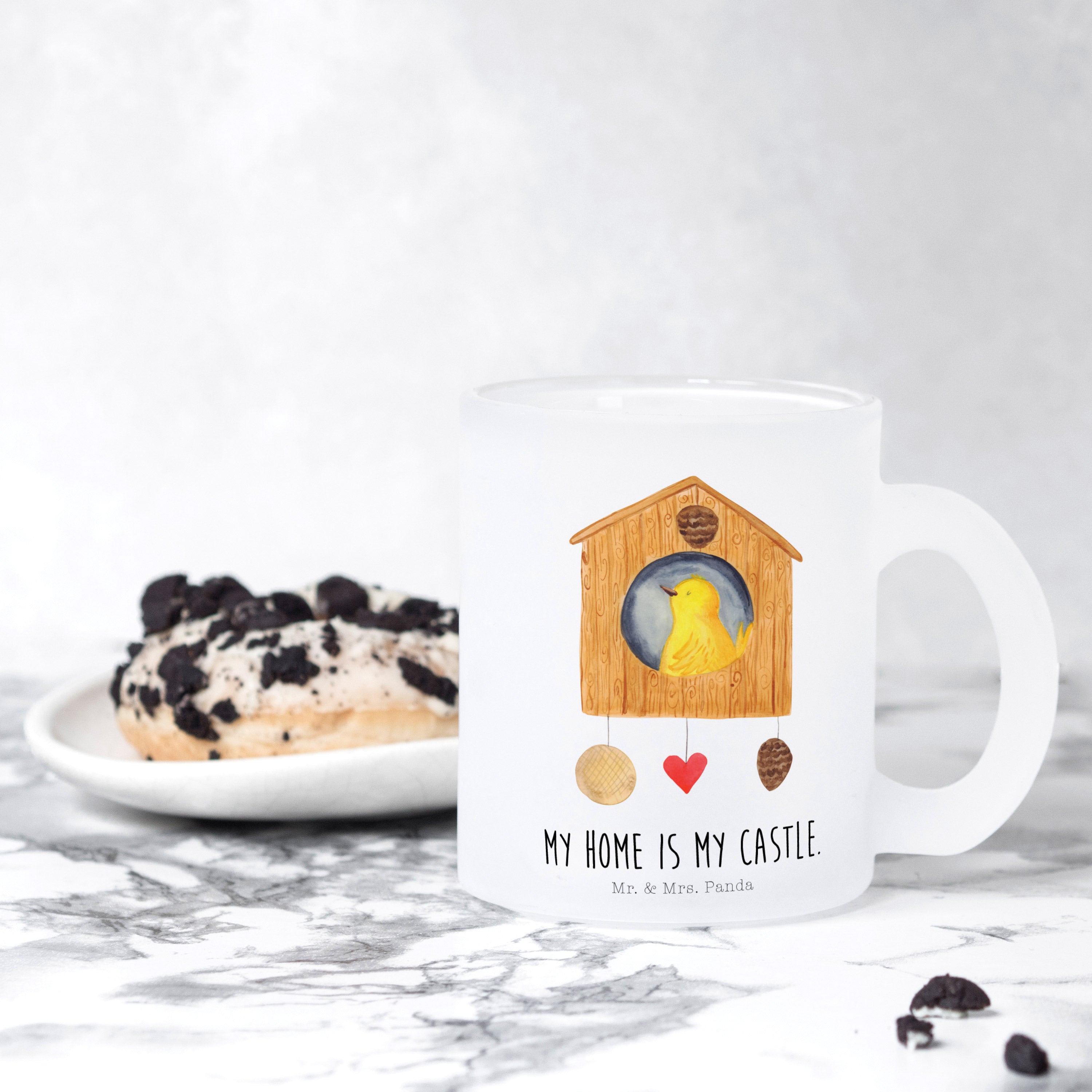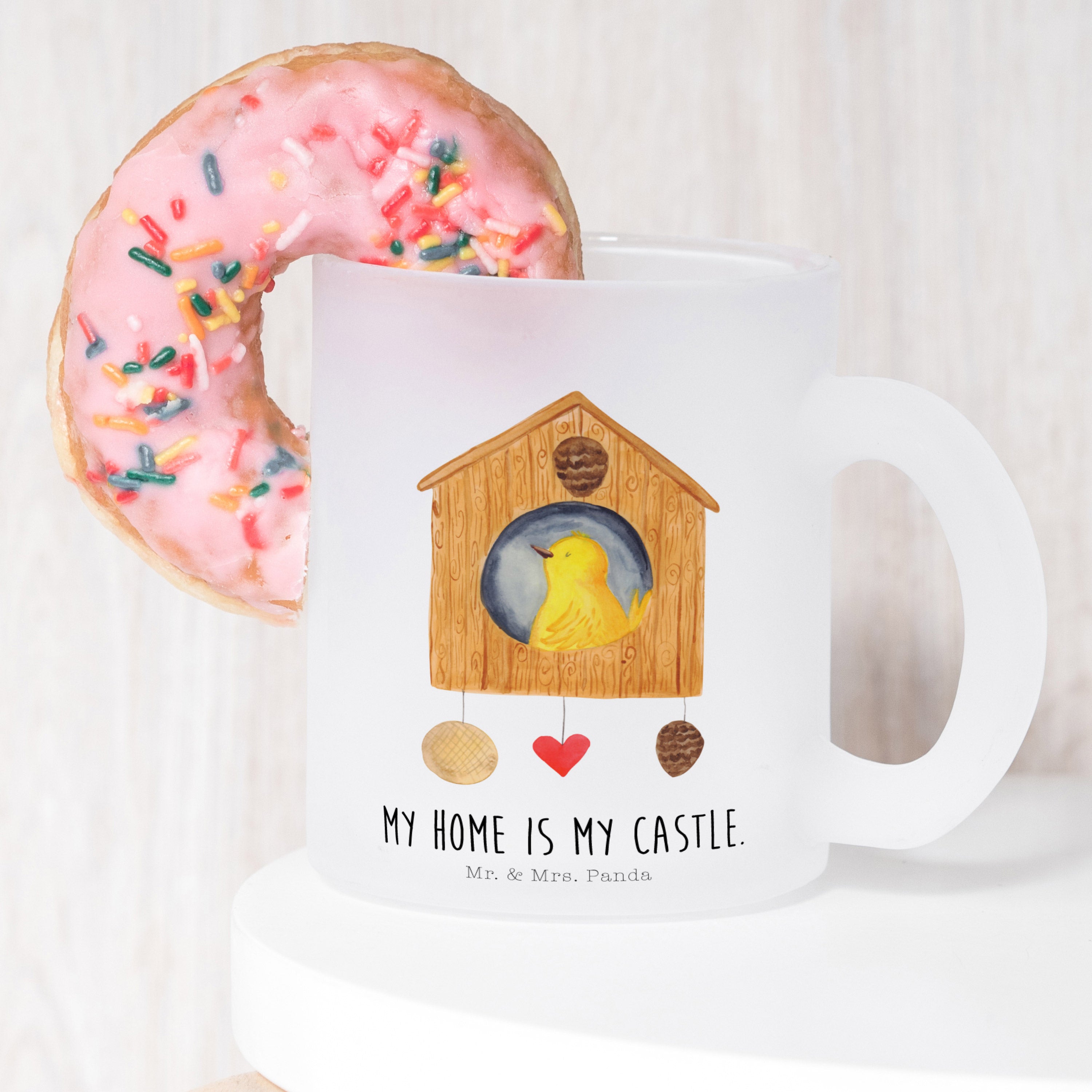 Teetasse Vogelhaus Teetasse, Teeglas, Teebecher, Tasse mit Henkel, Tasse, Glas Teetasse, Teetasse aus Glas, Tiermotive, Gute Laune, lustige Sprüche, Tiere, Vogel, Vögel, Vogelhaus, Vogelhäuschen, Home sweet home, Zuhause, Nest, Eigenheim, Familie, Wohnung, Haus, unser Haus, Lieblingsort, Castle