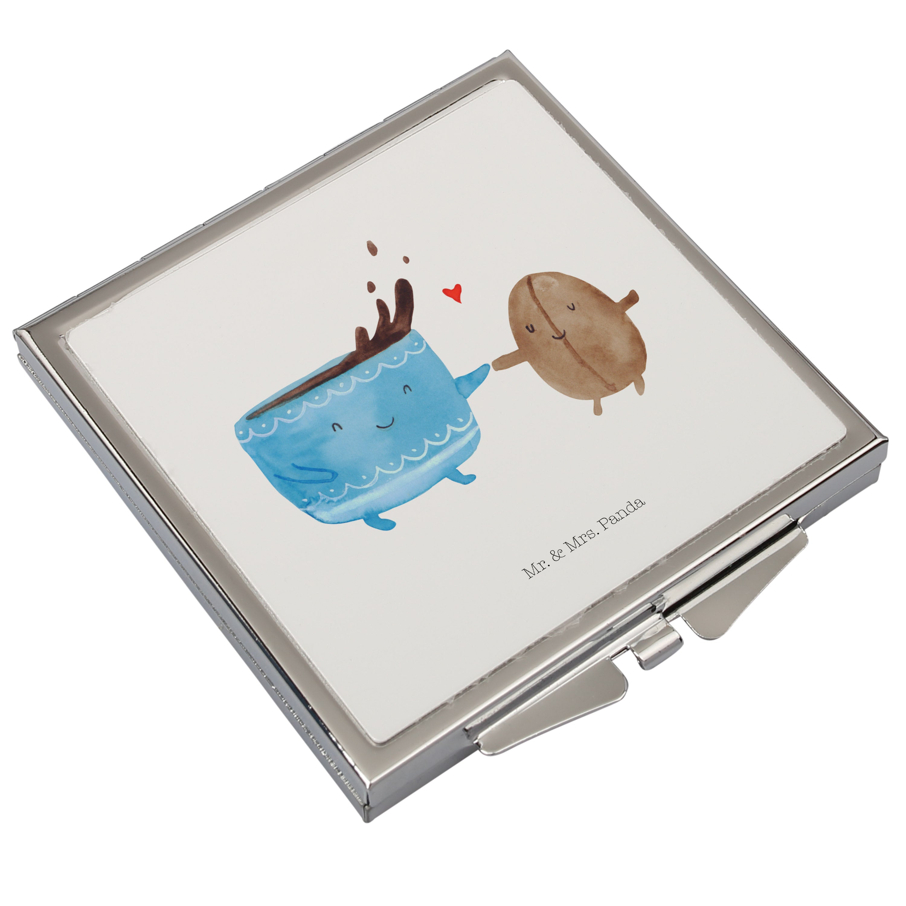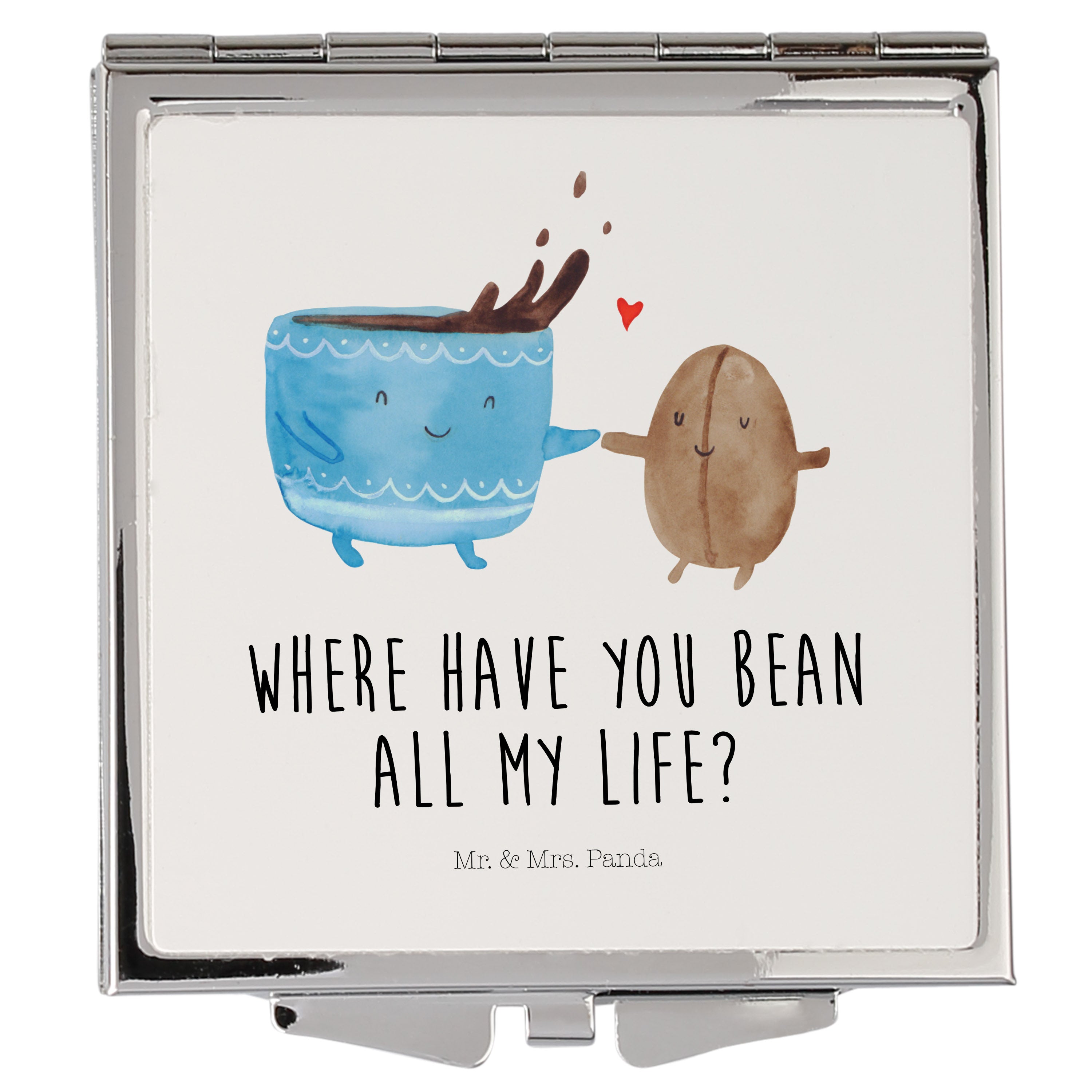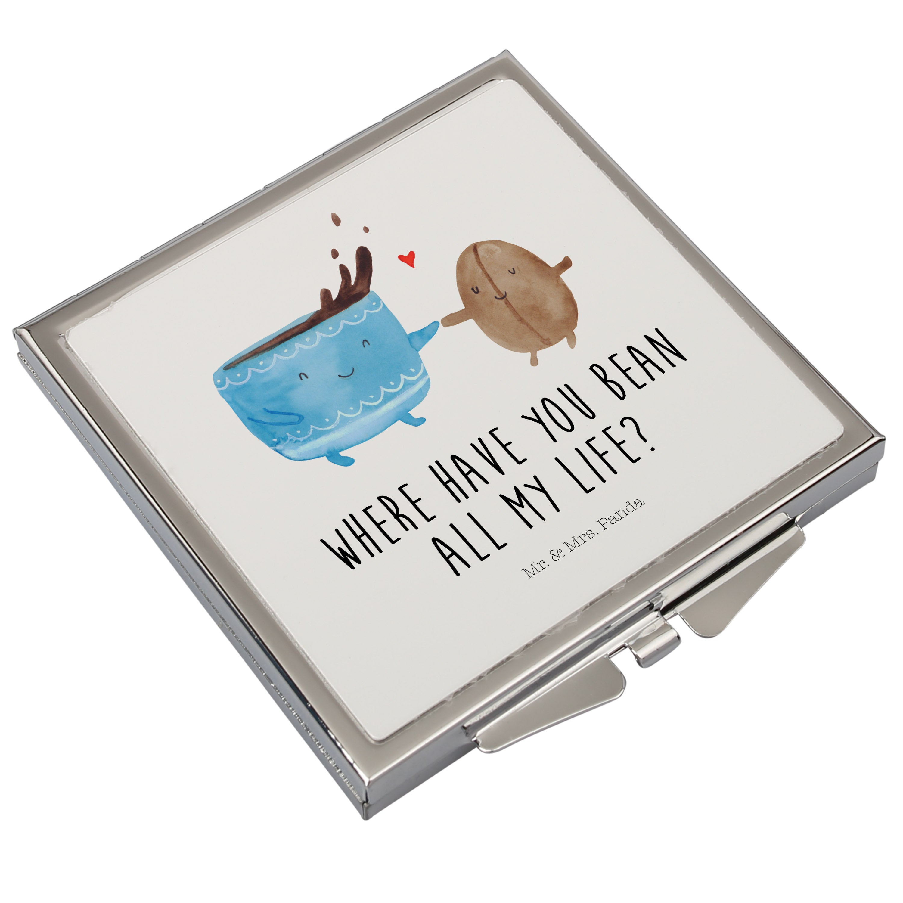 Handtaschenspiegel quadratisch Kaffee Bohne - mit Spruch - Weiß