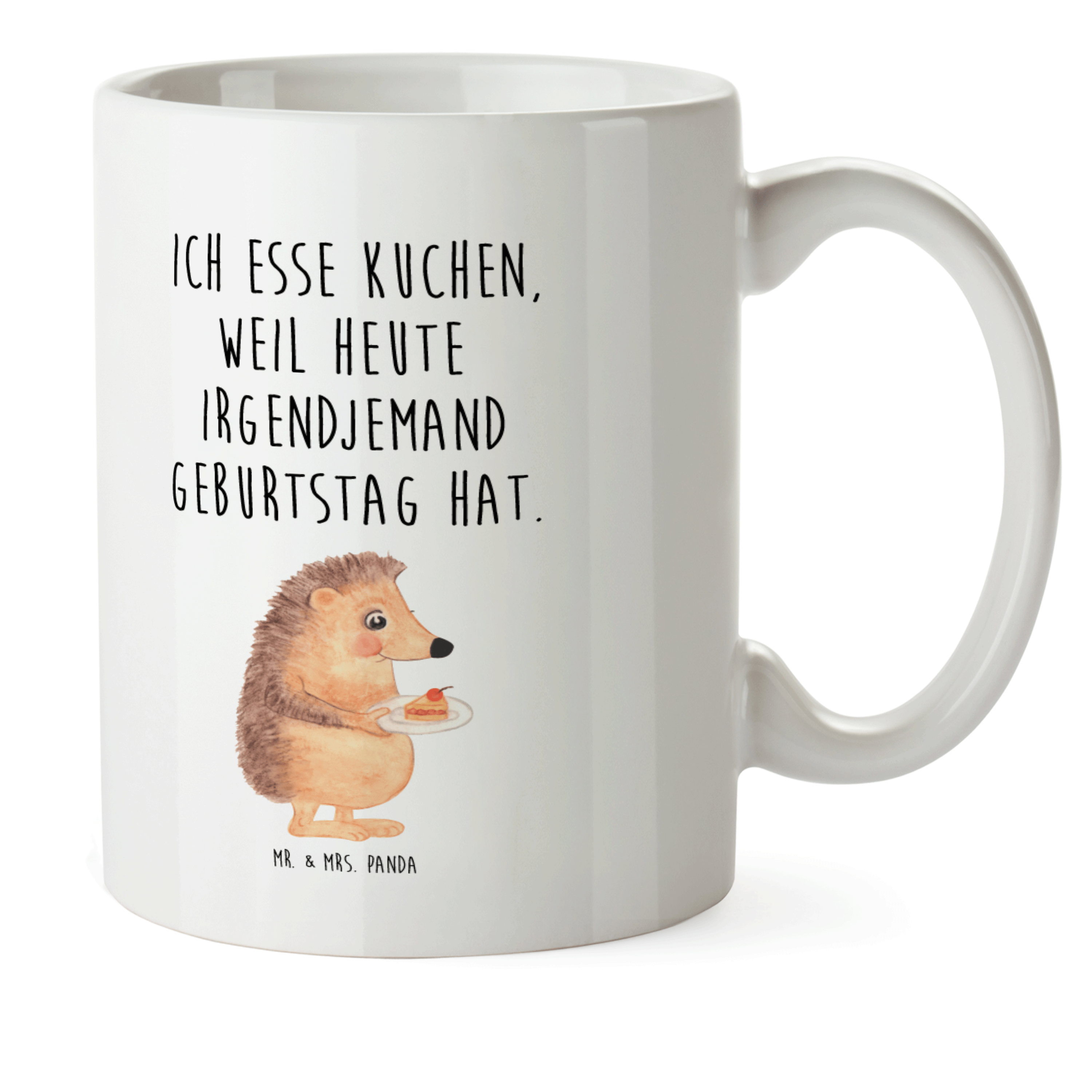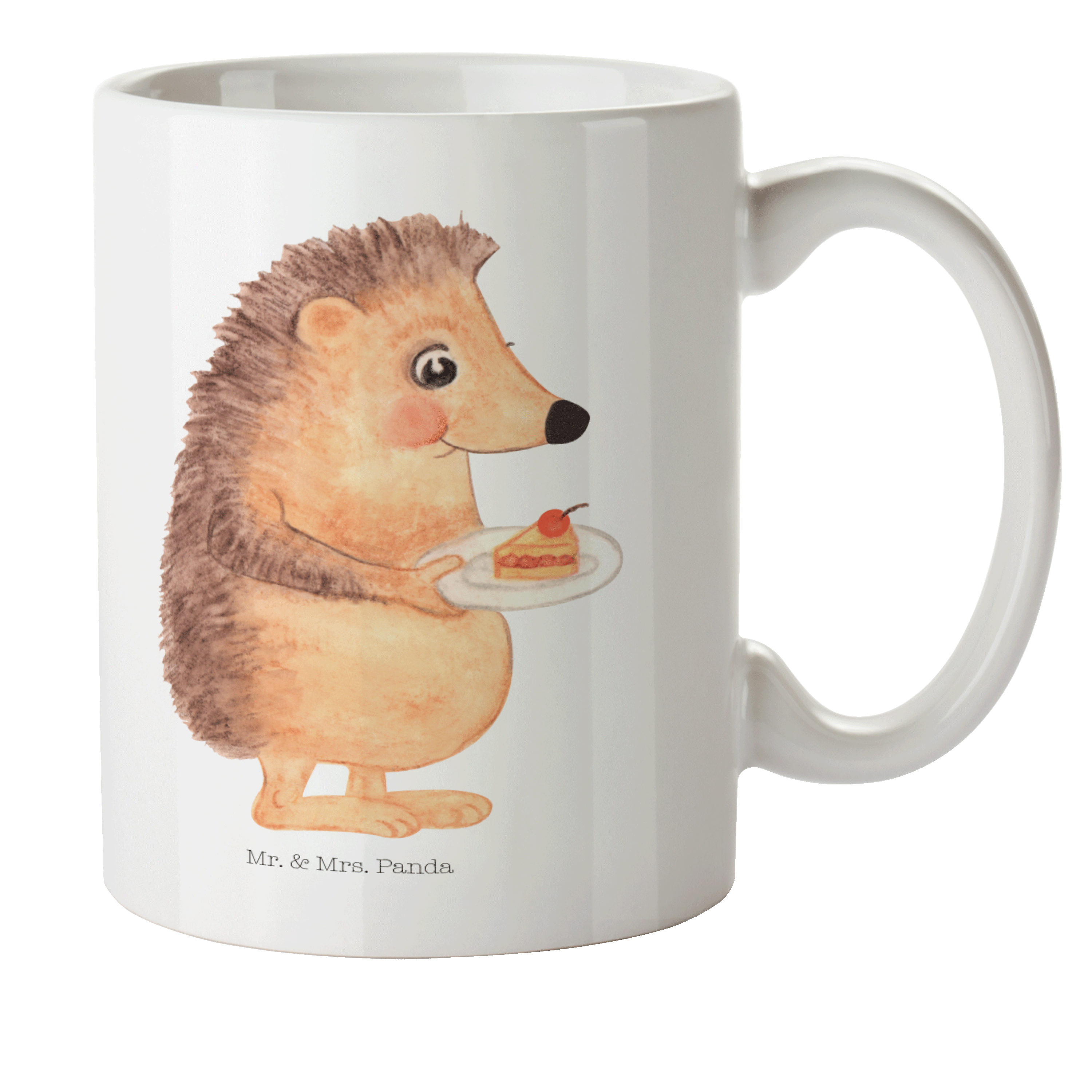 Kindertasse Igel mit Kuchenstück - mit Spruch - Weiß
