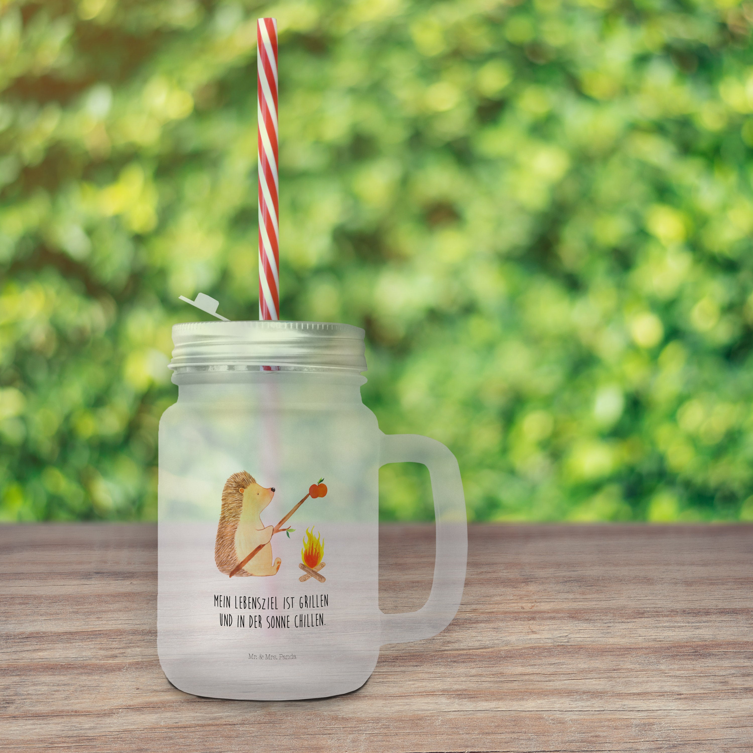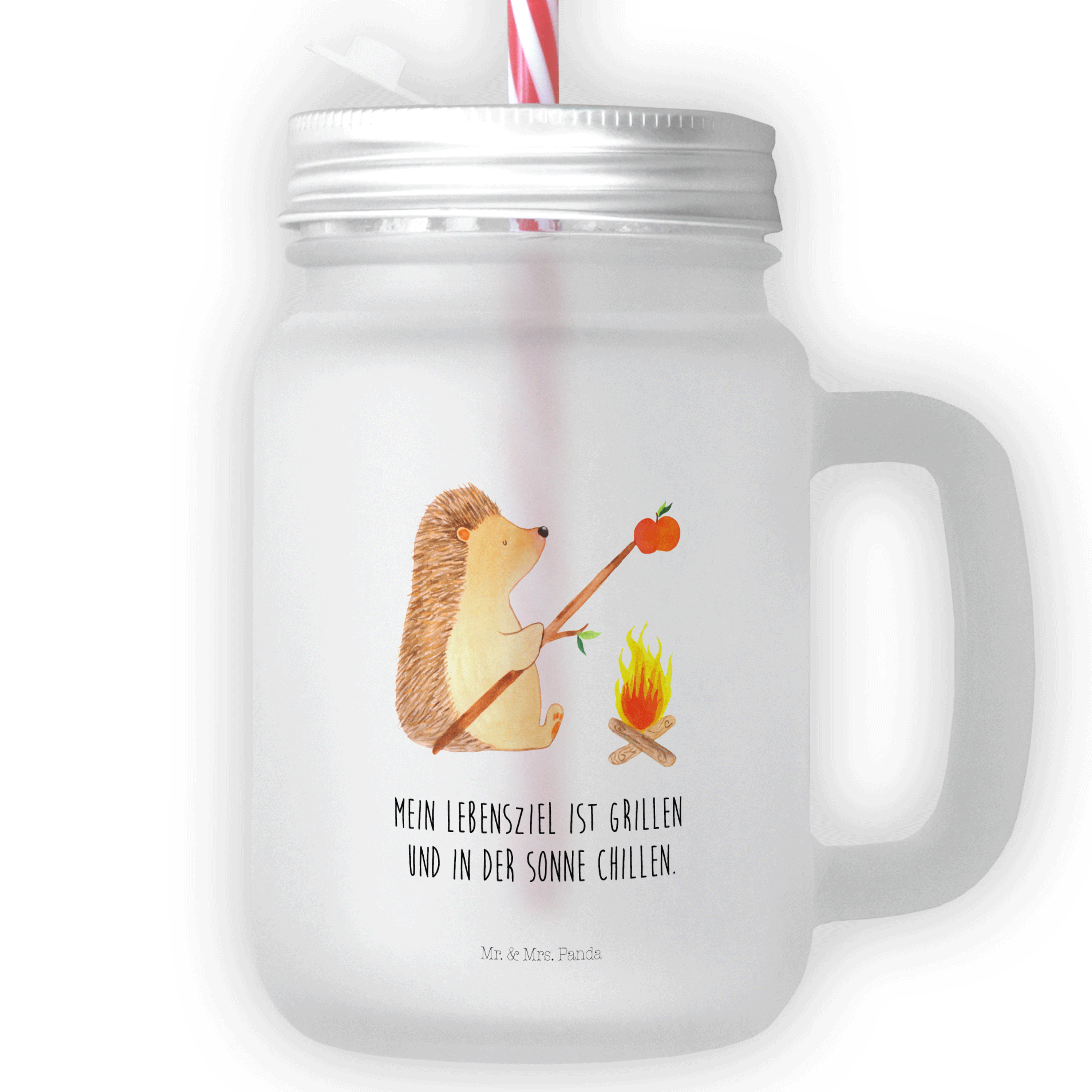 Trinkglas Mason Jar Igel grillt - mit Spruch
