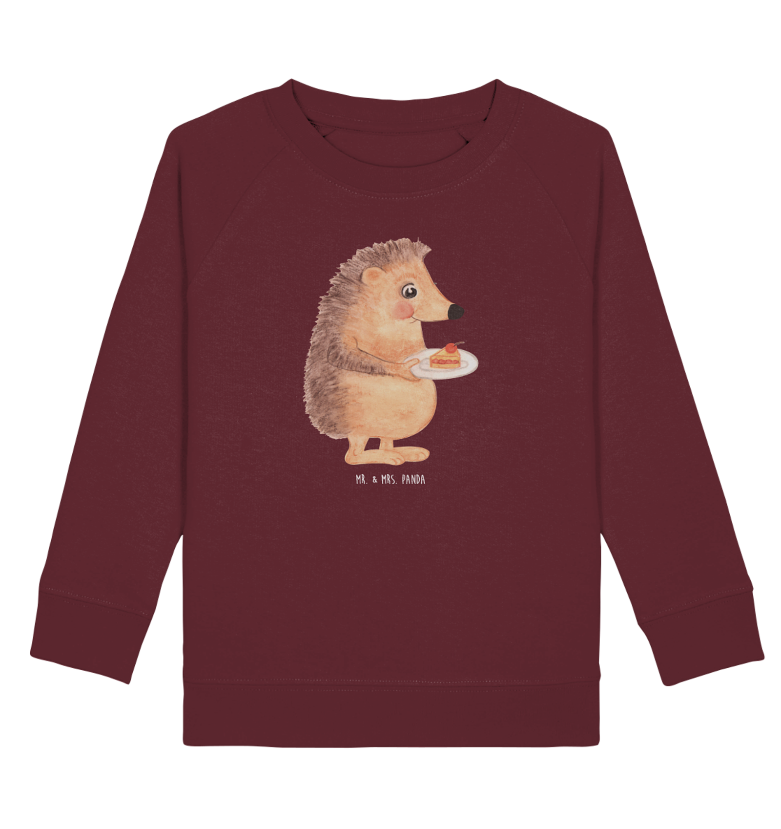 Organic Kinder Pullover Igel mit Kuchenstück - 12-14 Jahre (152/164) - mit Spruch - Burgundy