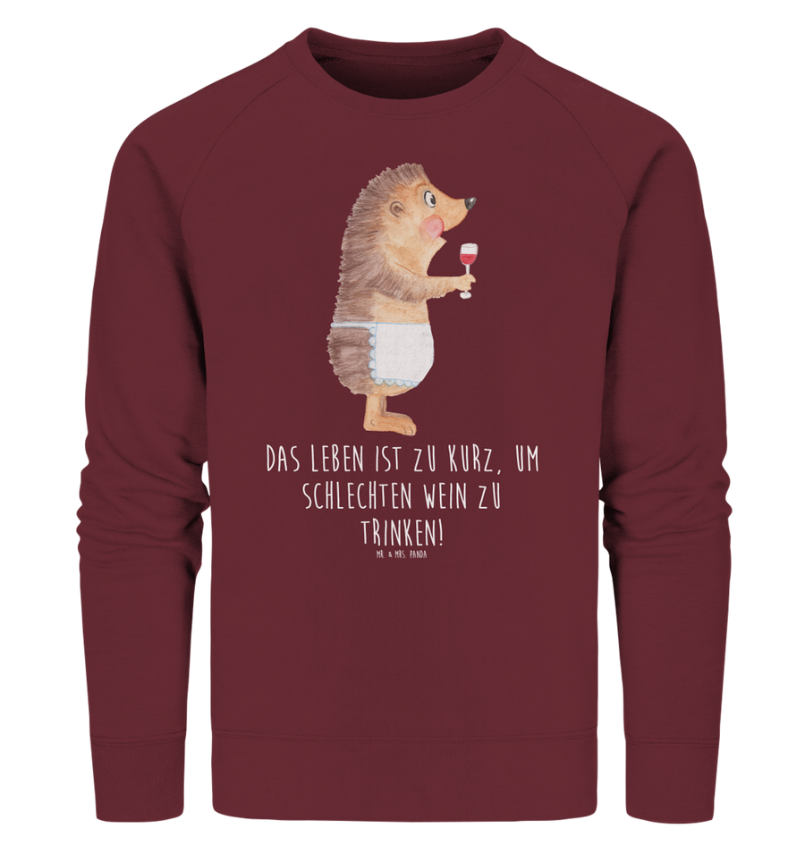 Organic Pullover Igel mit Wein - Größe S - mit Spruch - Burgundy