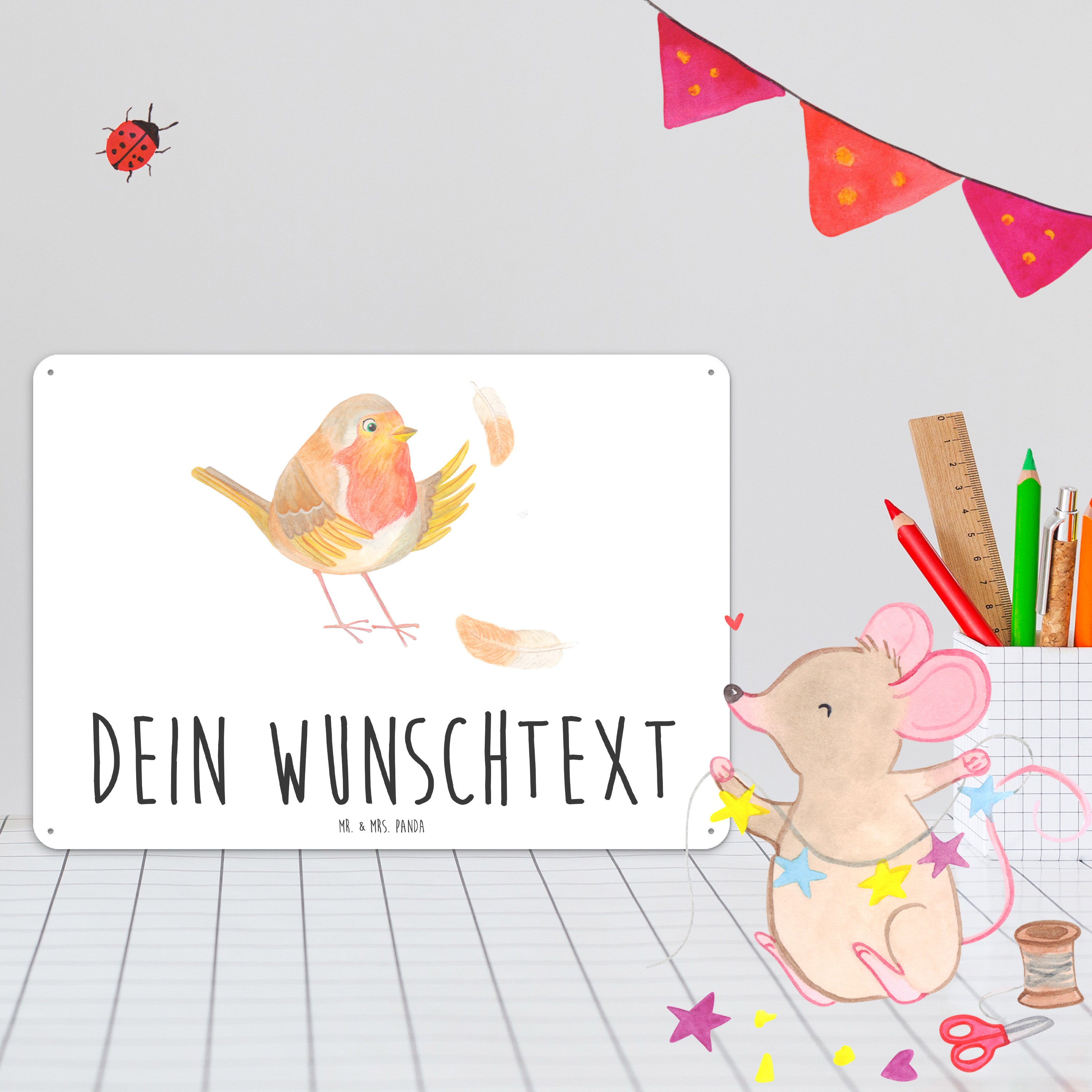 Personalisiertes Blechschild Rotkehlchen mit Federn - DIN A3