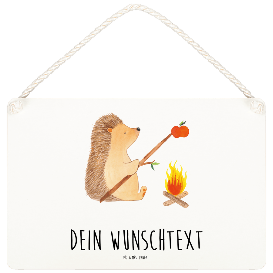 Personalisiertes Deko Schild Igel grillt - Weiß - DIN A4