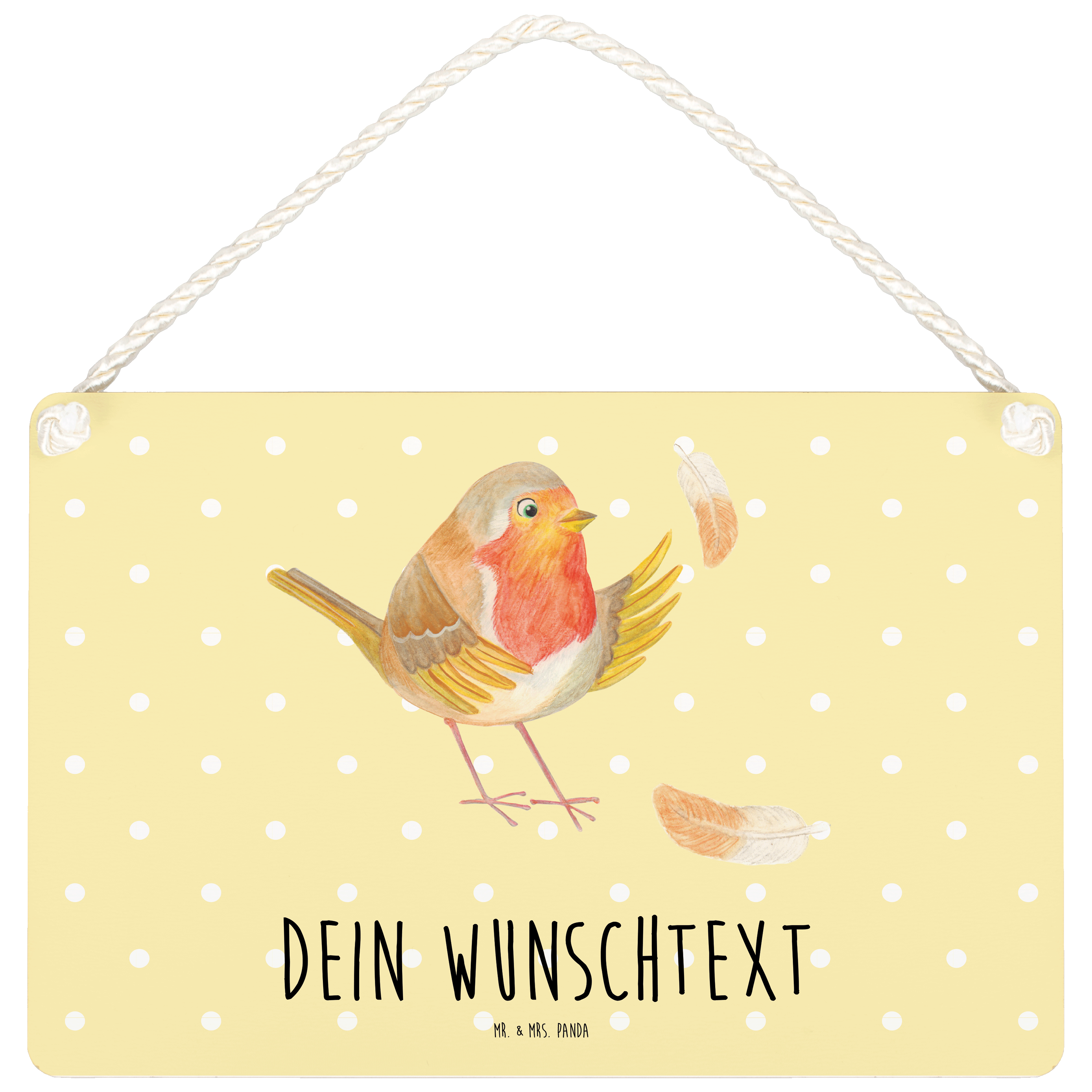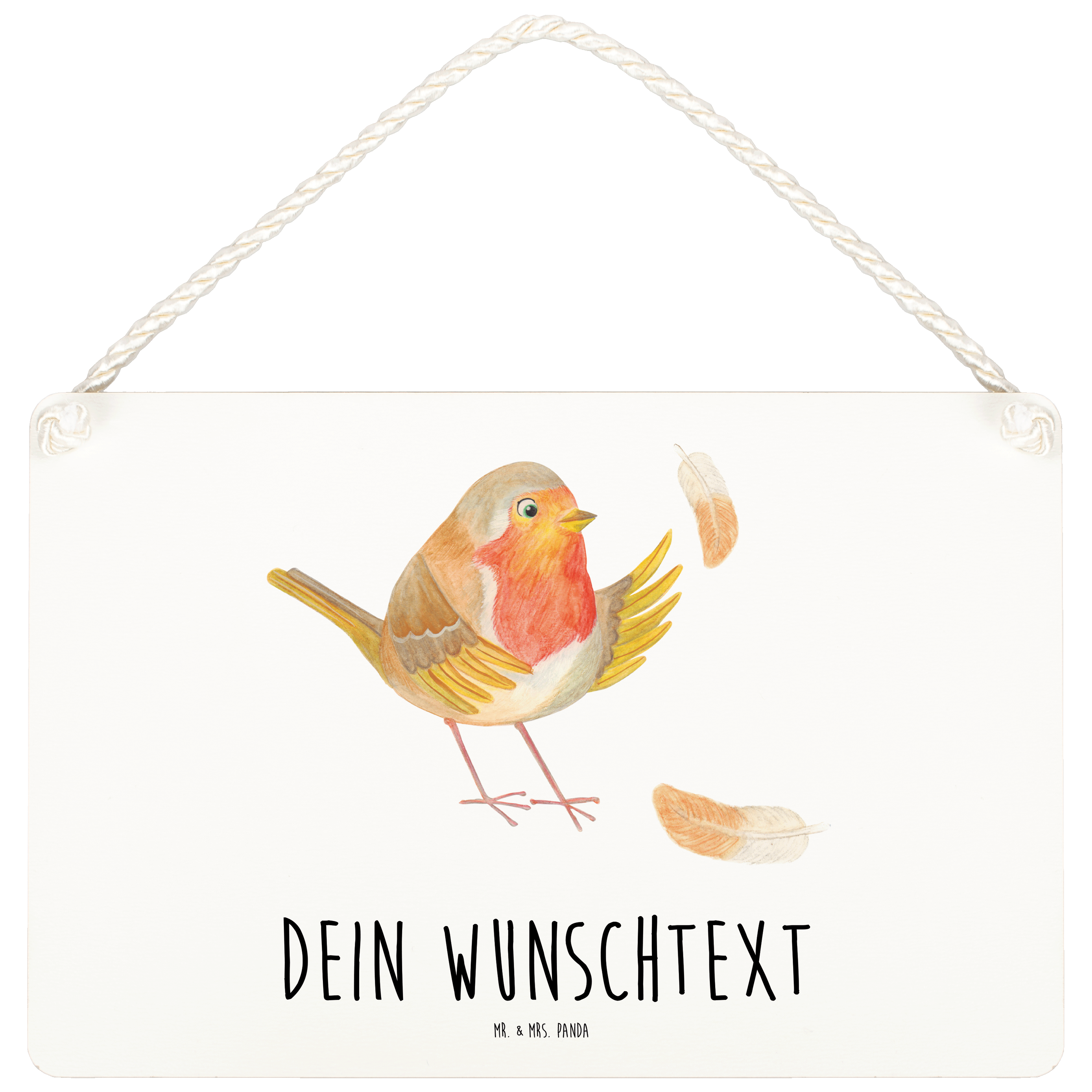 Personalisiertes Deko Schild Rotkehlchen mit Federn - DIN A6 - Weiß