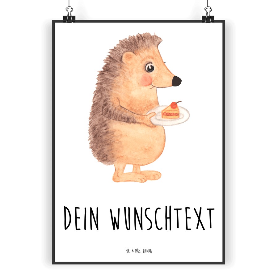Personalisiertes Poster Igel mit Kuchenstück - Weiß - DIN A5