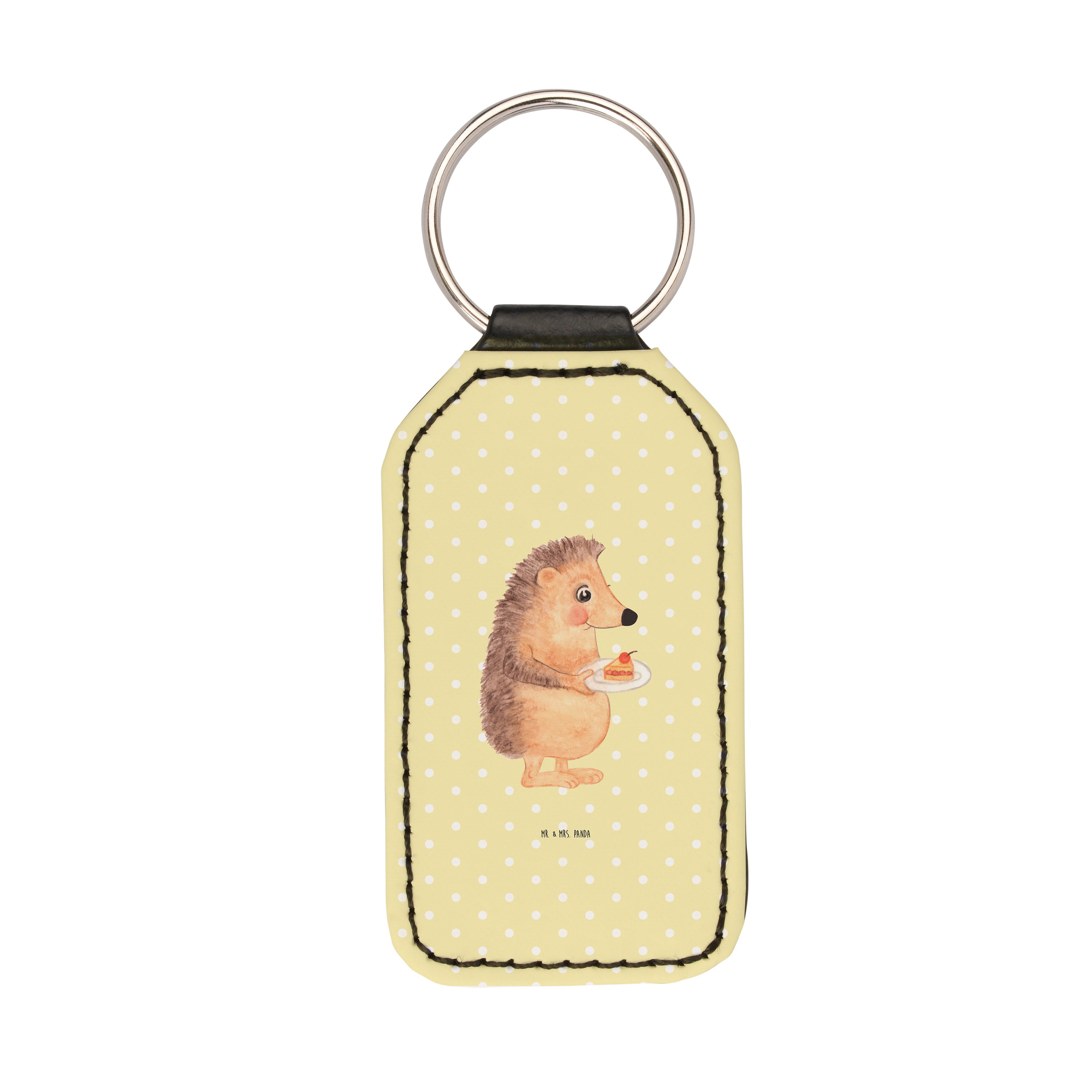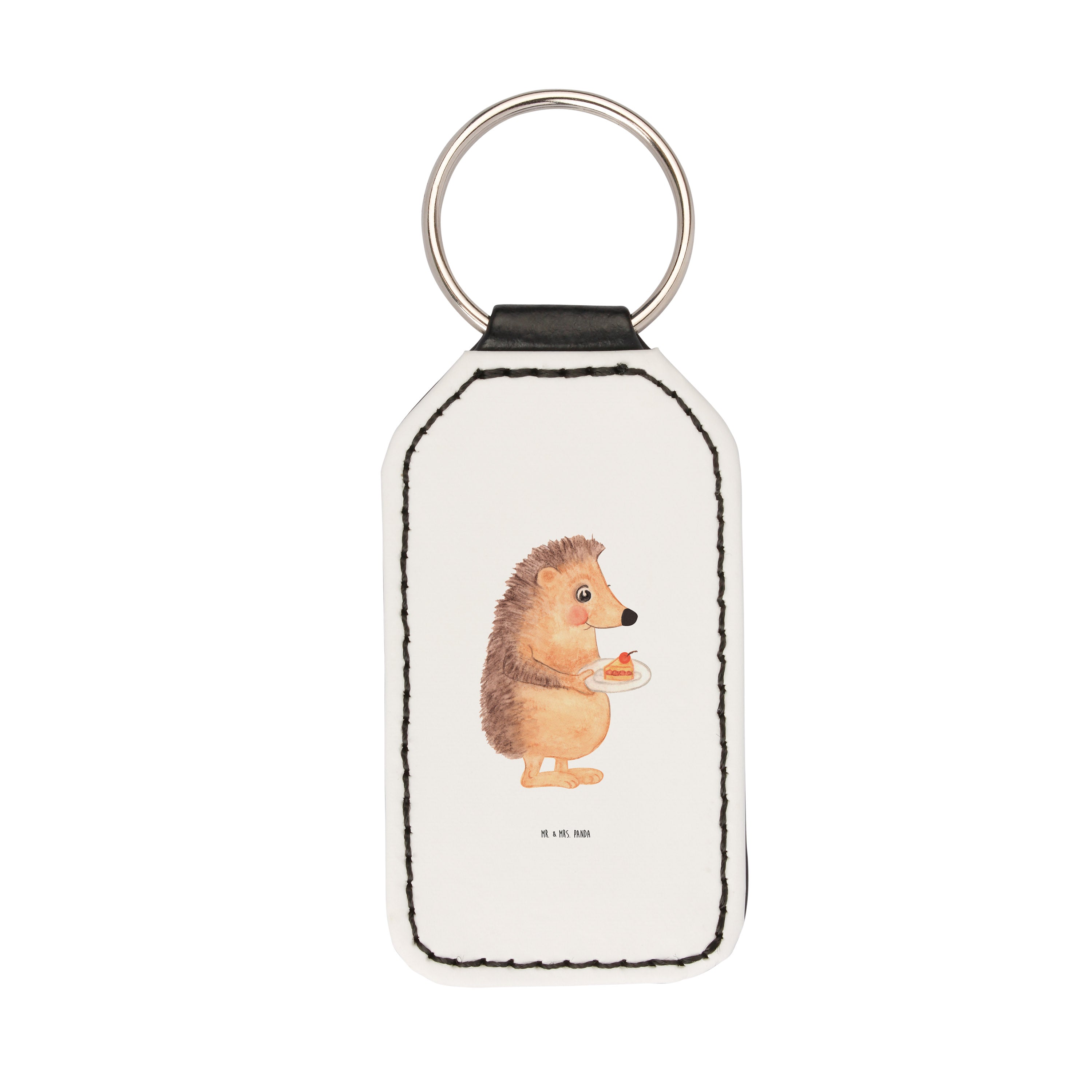 Rechteckig Schlüsselanhänger Igel mit Kuchenstück - Weiß