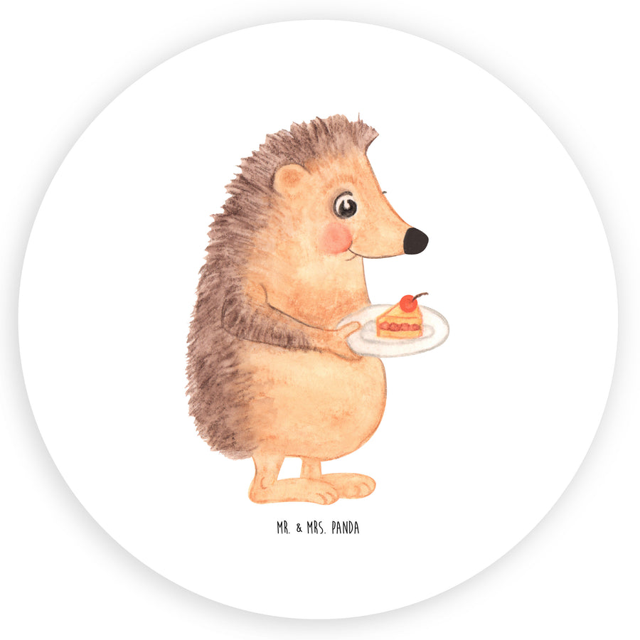 120mm Rund Aufkleber Igel mit Kuchenstück - ohne Spruch - Weiß