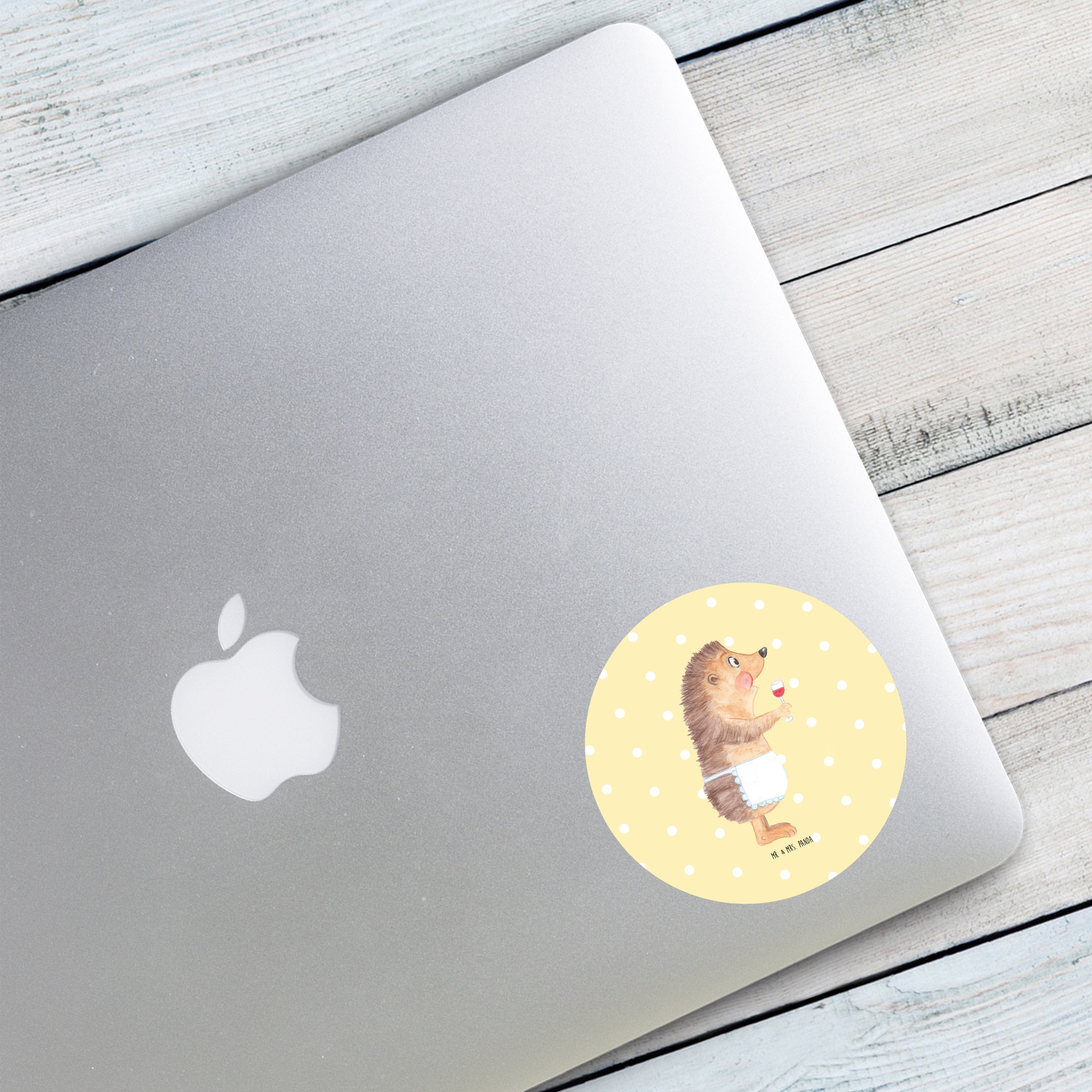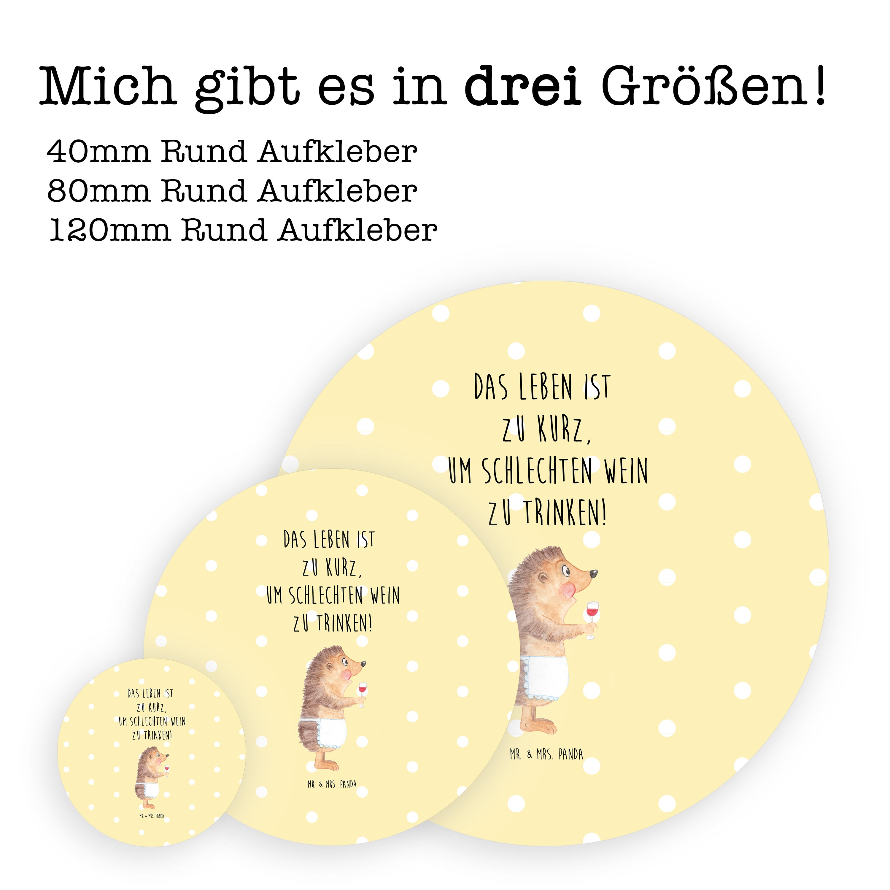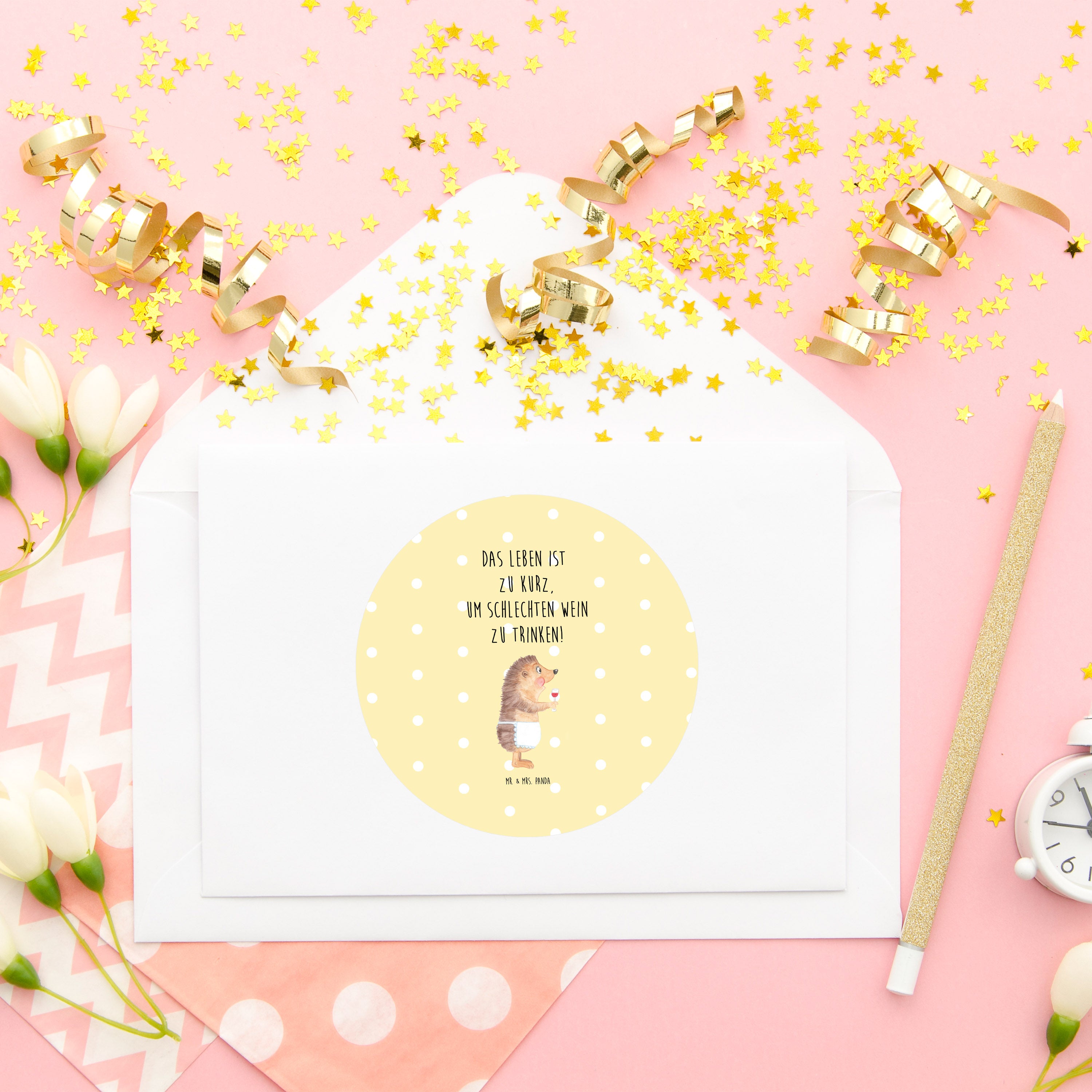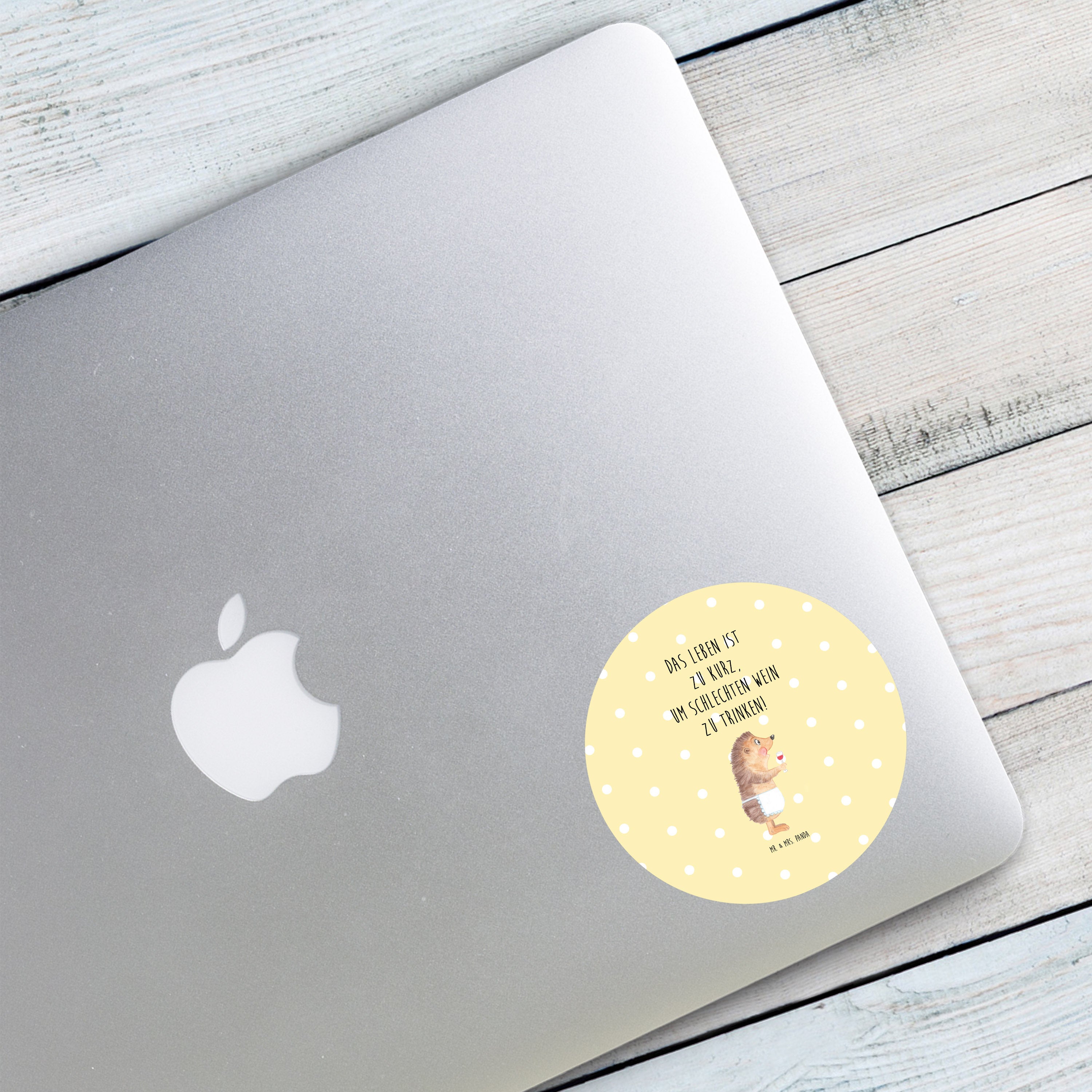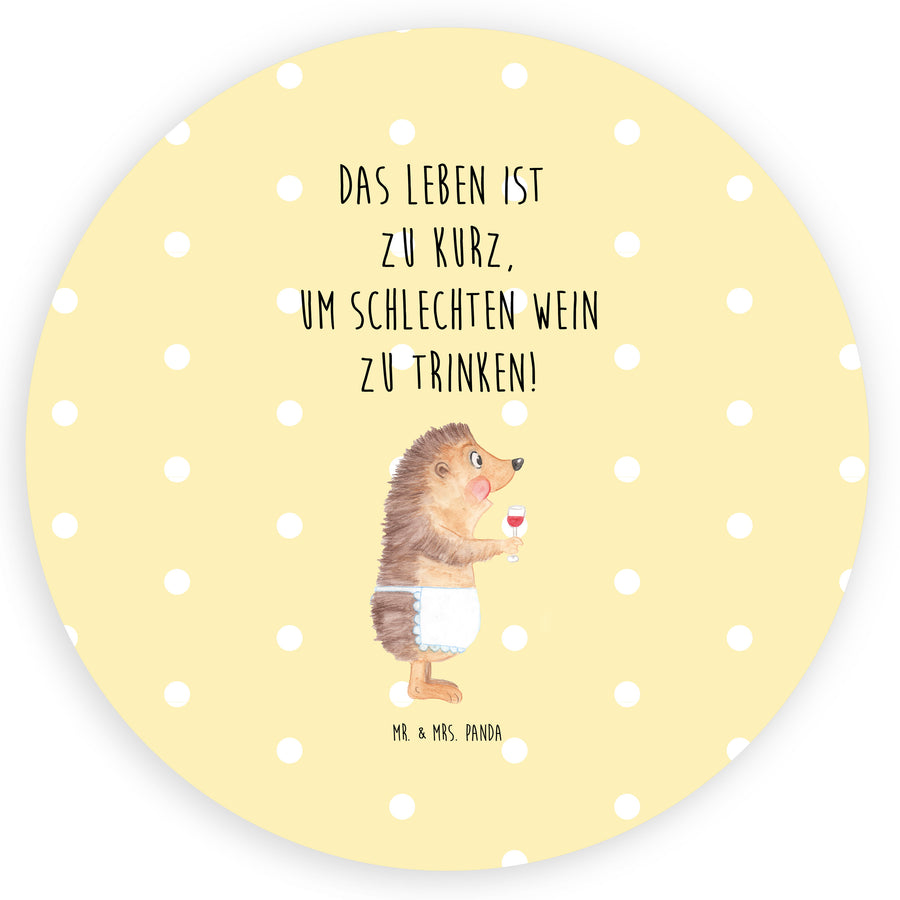 80mm Rund Aufkleber Igel mit Wein - mit Spruch - Gelb Pastell