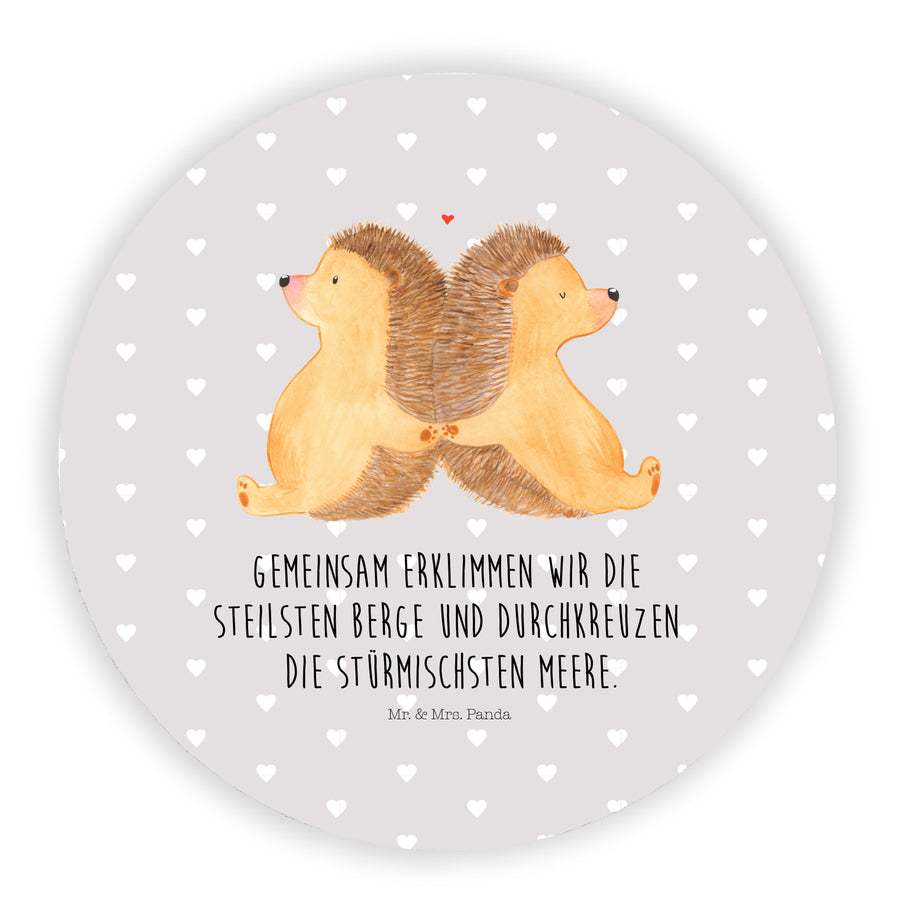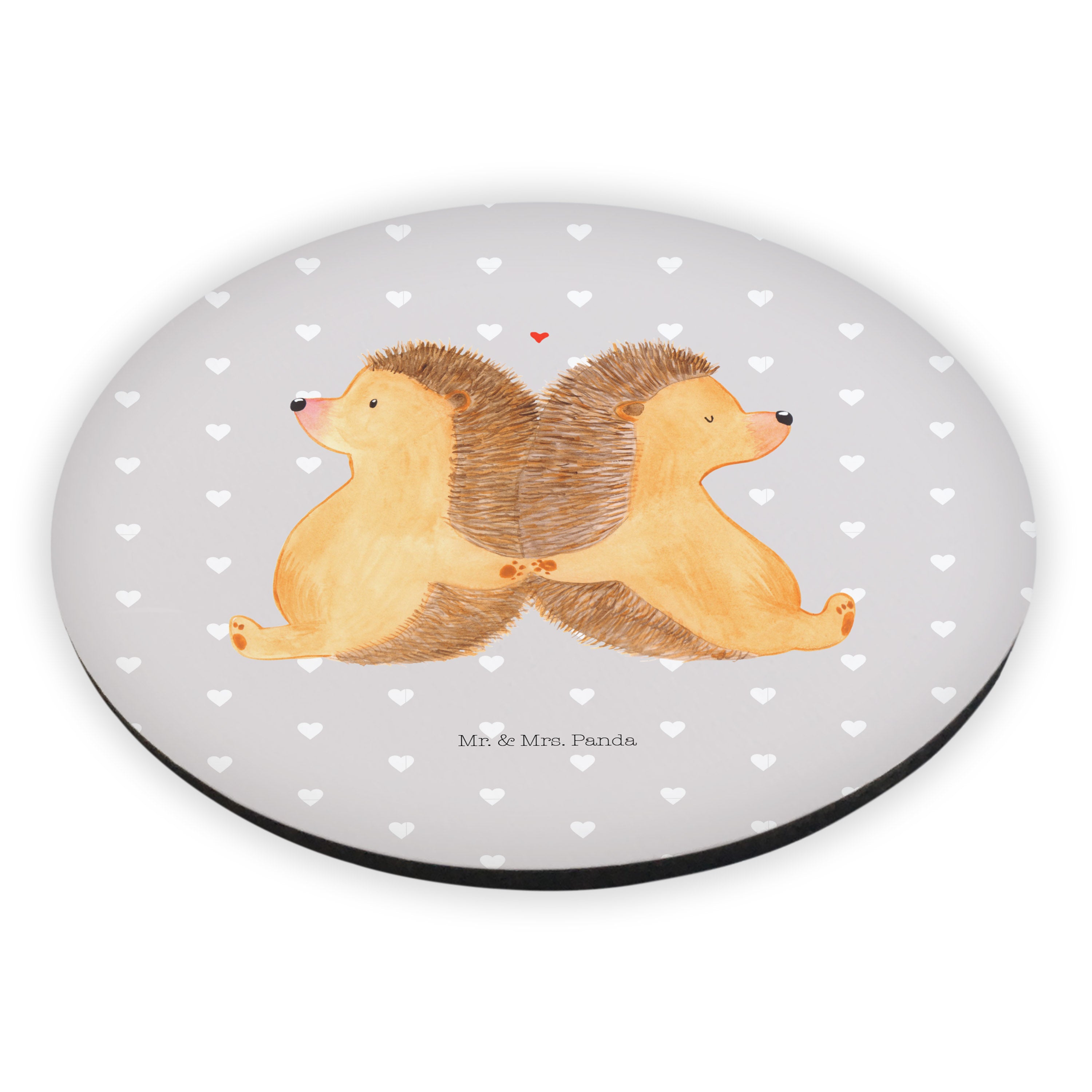 Rund Magnet Igel händchenhaltend - mit Spruch - Grau Pastell