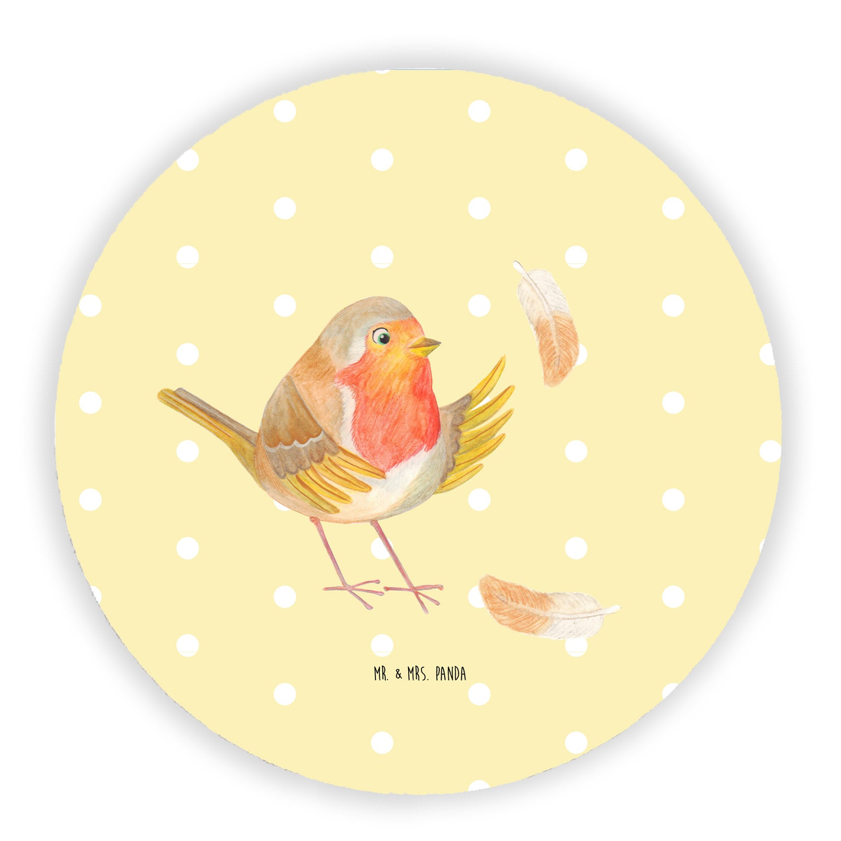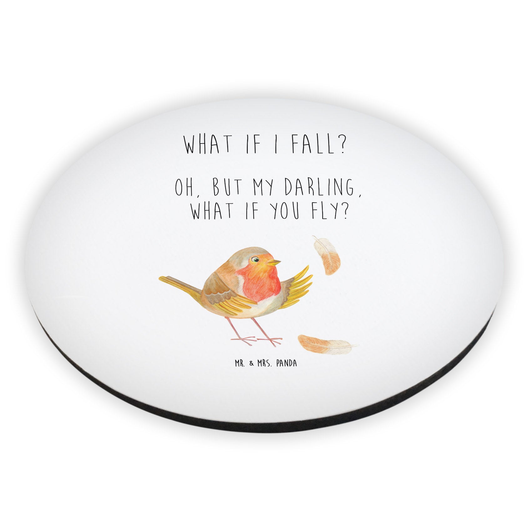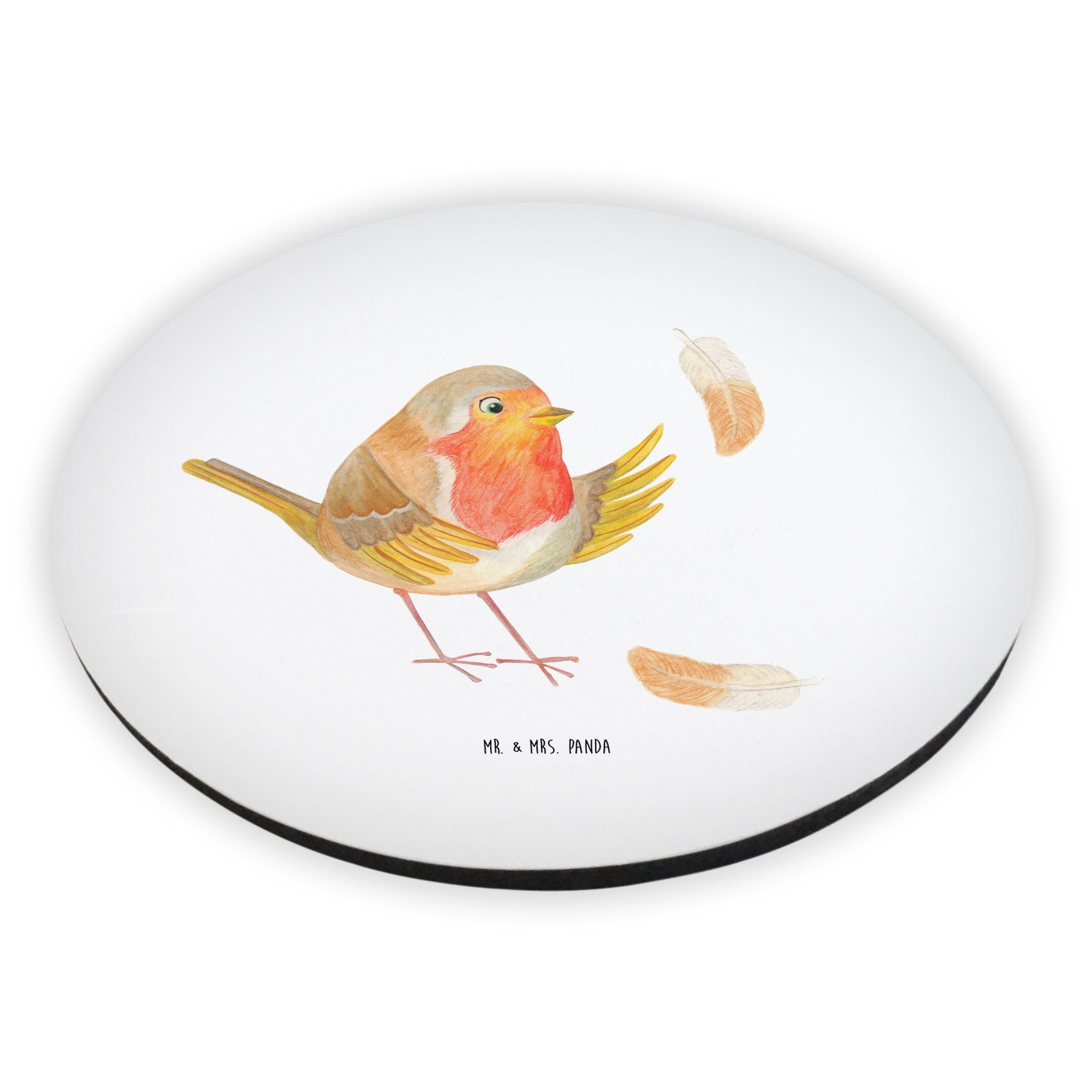Rund Magnet Rotkehlchen mit Federn - mit Spruch - Weiß