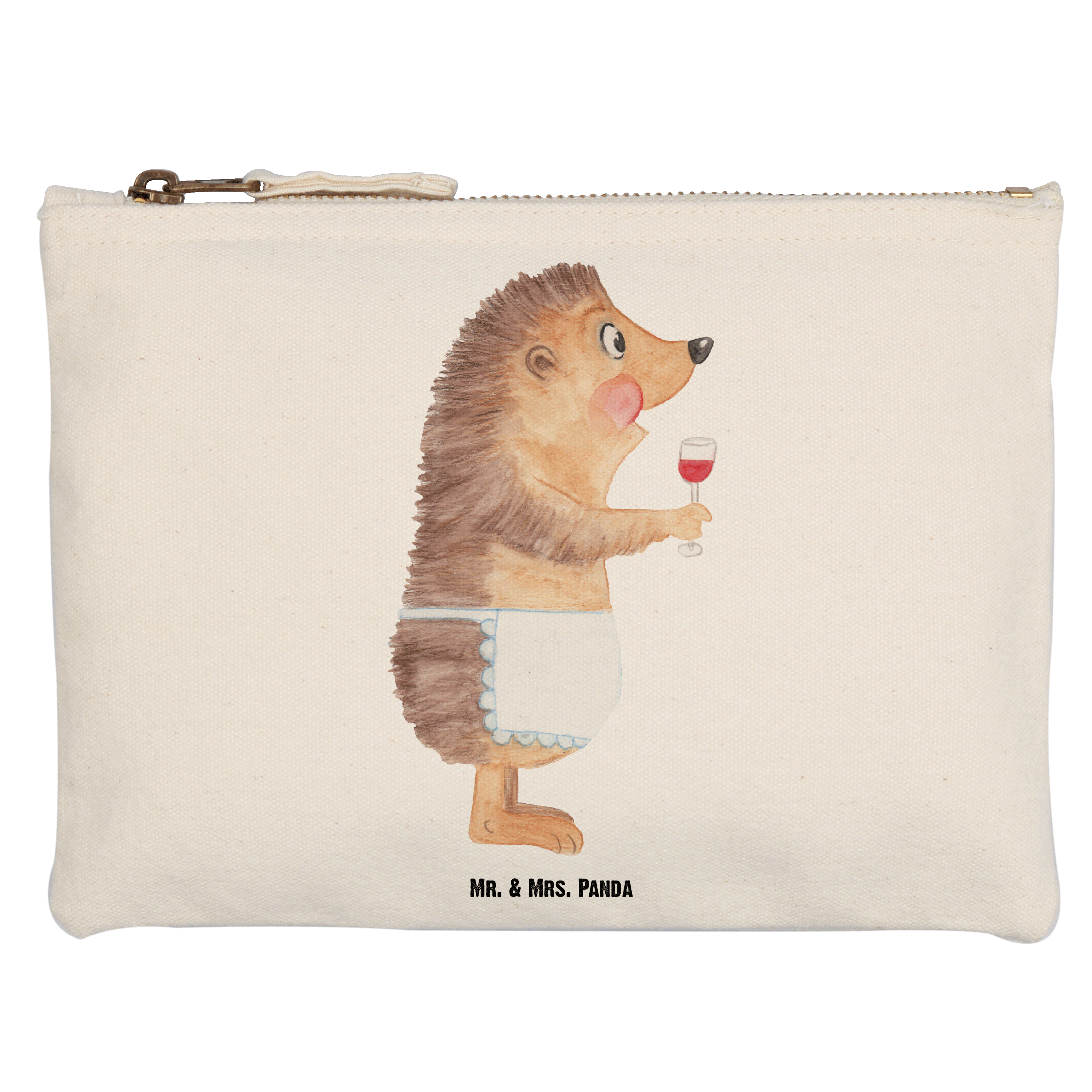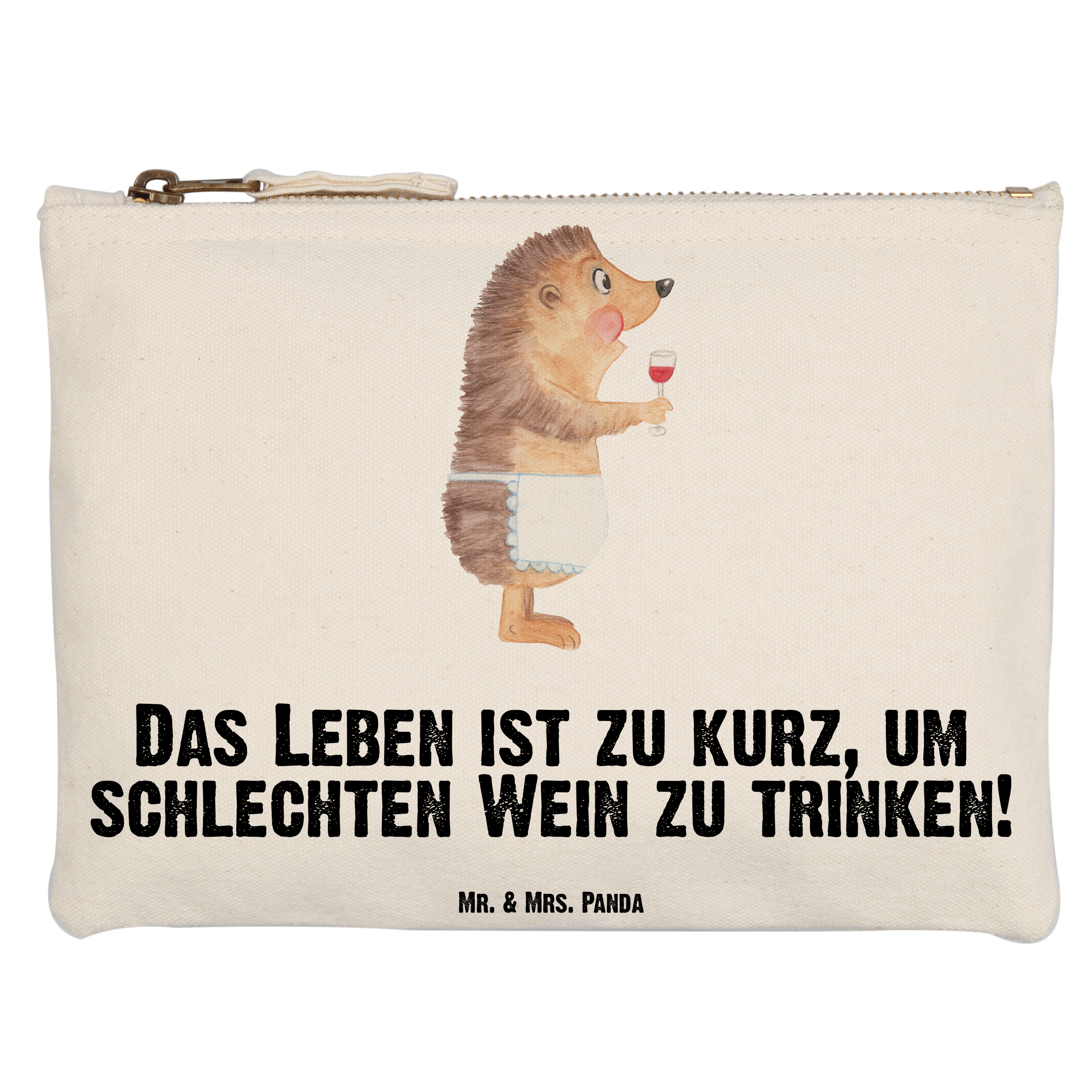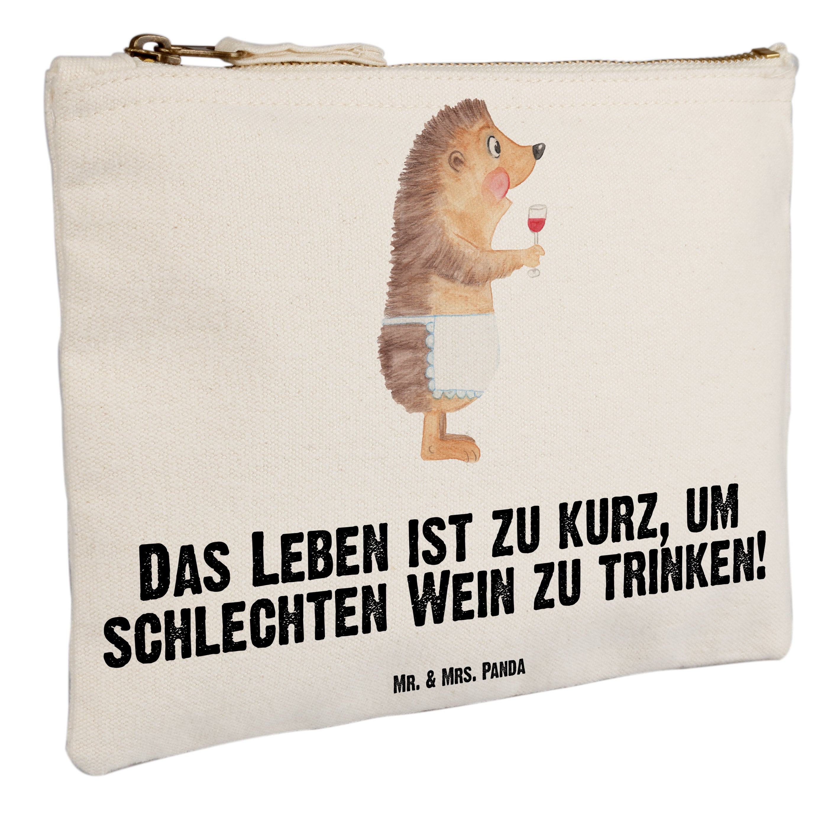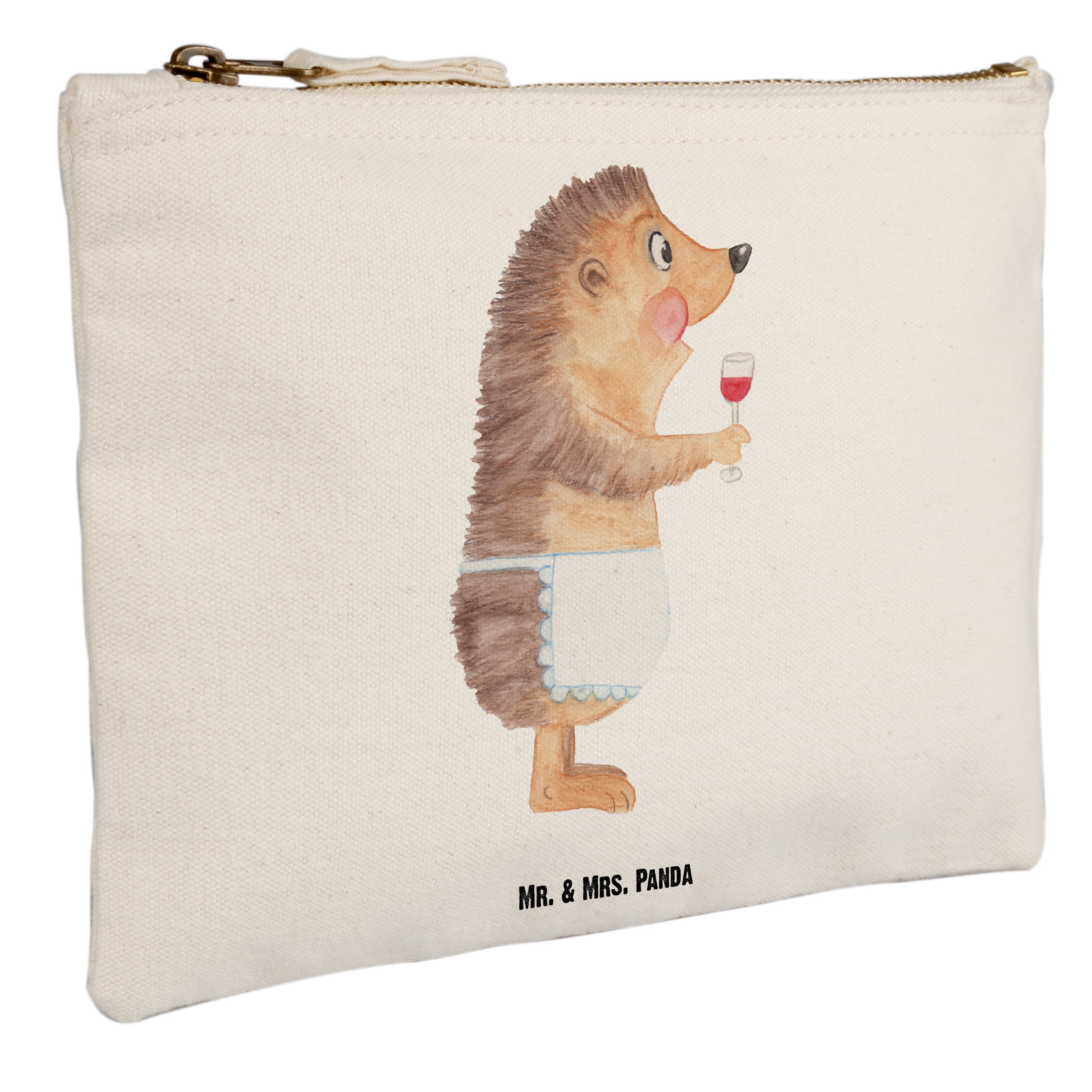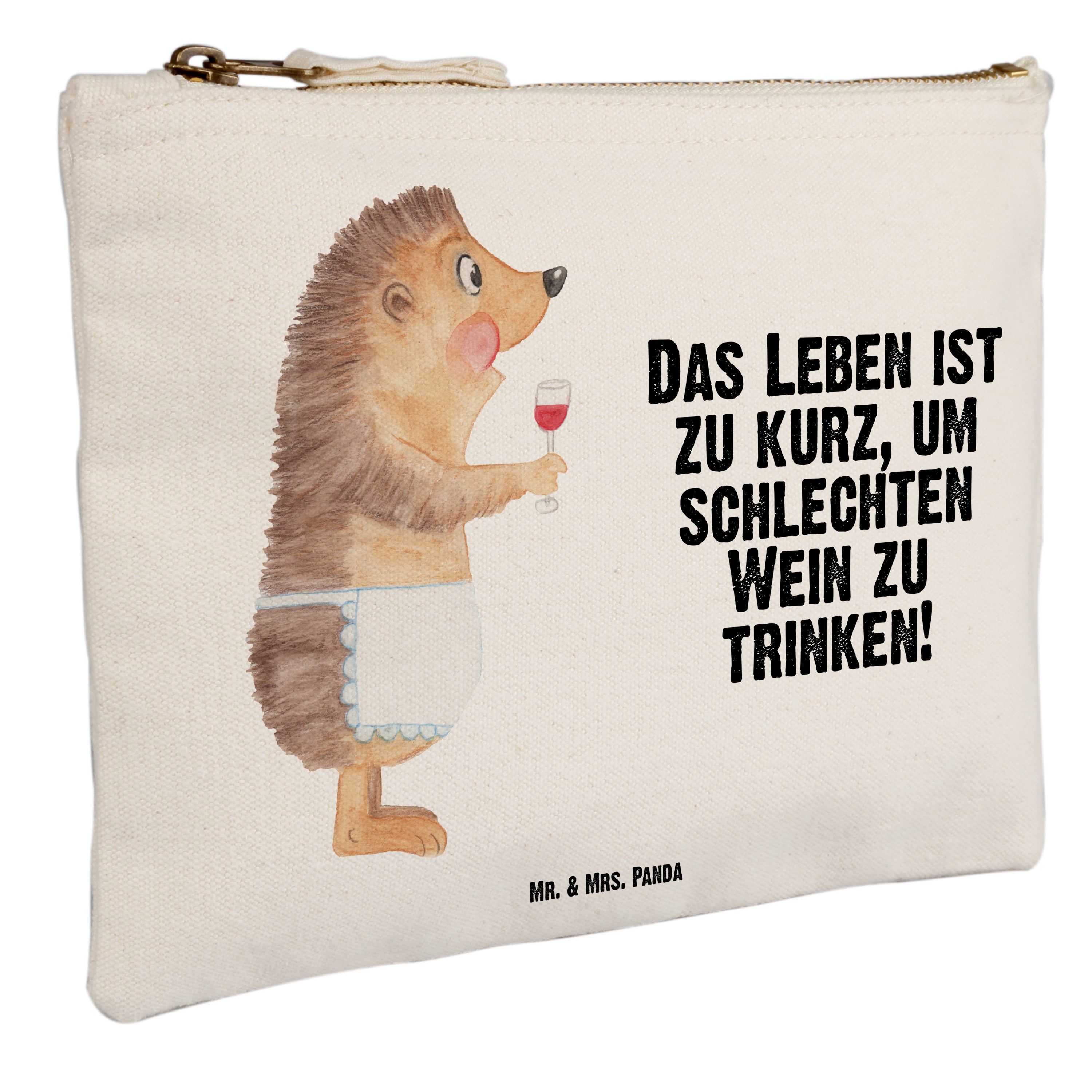 Schminktasche Igel mit Wein - Grösse XL Große - mit Spruch