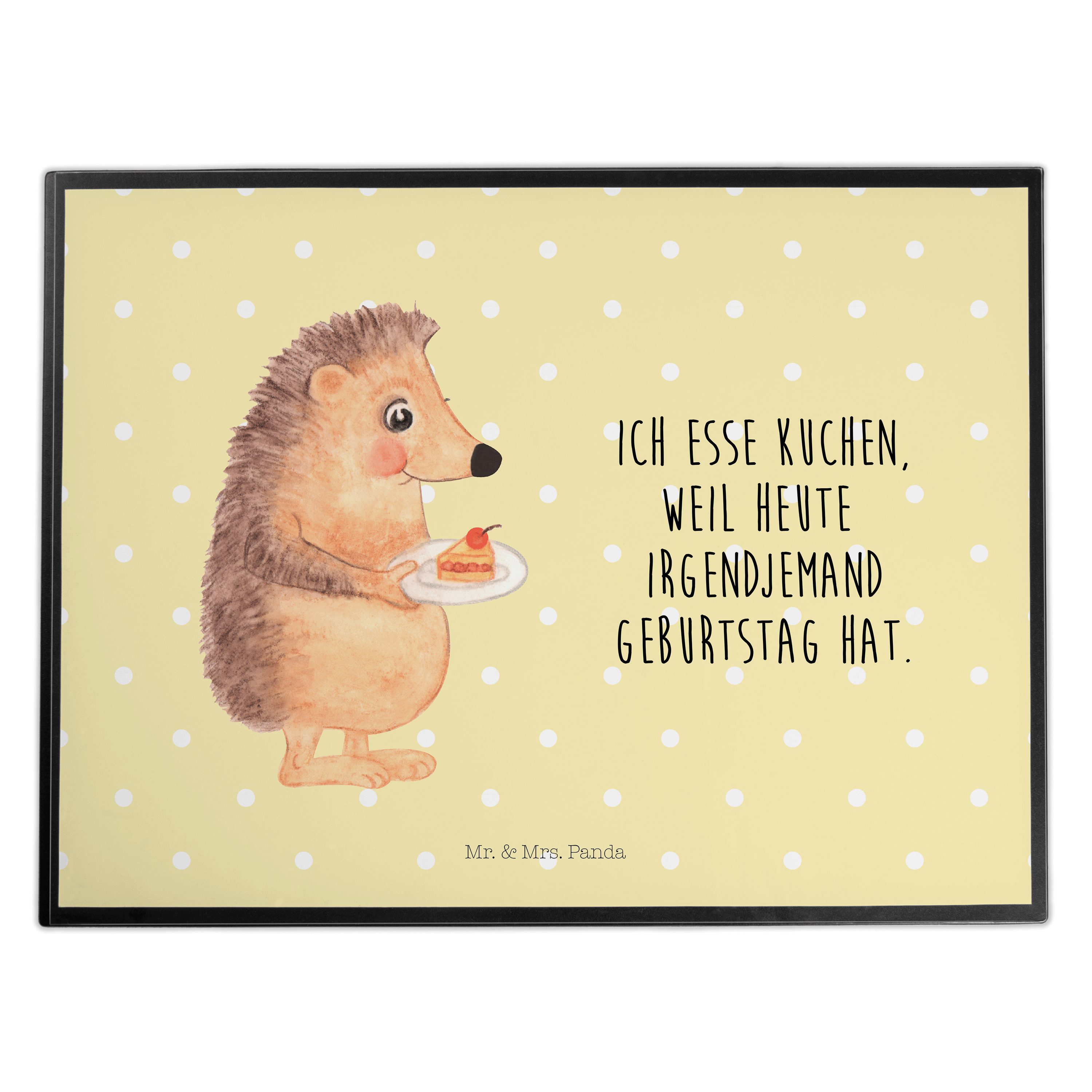 Schreibtischunterlage Igel mit Kuchenstück - mit Spruch - Weiß