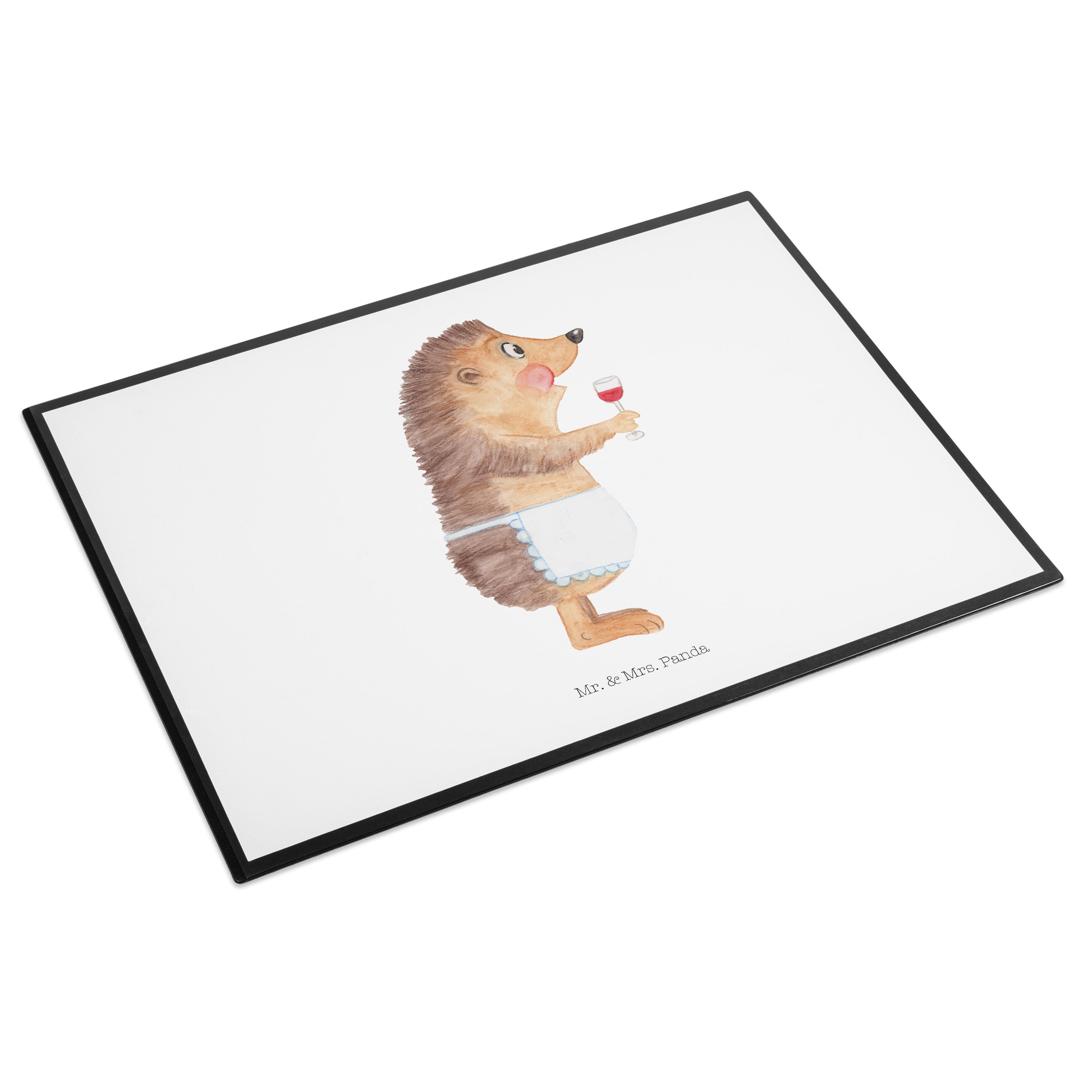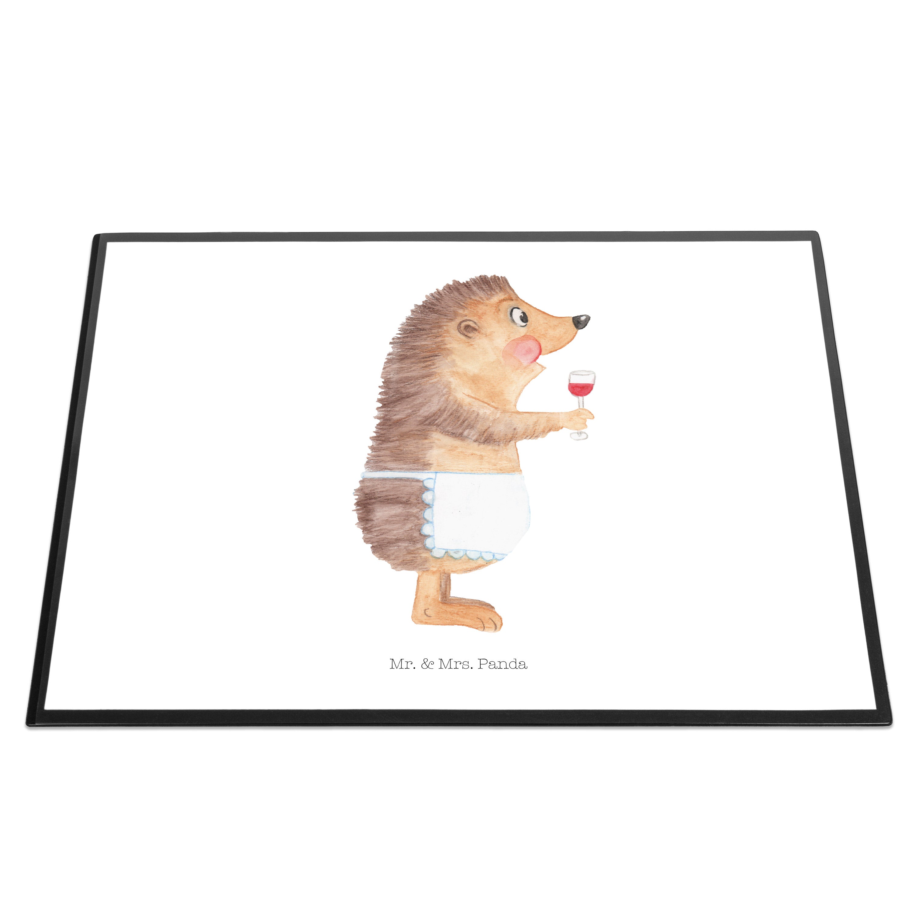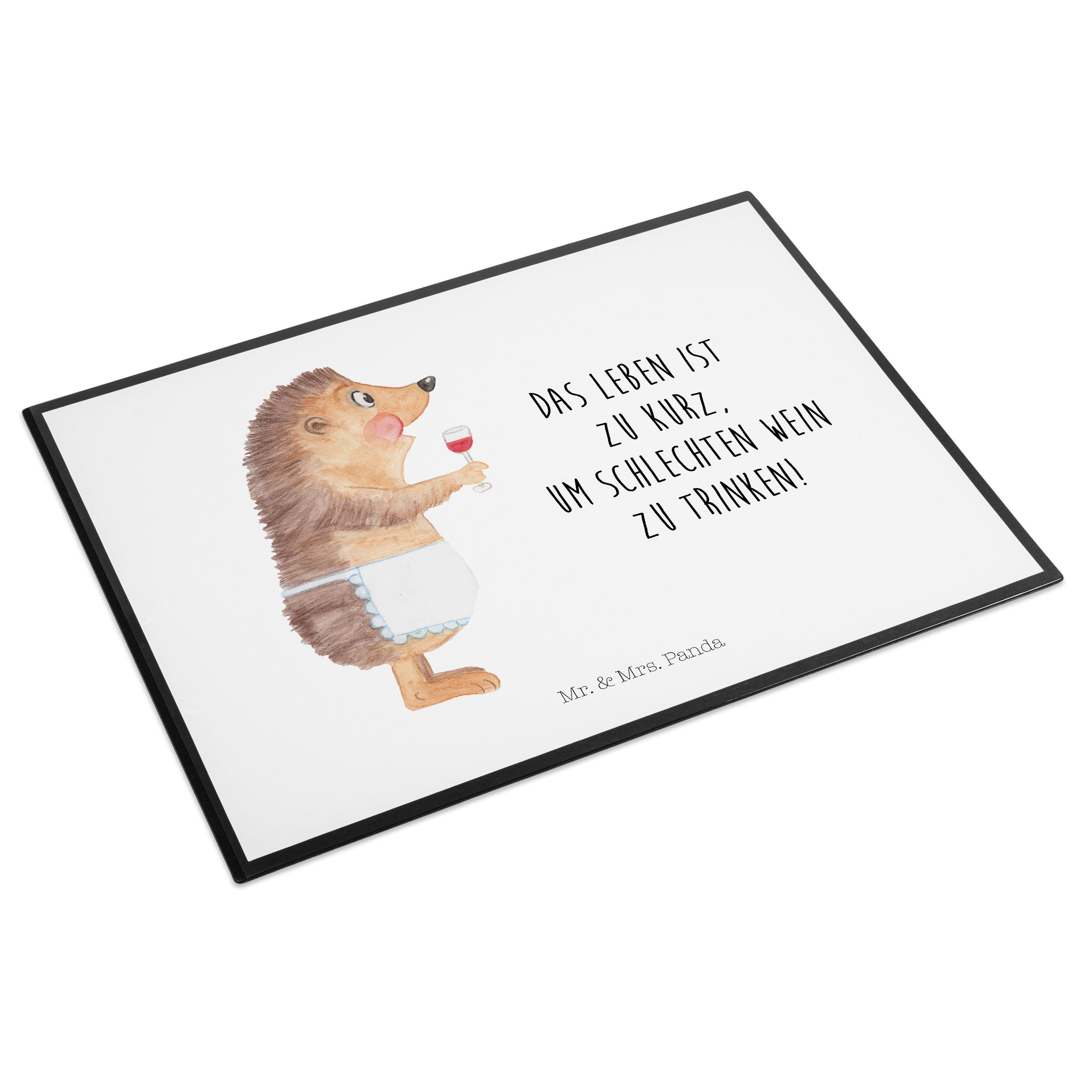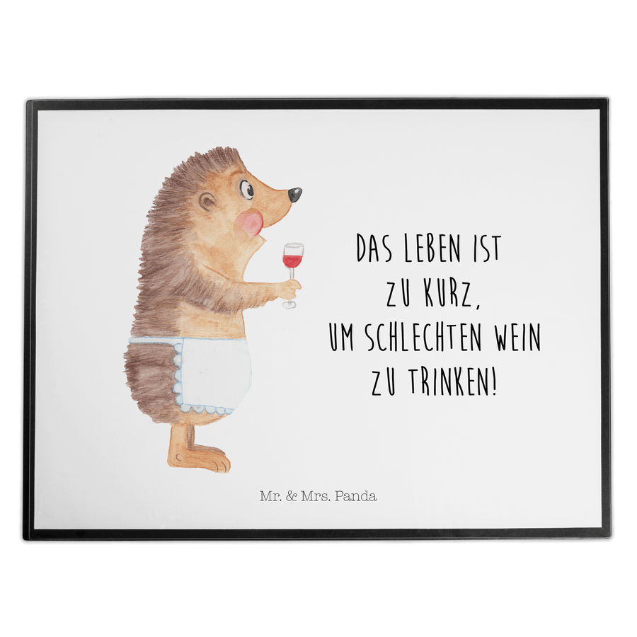 Schreibtischunterlage Igel mit Wein - mit Spruch - Weiß
