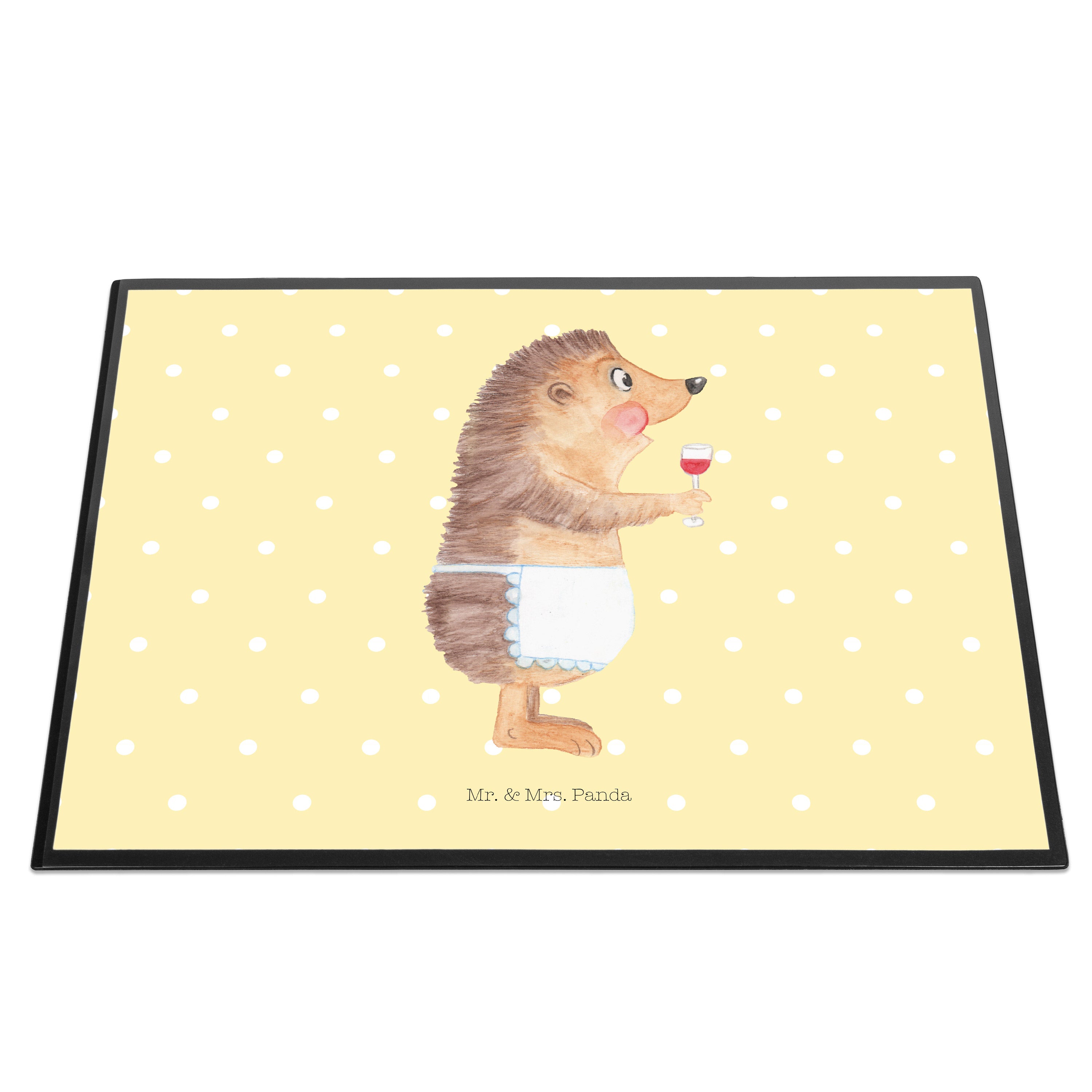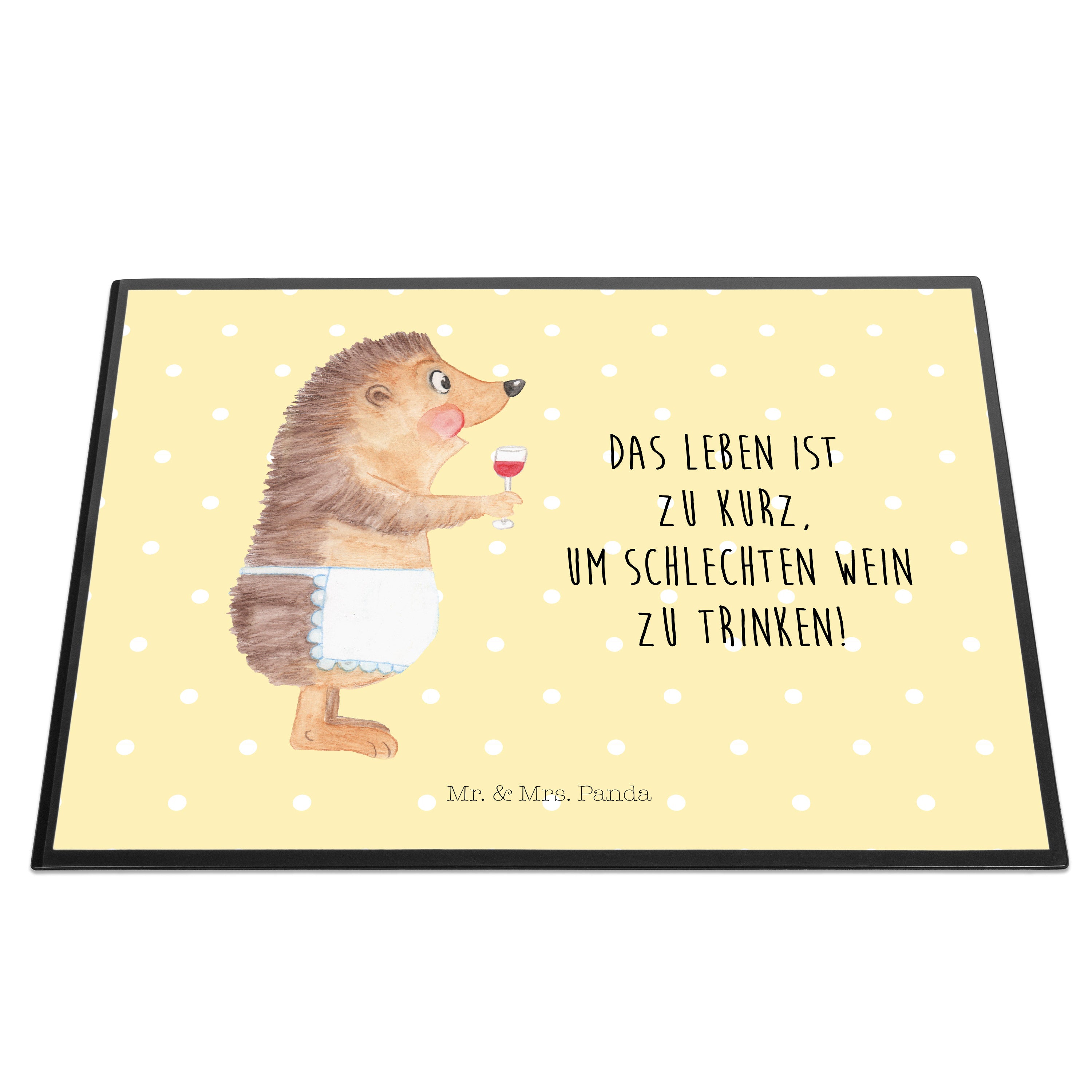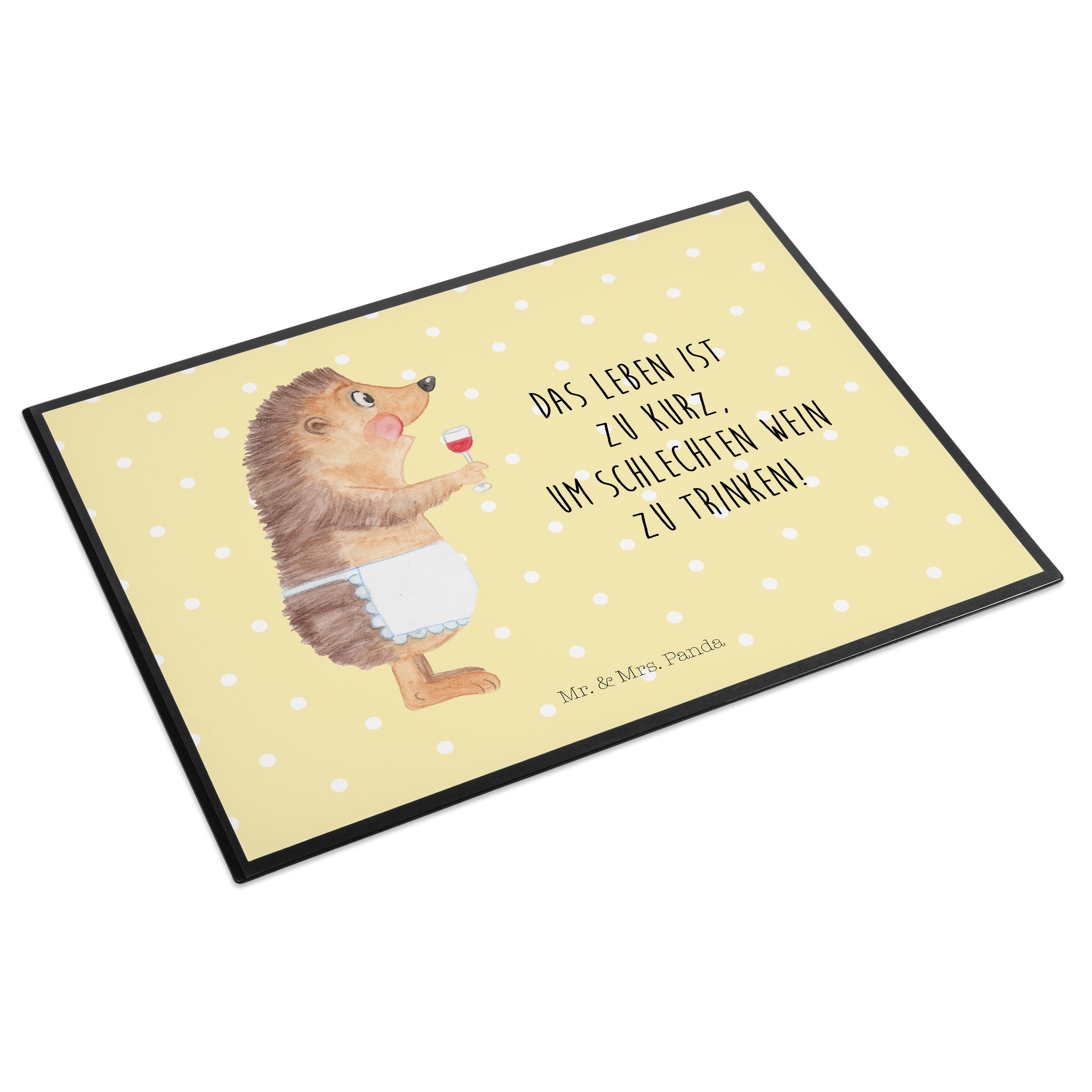 Schreibtischunterlage Igel mit Wein - mit Spruch - Weiß