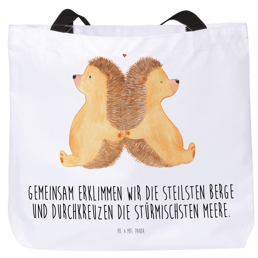 Shopper Igel händchenhaltend - mit Spruch - Weiß