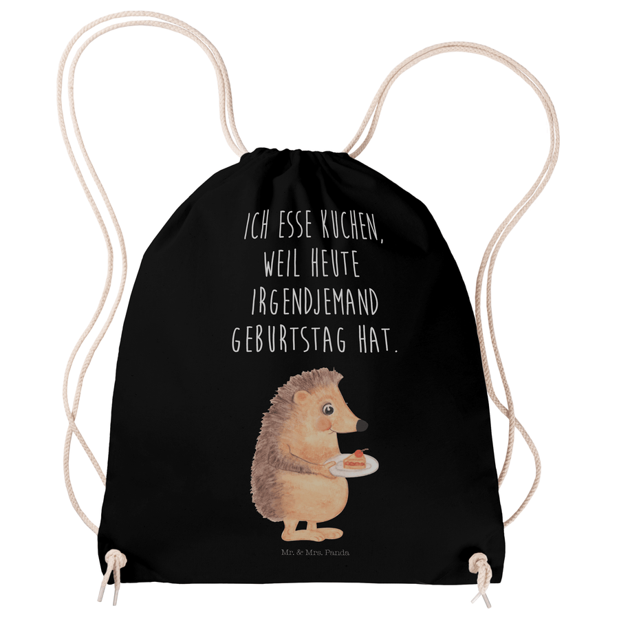 Sportbeutel Igel mit Kuchenstück - mit Spruch - Schwarz