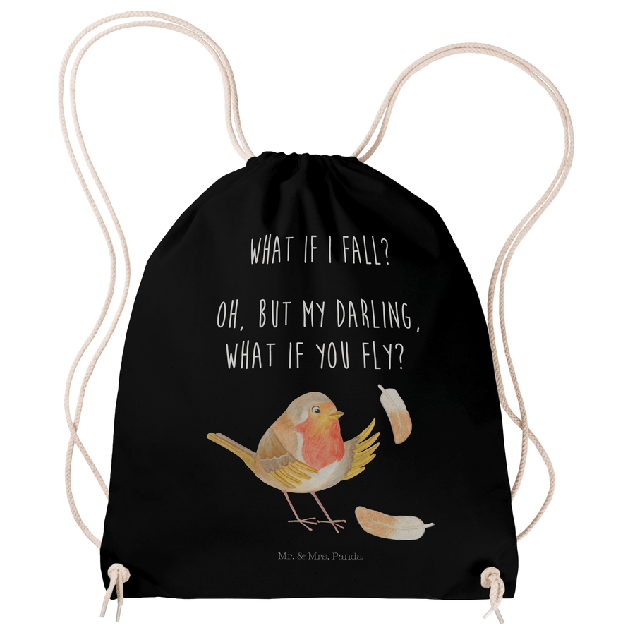 Sportbeutel Rotkehlchen mit Federn - mit Spruch - Schwarz