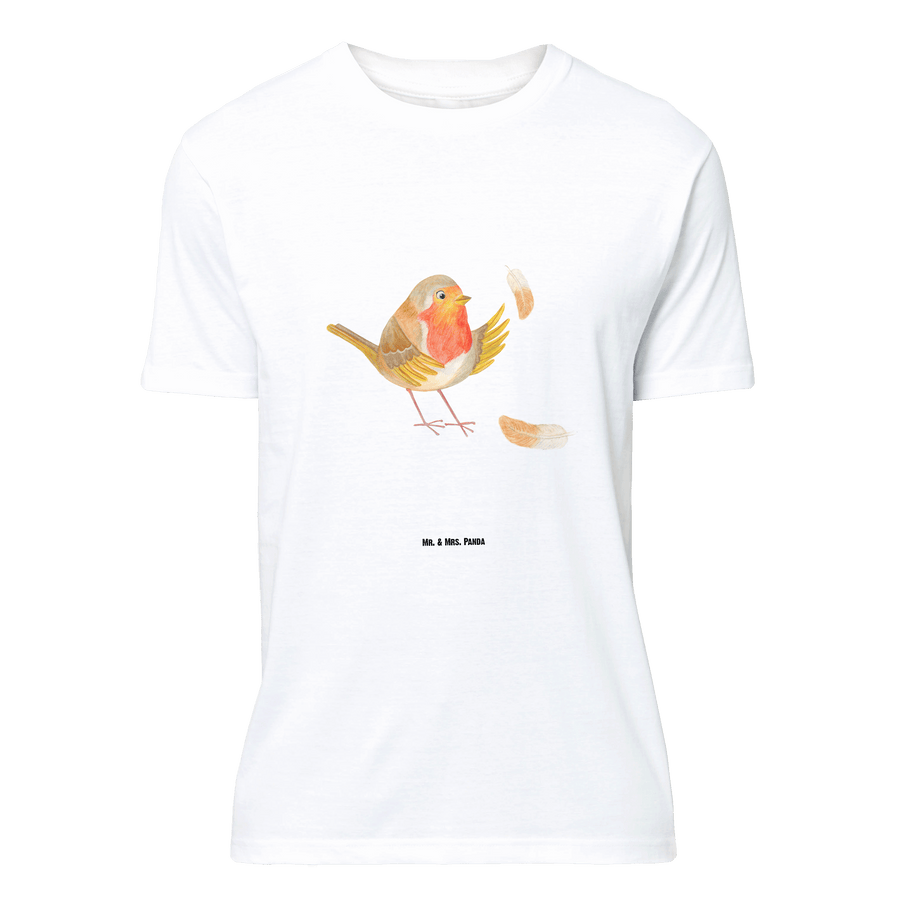 Größe M T-Shirt Rotkehlchen mit Federn - ohne Spruch - Weiß