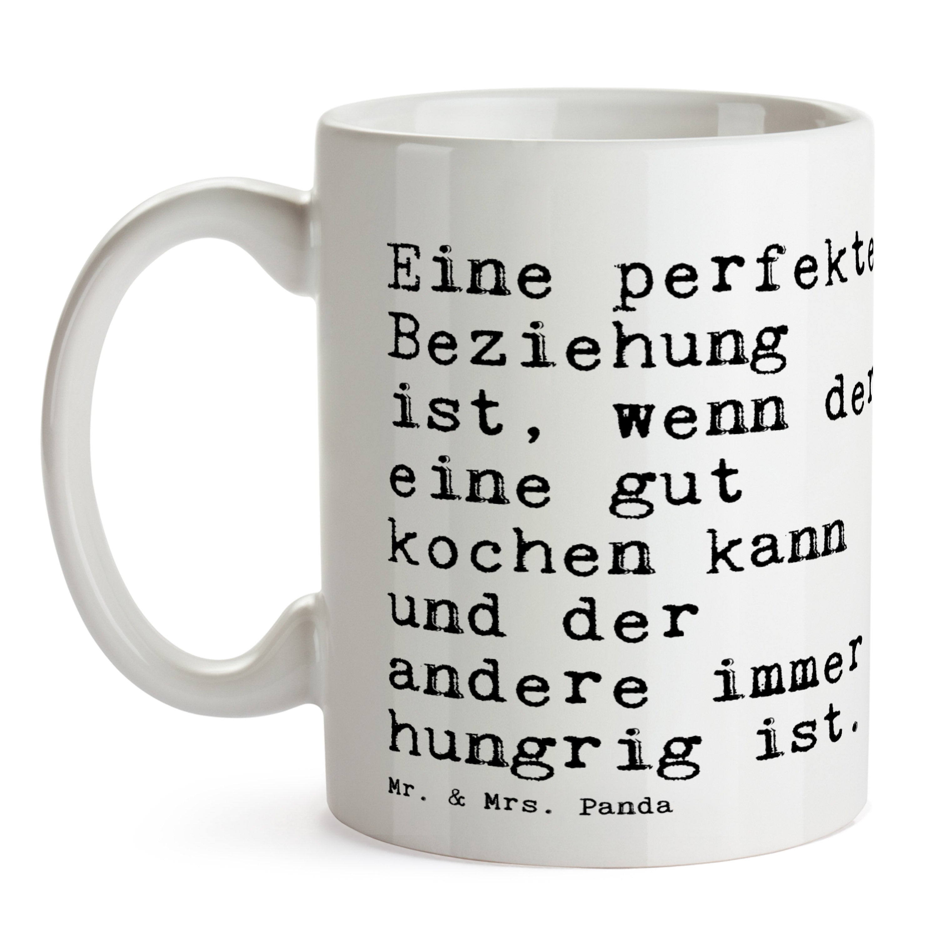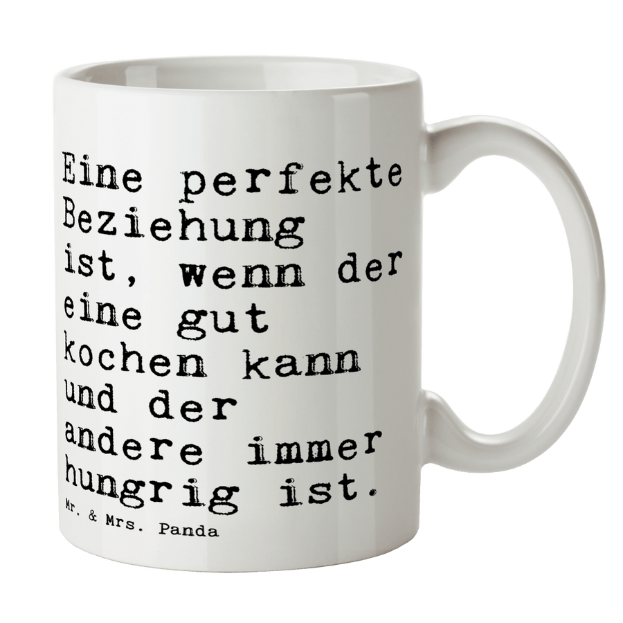 Tasse Sprüche und Zitate Eine perfekte Beziehung ist, wenn der eine gut kochen kann und der andere immer hungrig ist.