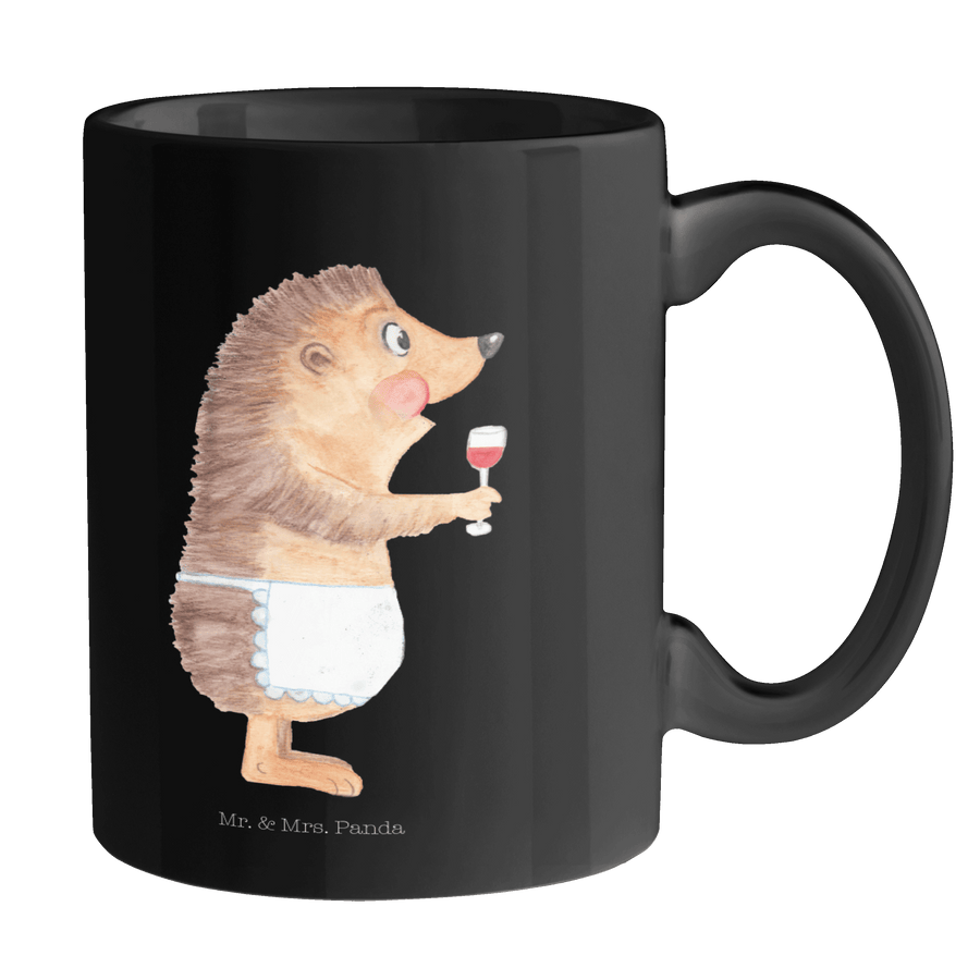 Tasse Igel mit Wein - ohne Spruch - Schwarz