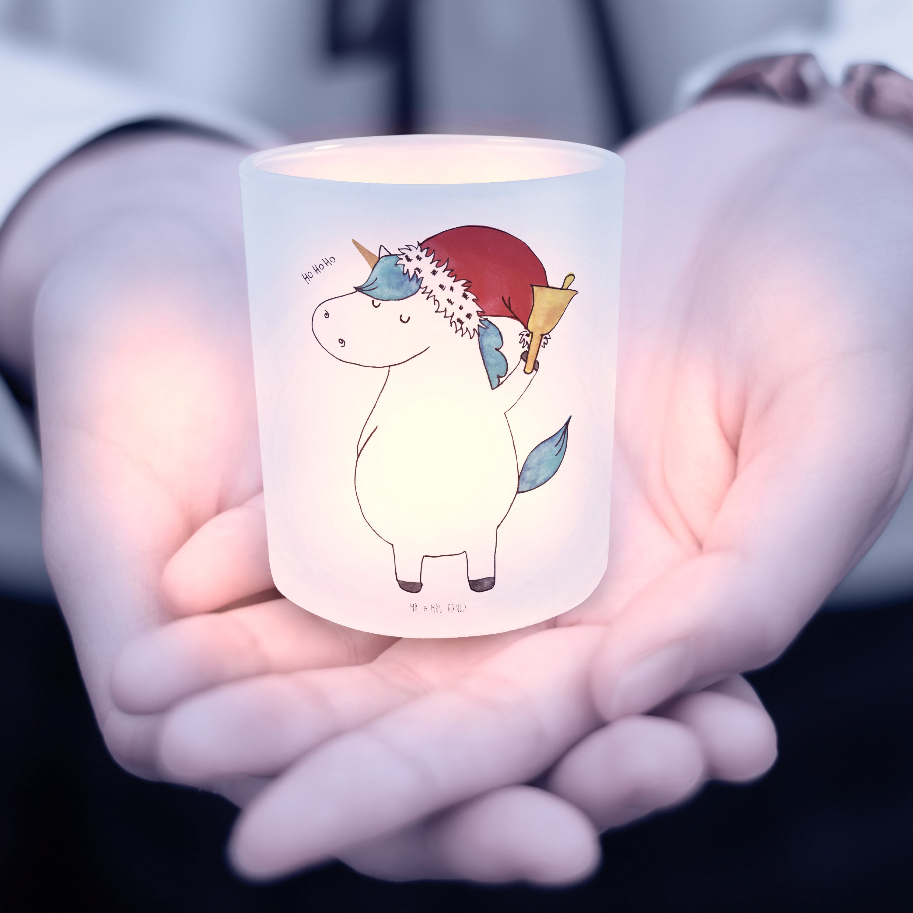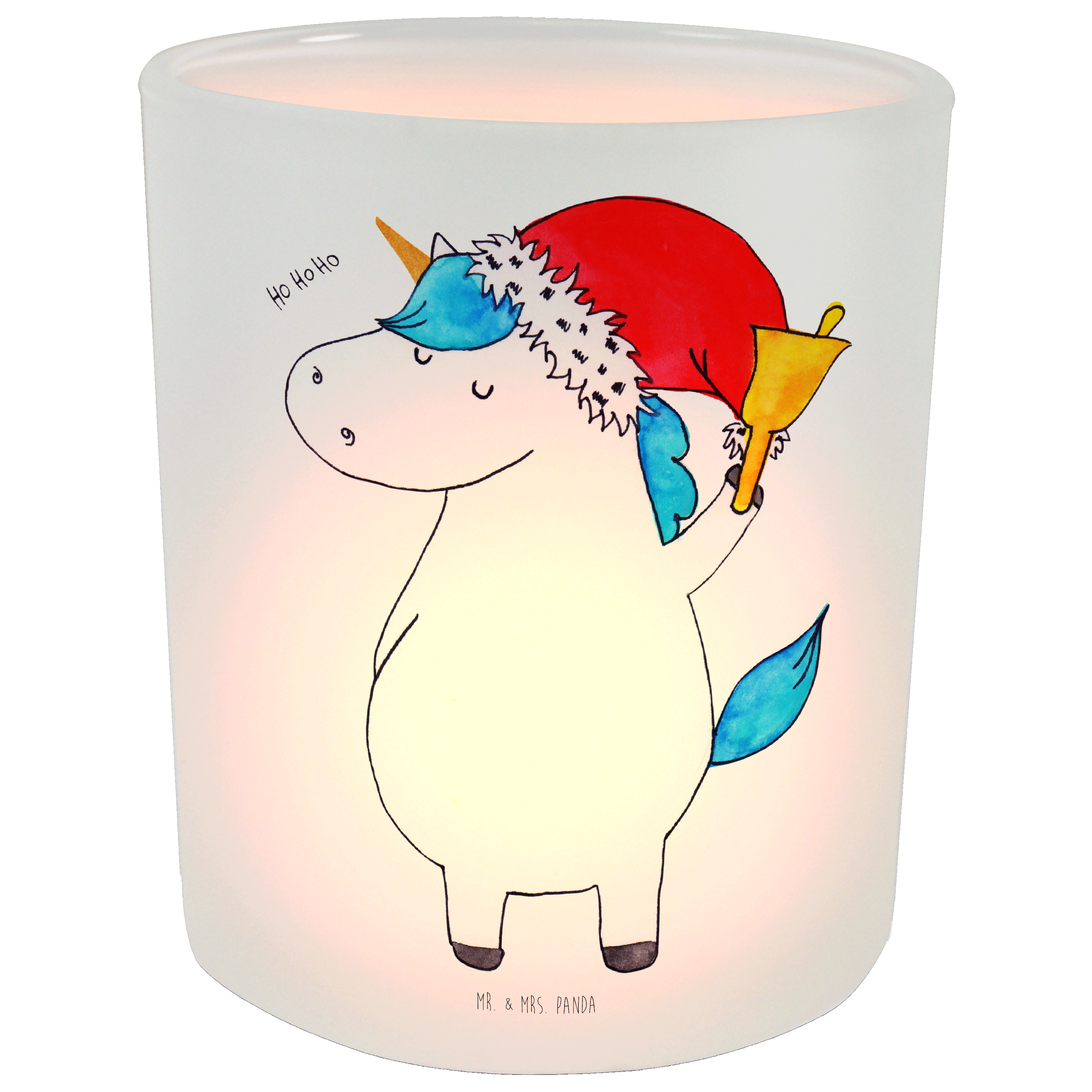 Windlicht Einhorn Weihnachtsmann - mit Spruch