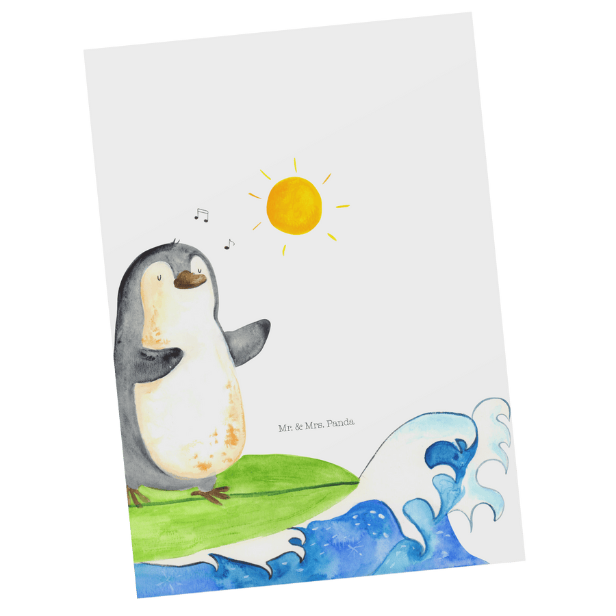 Postkarte Pinguin Surfer - ohne Spruch - Weiß