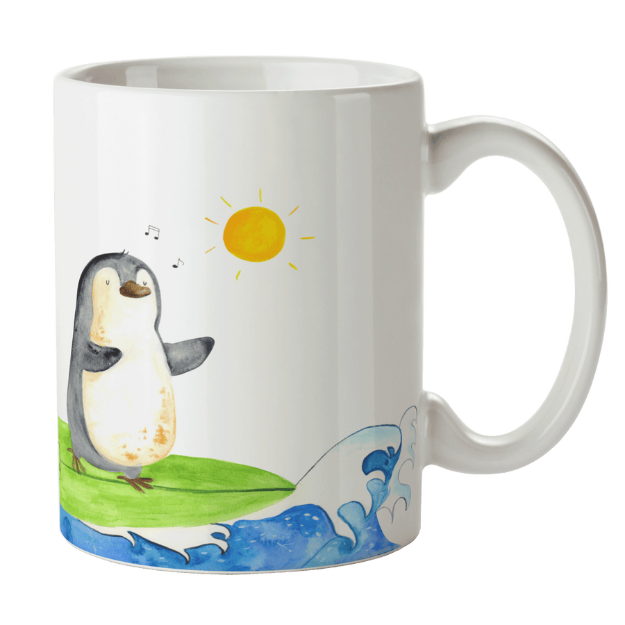 Tasse Pinguin Surfer - ohne Spruch - Weiß