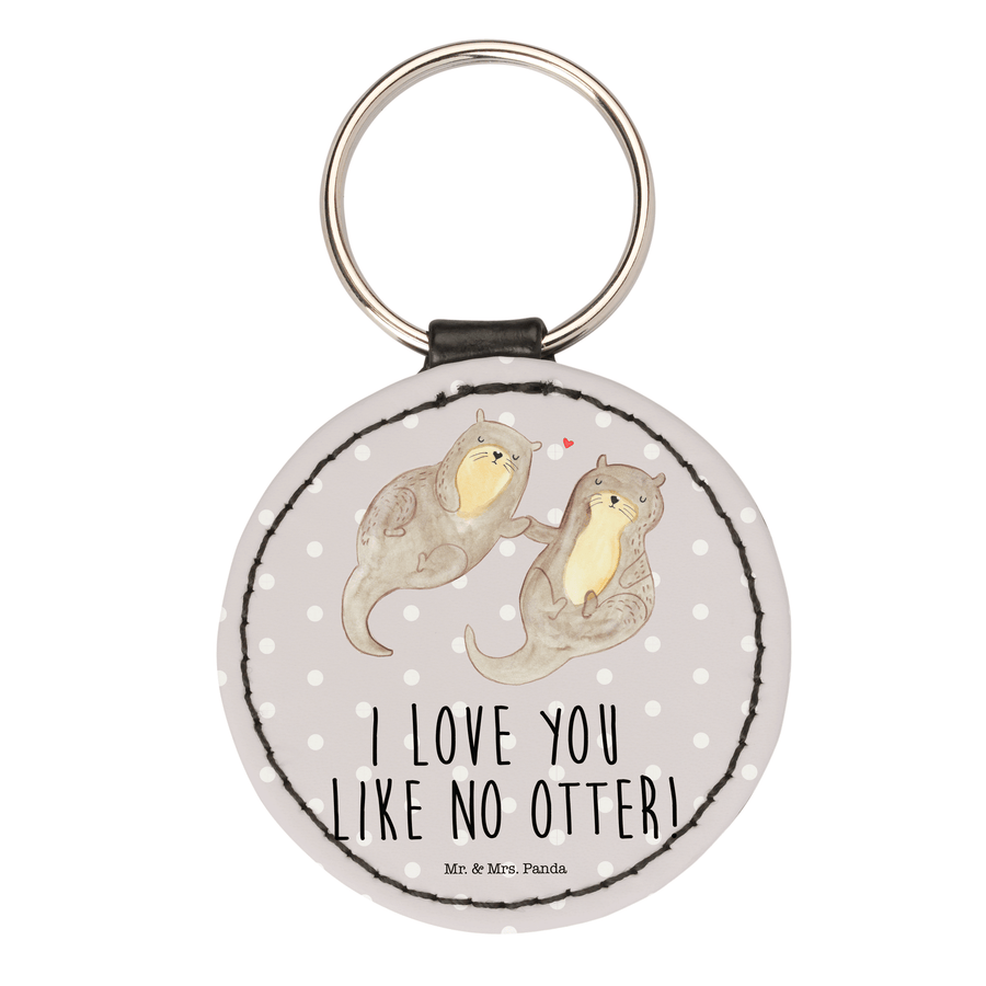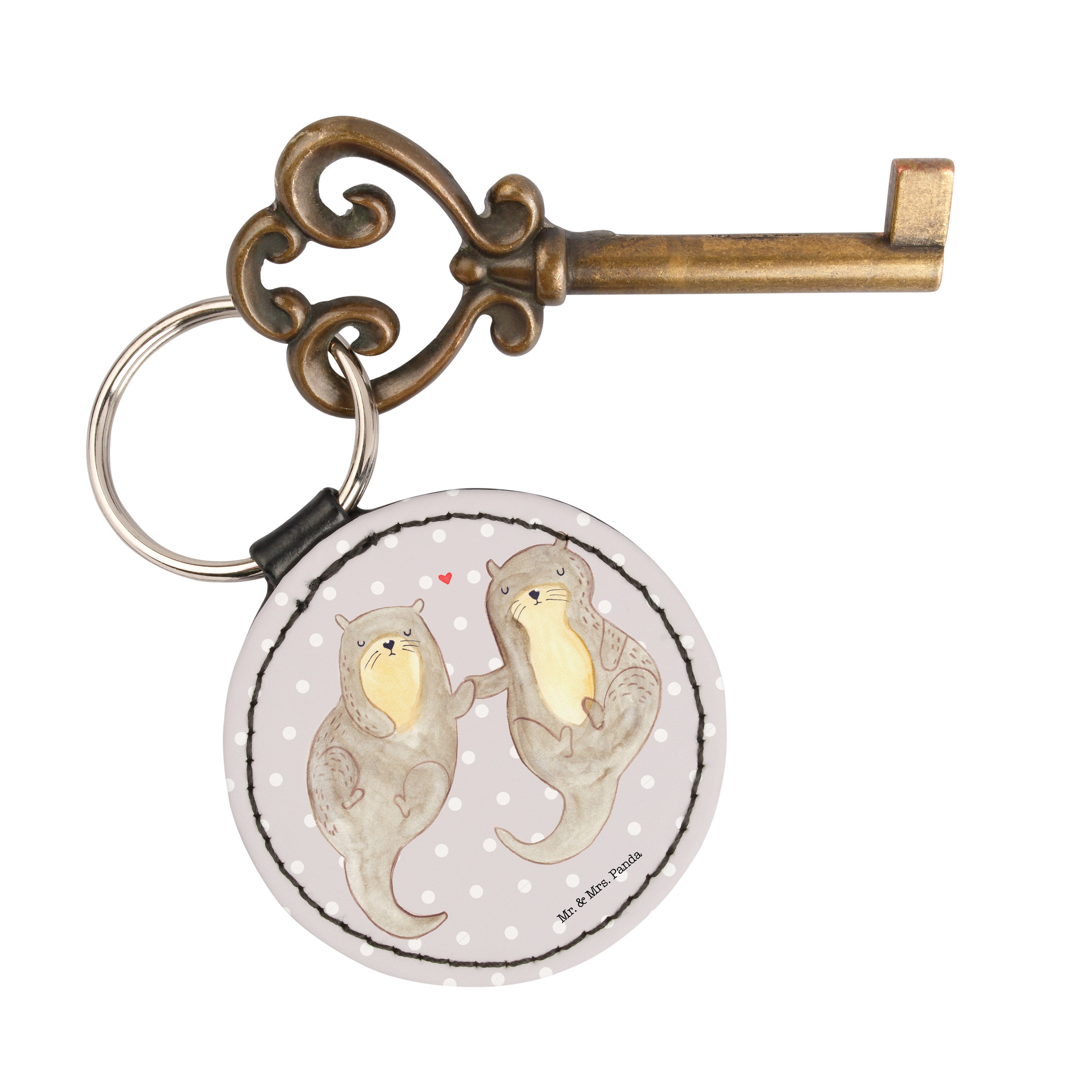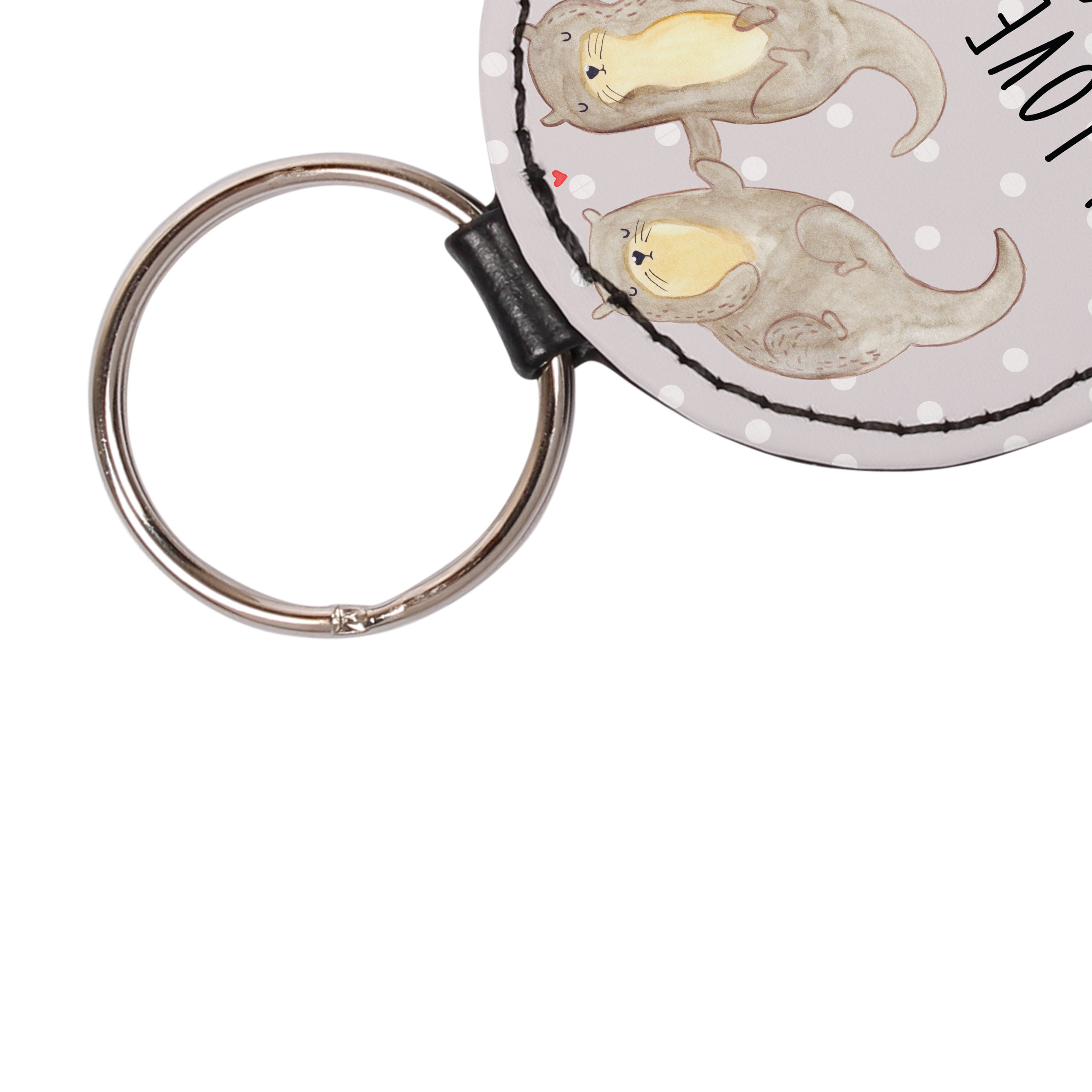 Rund Schlüsselanhänger Otter händchenhaltend - mit Spruch - Grau Pastell