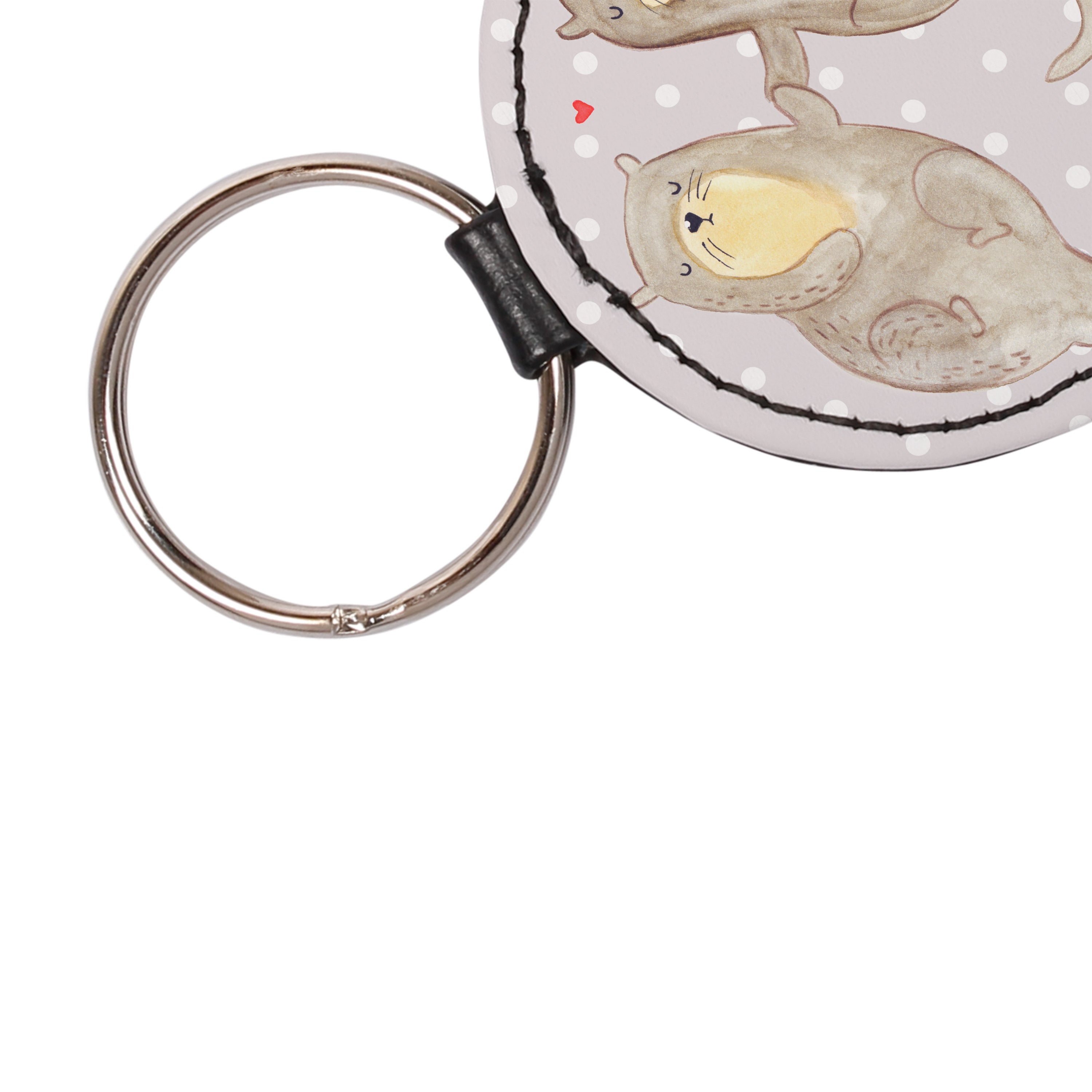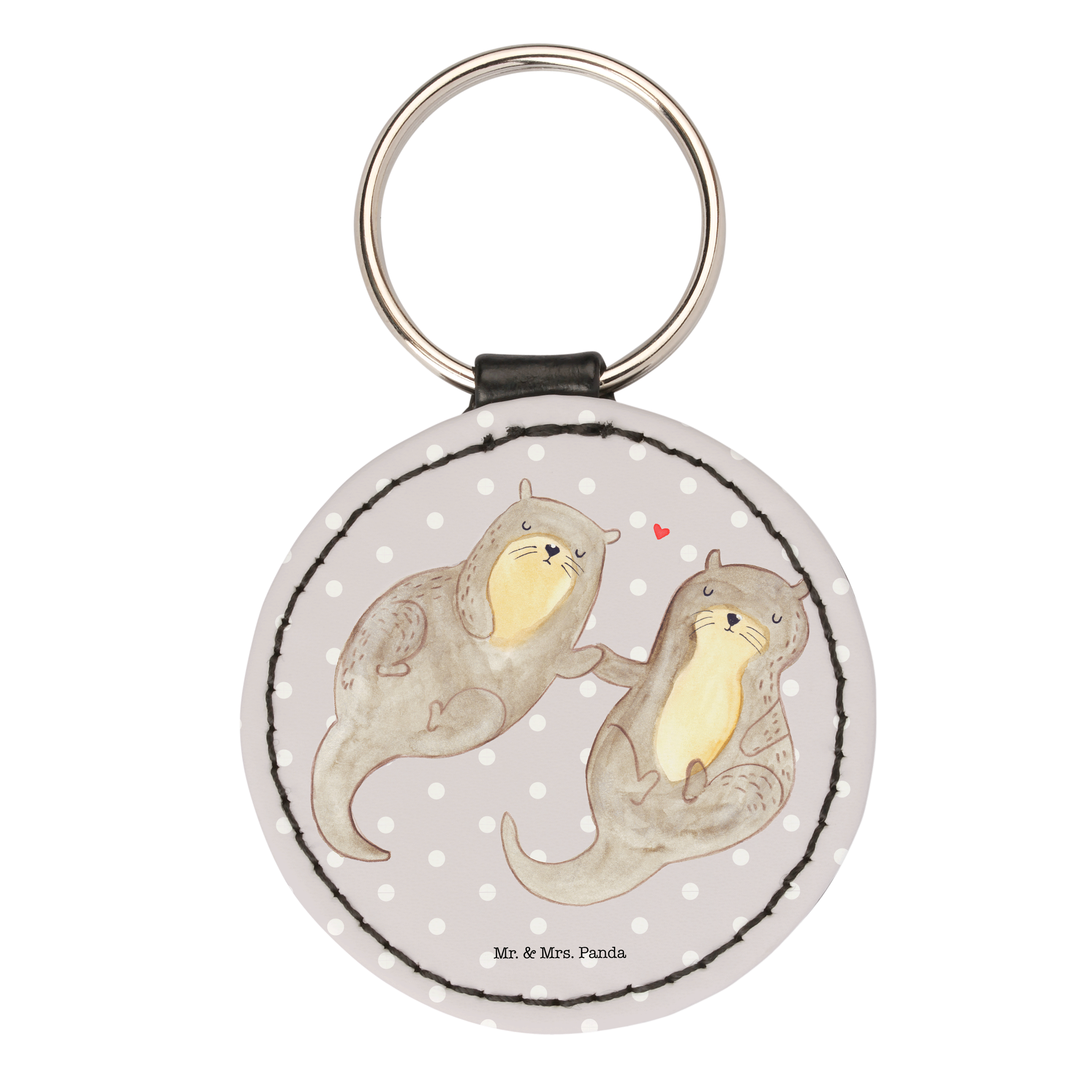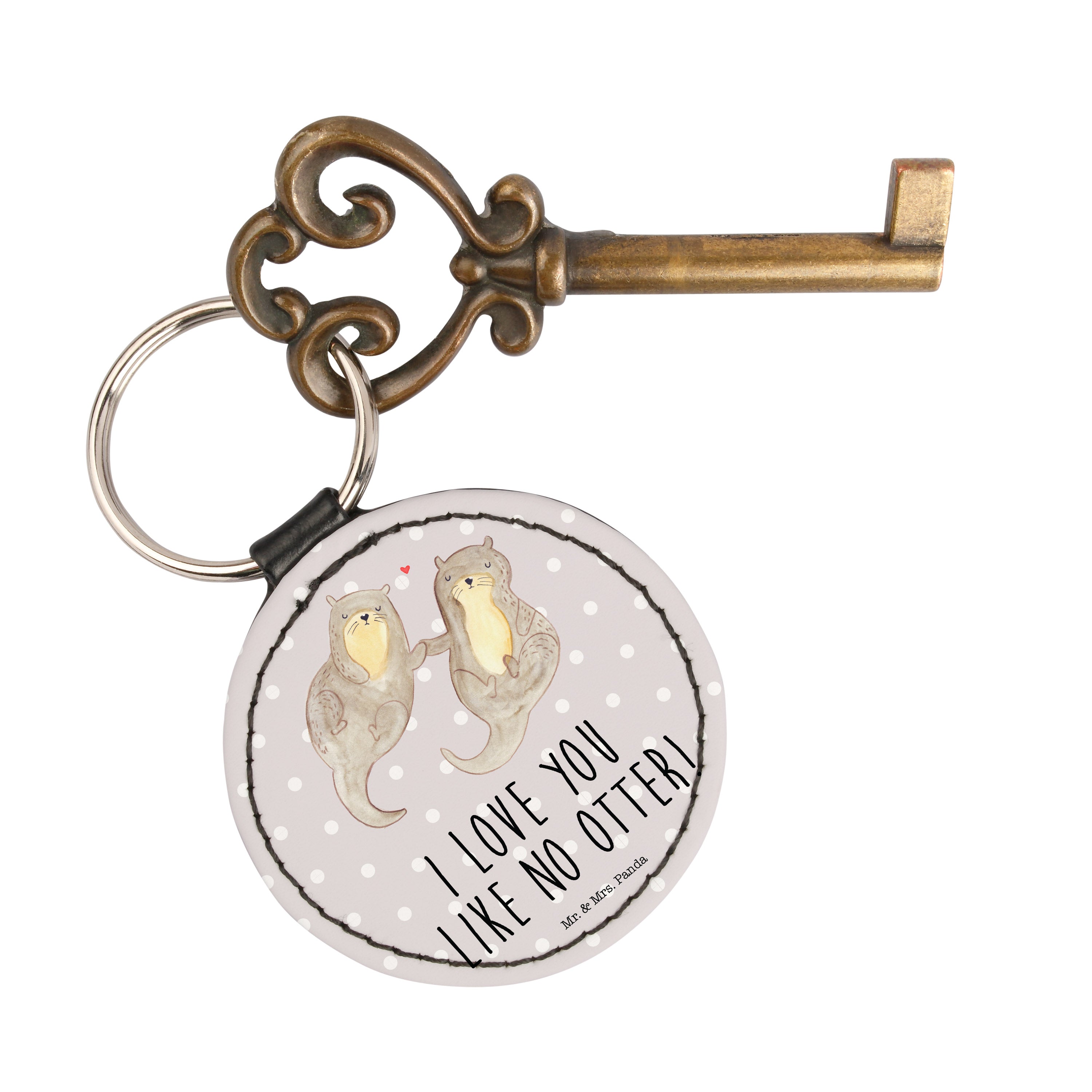 Rund Schlüsselanhänger Otter händchenhaltend - mit Spruch - Grau Pastell