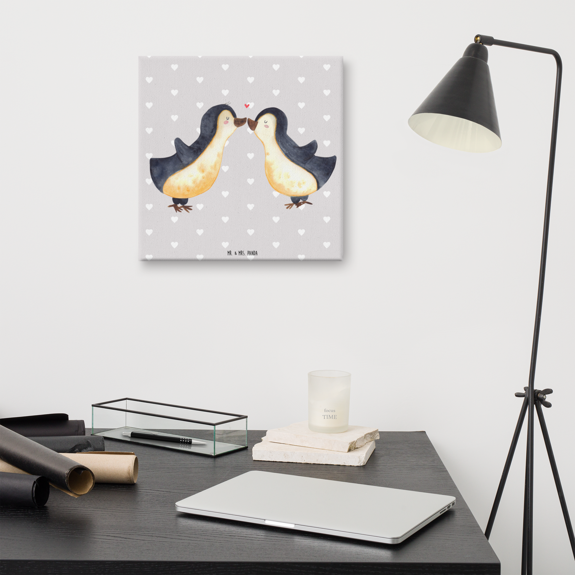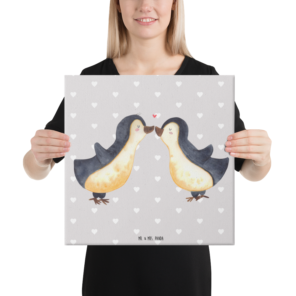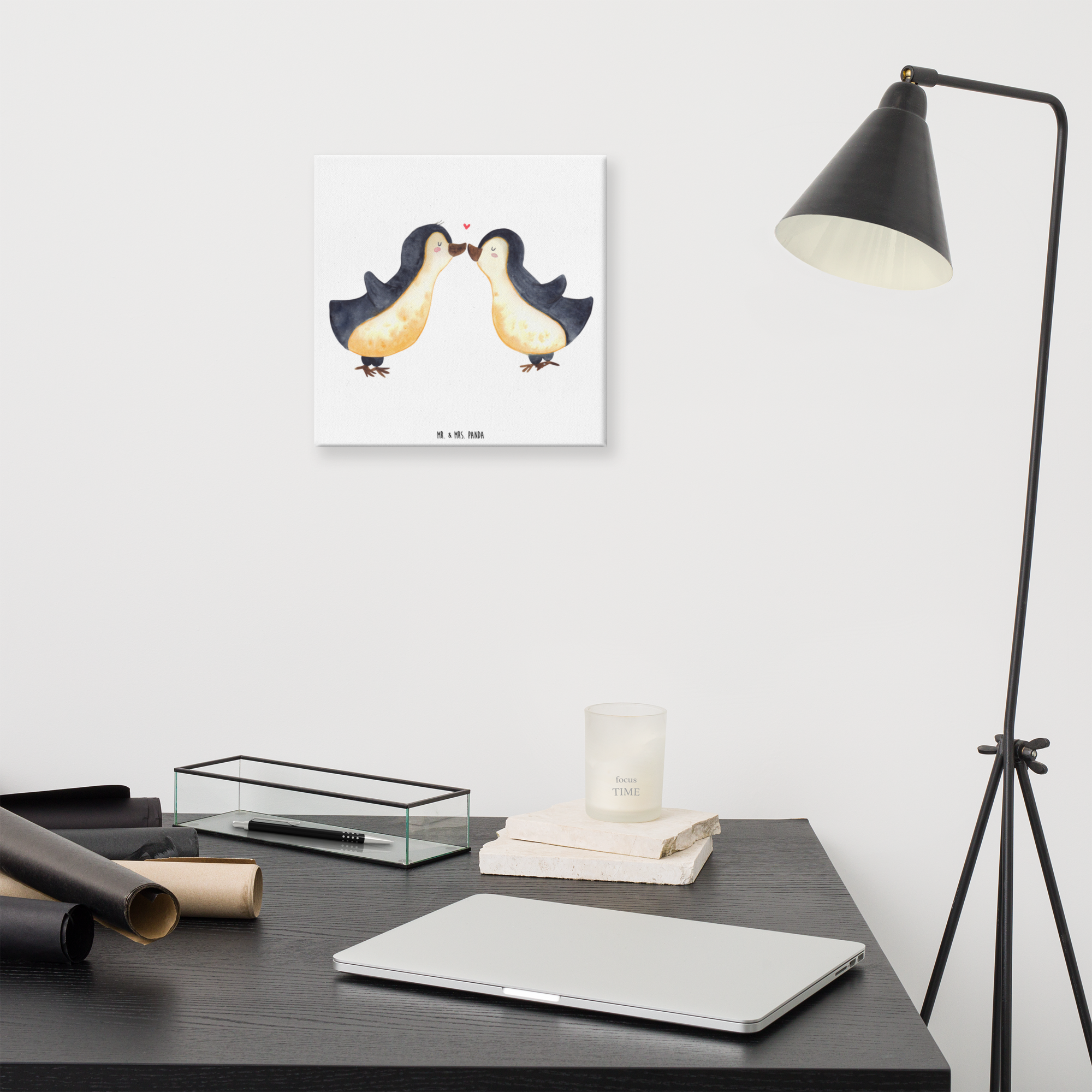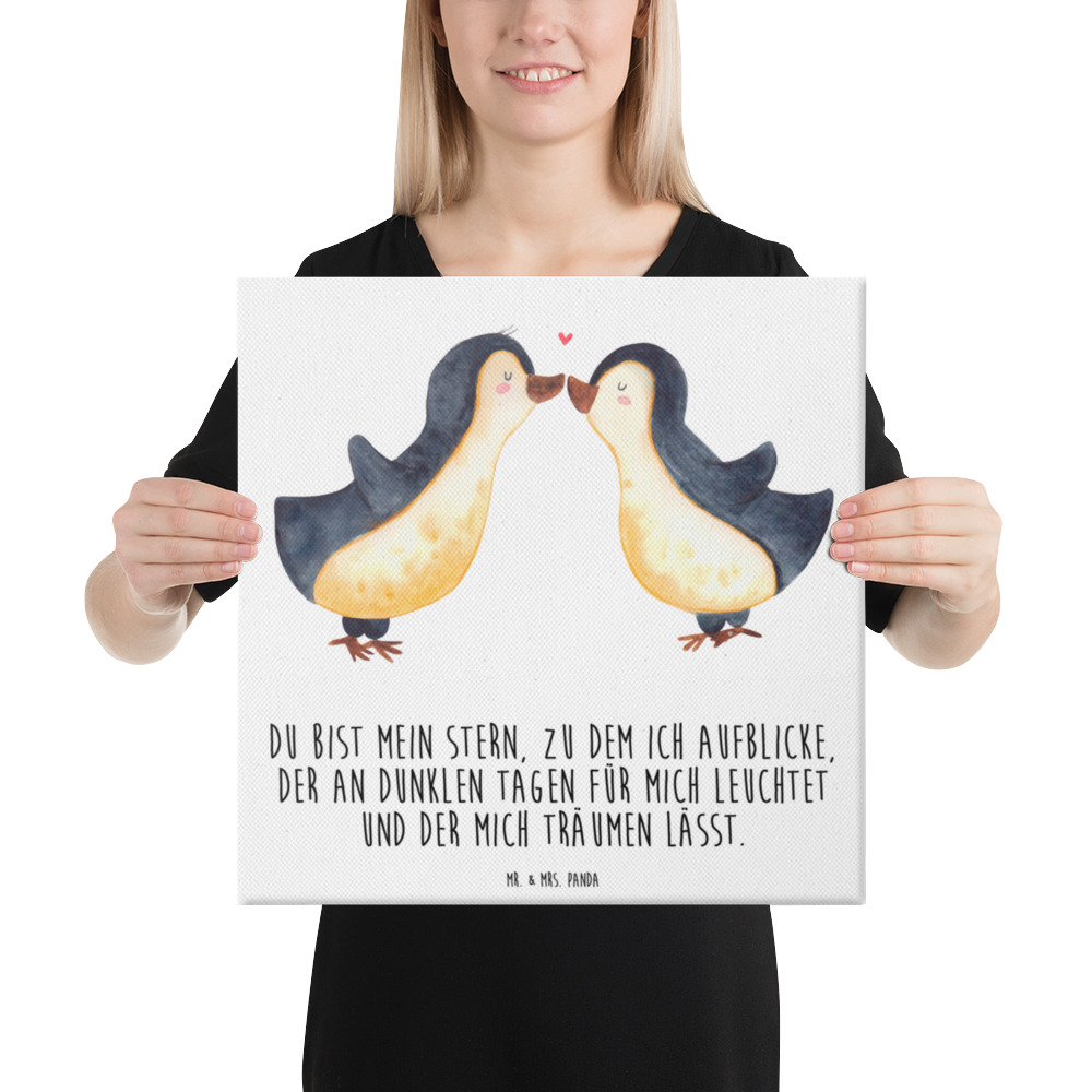 Leinwand Bild Pinguin Liebe - 40 x 40 cm - mit Spruch