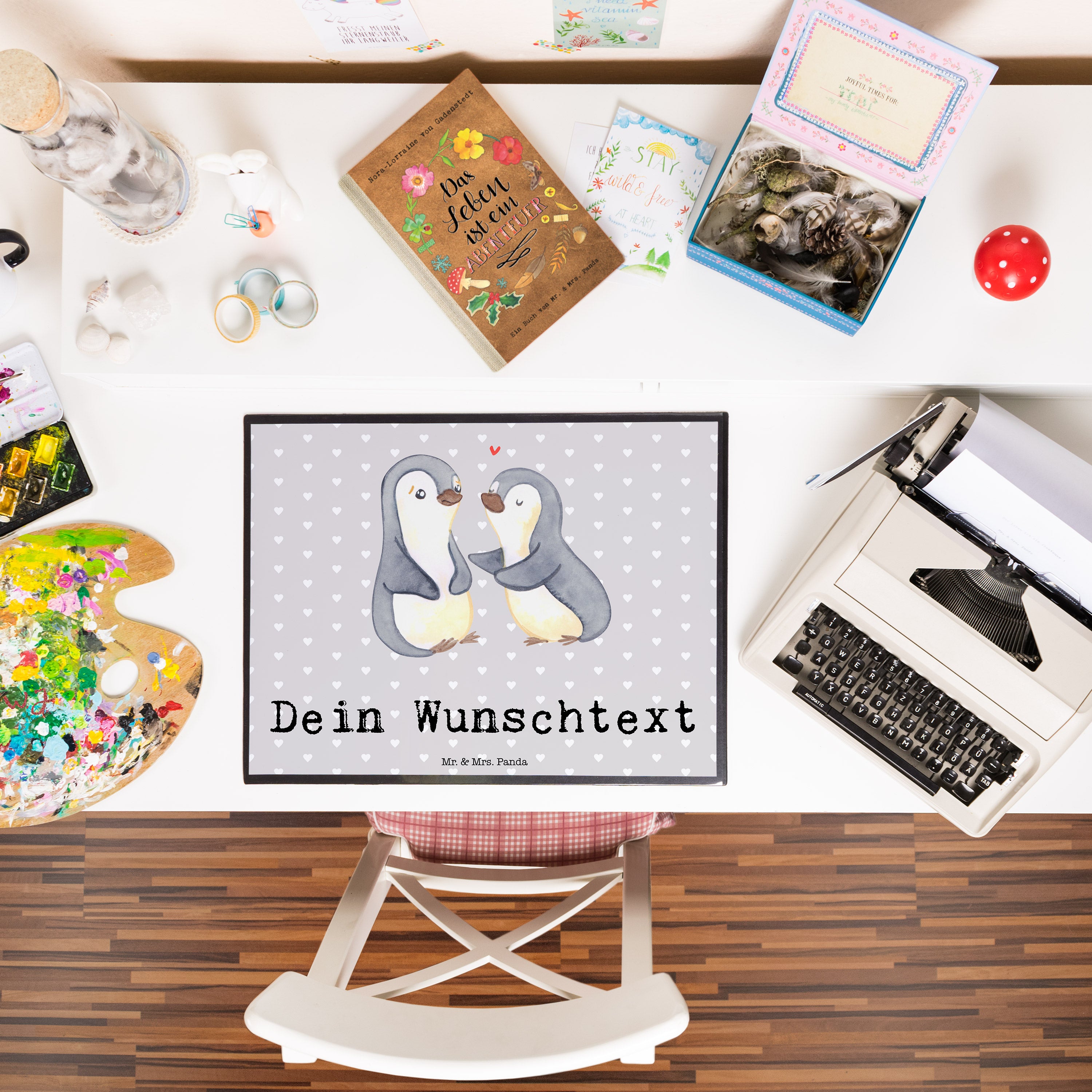 Personalisierte Schreibtischunterlage Pinguine trösten