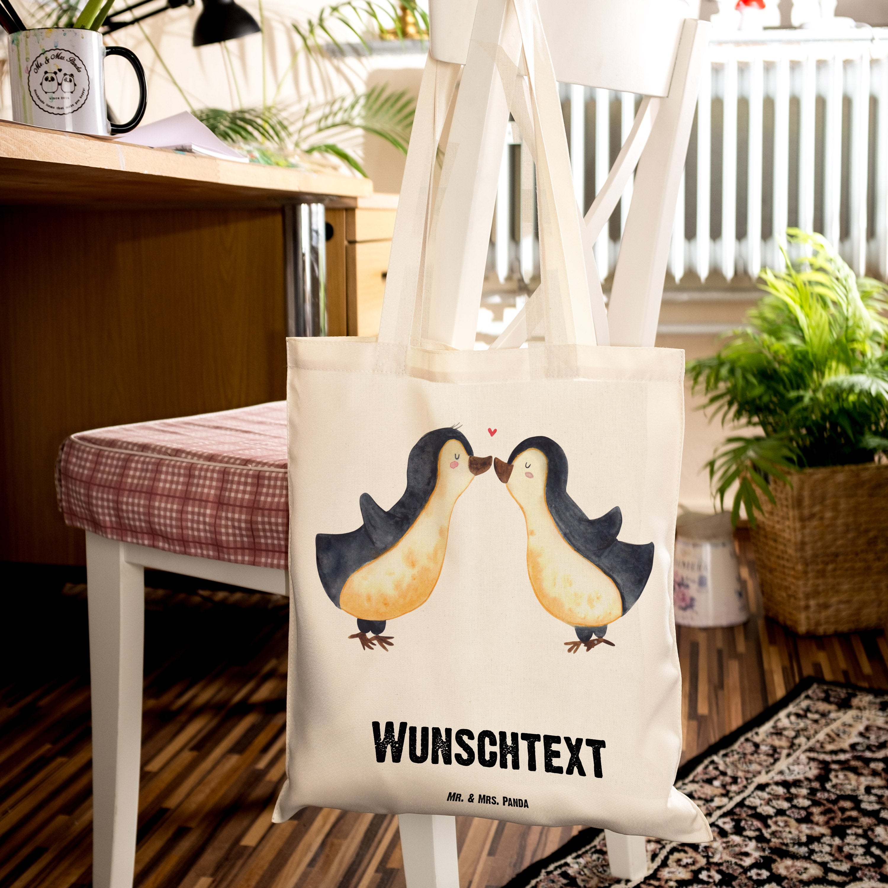 Personalisierte Tragetasche Pinguin Liebe - Transparent