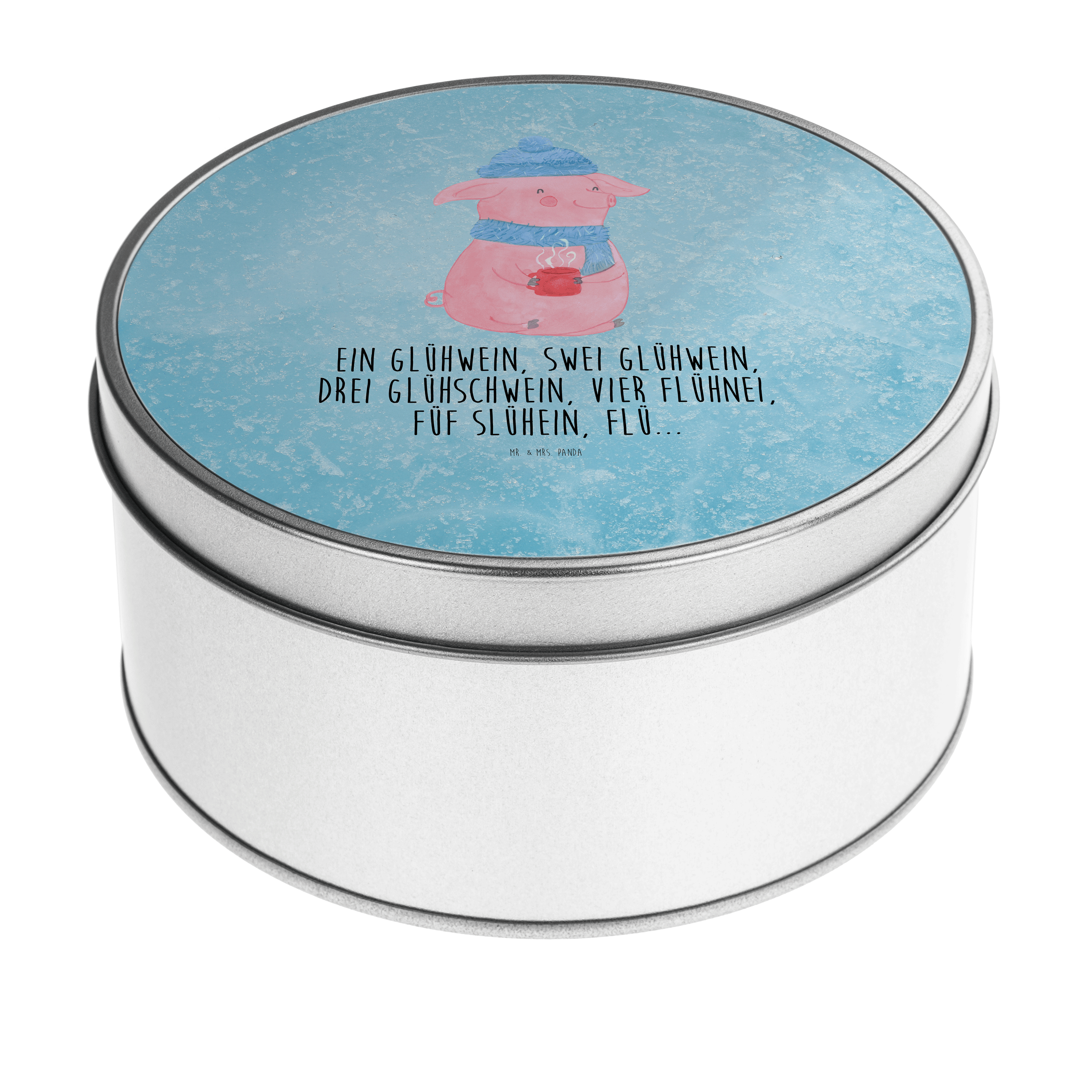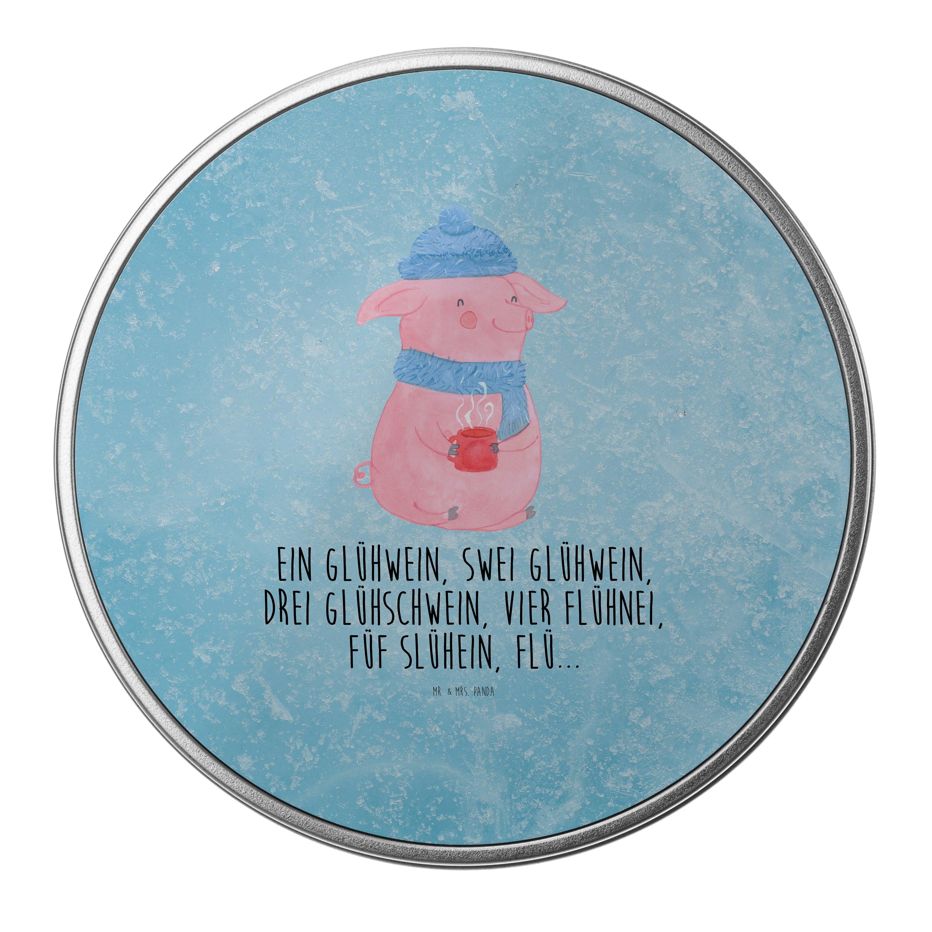 Blechdose rund Lallelndes Glühschwein - mit Spruch - Eisblau