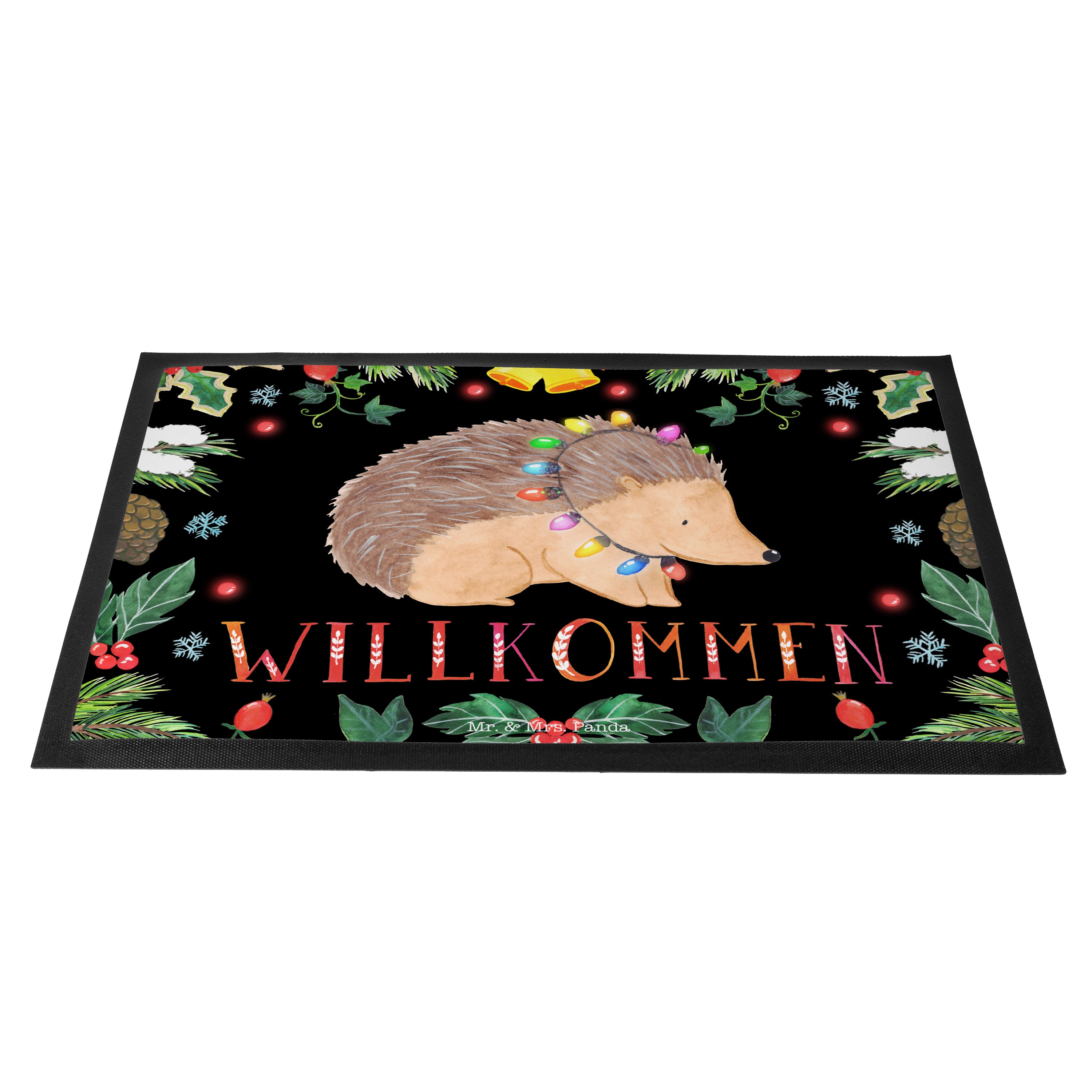Fußmatte Igel Lichterkette  Türvorleger, Schmutzmatte, Fußabtreter, Matte, Schmutzfänger, Fußabstreifer, Schmutzfangmatte, Türmatte, Motivfußmatte,  Haustürmatte, Vorleger  Winter, Weihnachten, Weihnachtsdeko, Nikolaus, Advent, Heiligabend, Wintermotiv
