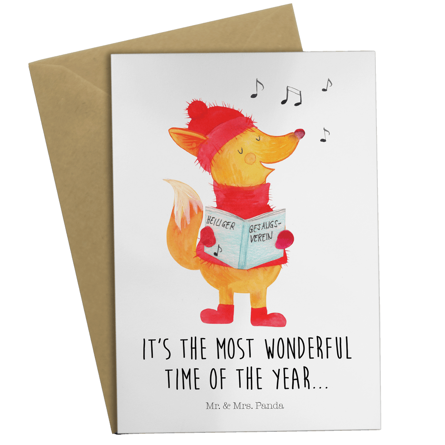 Grußkarte Fuchs Sänger - mit Spruch - Weiß