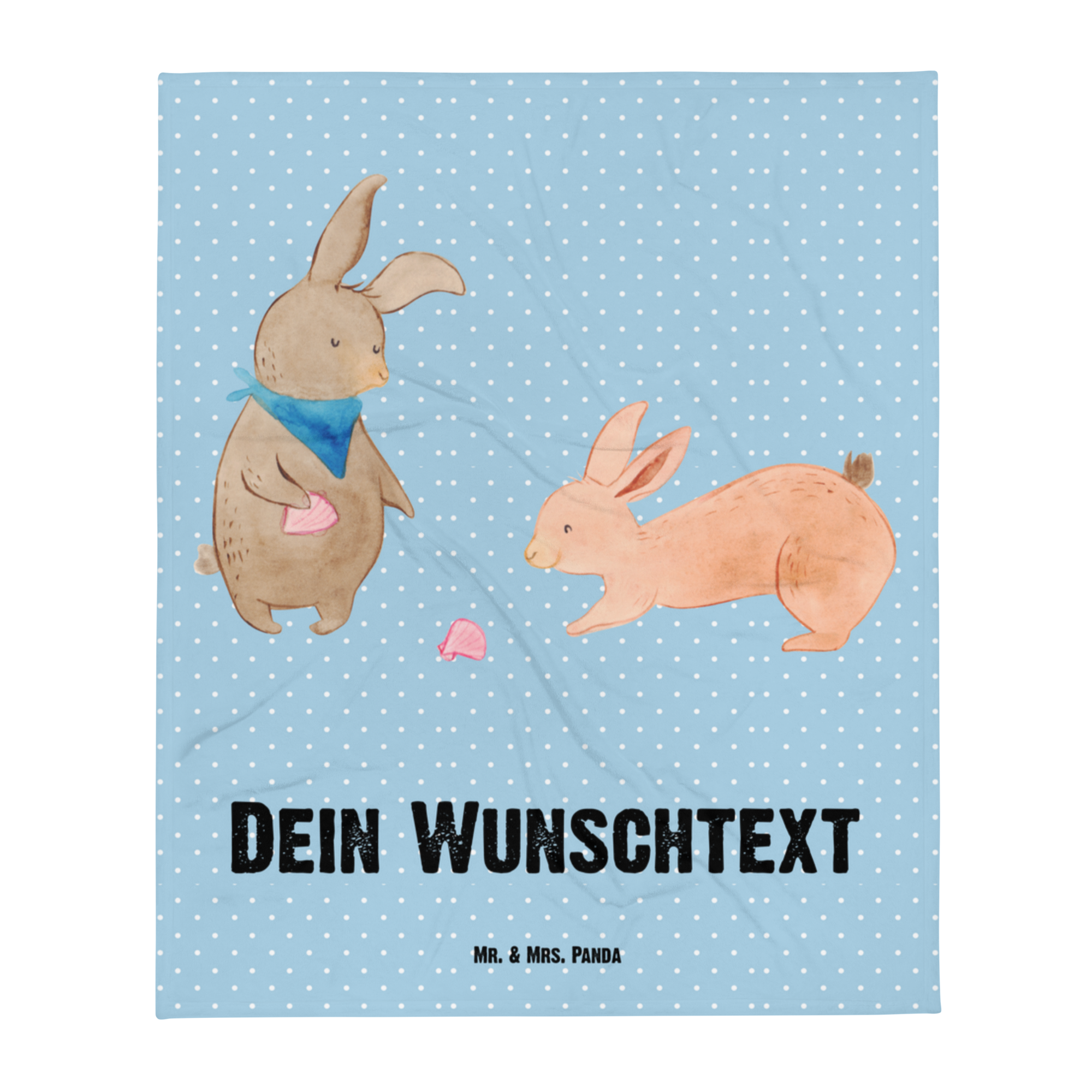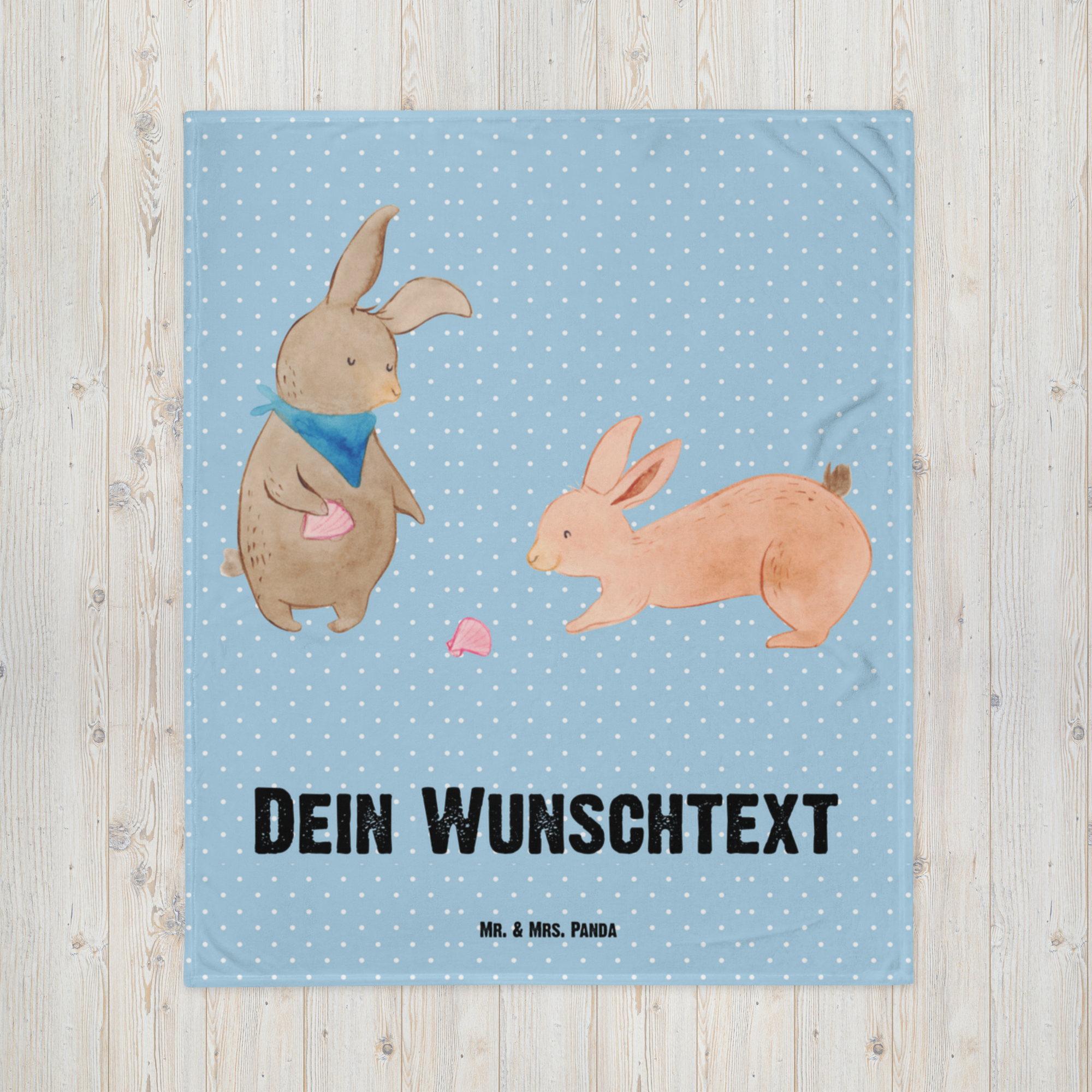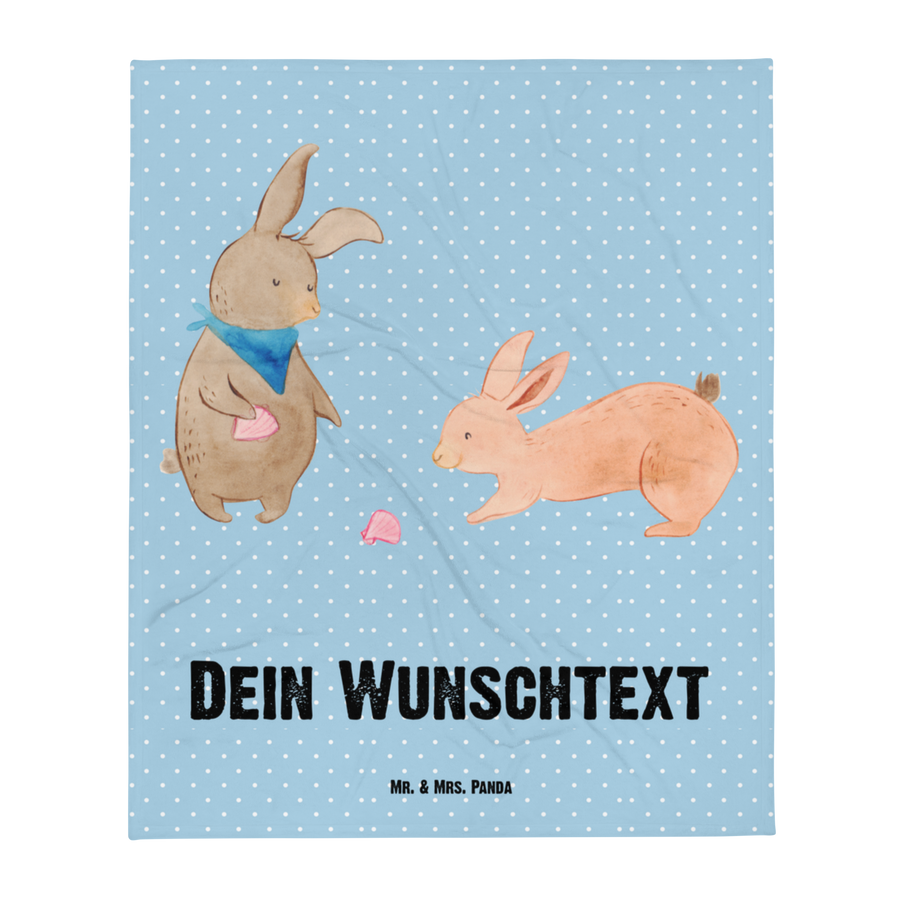 Babydecke mit Namen Hasen Muschel - Blau Pastell
