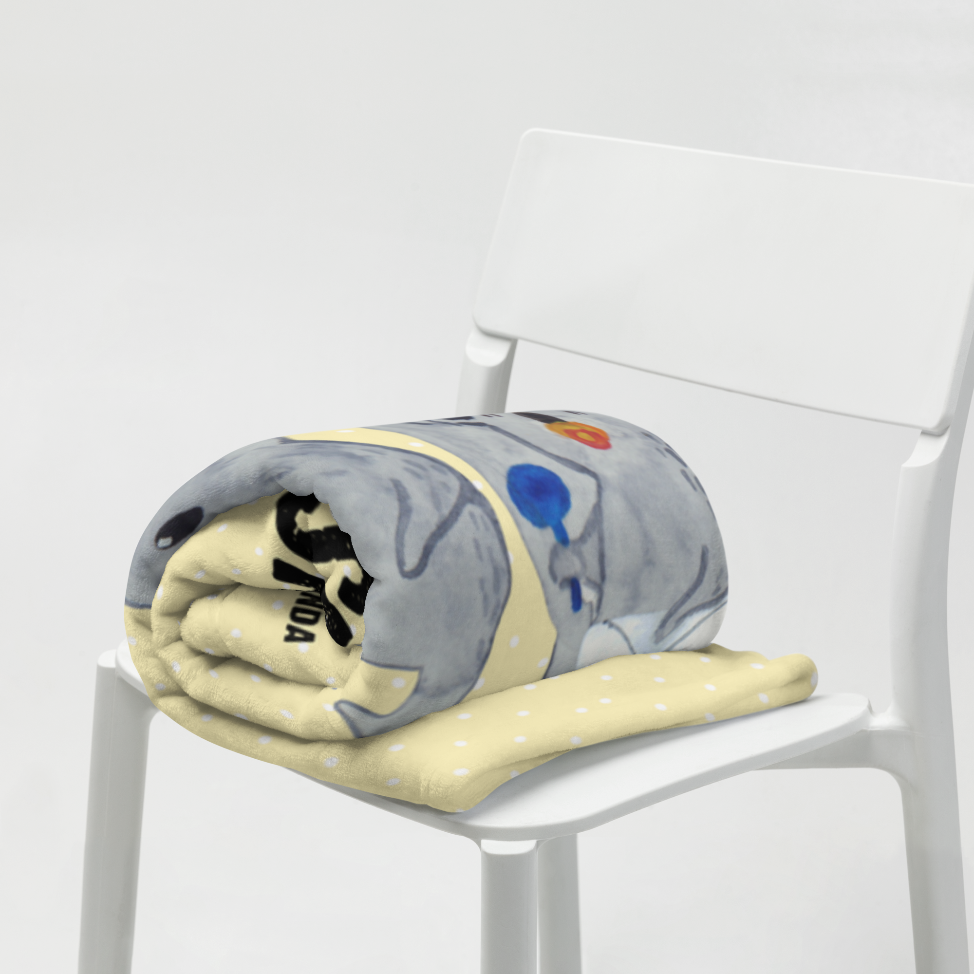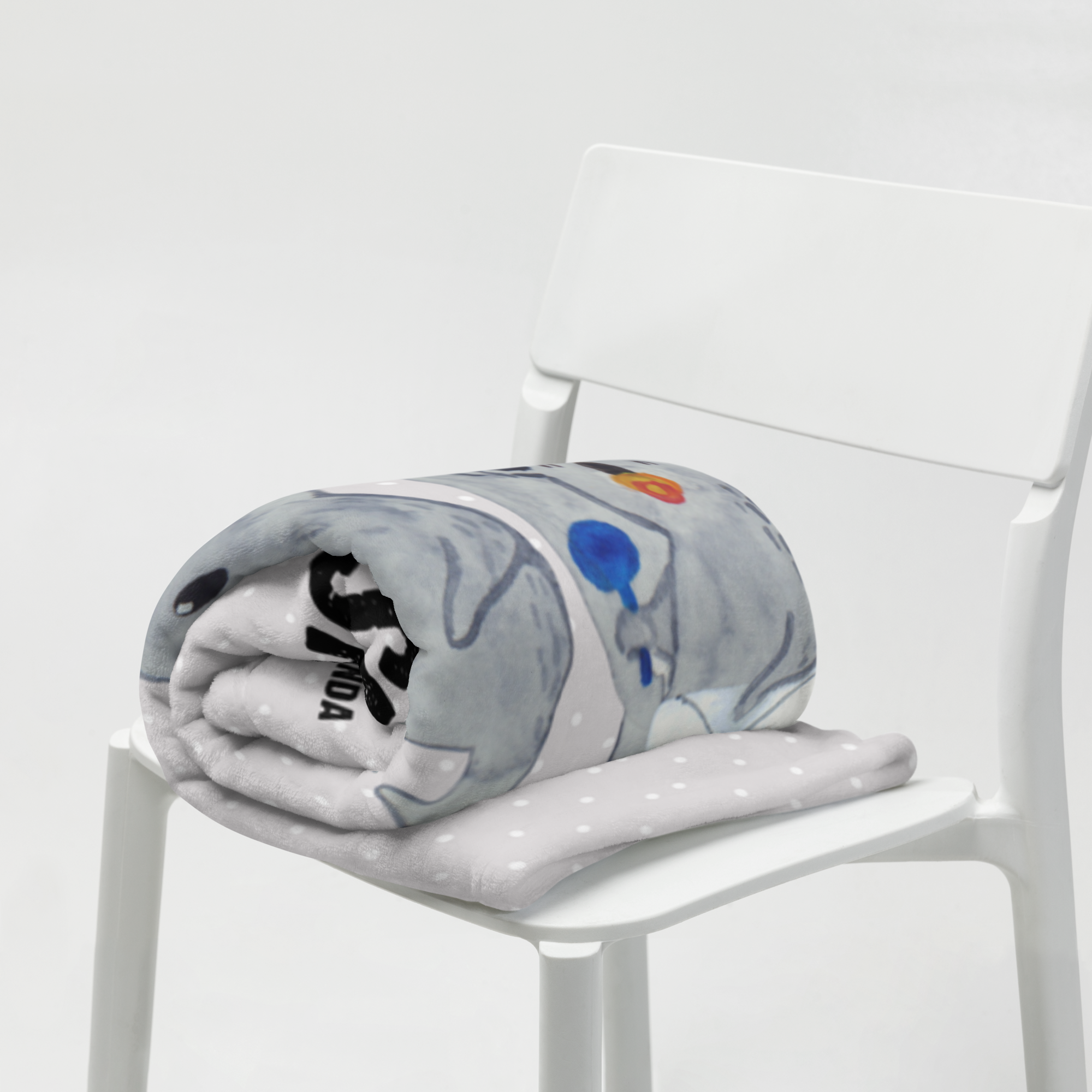 Die super flauschige personalisierte Babydecke mit Namen von Mr. & Mrs. Panda kann mit einem Namen bedruckt werden und ist ideal für kalte Monate und Tage. Die Größe der Kuscheldecke beträgt 127 x 153 cm und ist somit perfekt, um es sich im Wohnzimmer auf dem Sofa oder im Schlafzimmer auf dem Bett gemütlich zu machen.Die Sofadecke besteht aus Kuschel Fleece Mikrofaser und ist extrem flauschig. Die fellartige Kuscheldecke schmiegt sich herrlich weich an deinen Körper und wärmt außerordentlich gut, so wirst du sicherlich nicht frieren. Die Decke zeichnet sich durch ihre hochwertige und strapazierfähige Qualität aus. Alternativ kannst du die Decke auch 140x200 cm kaufen. Sie eignet sich auch optimal als Tagesdecke für Kinder und Erwachsene.