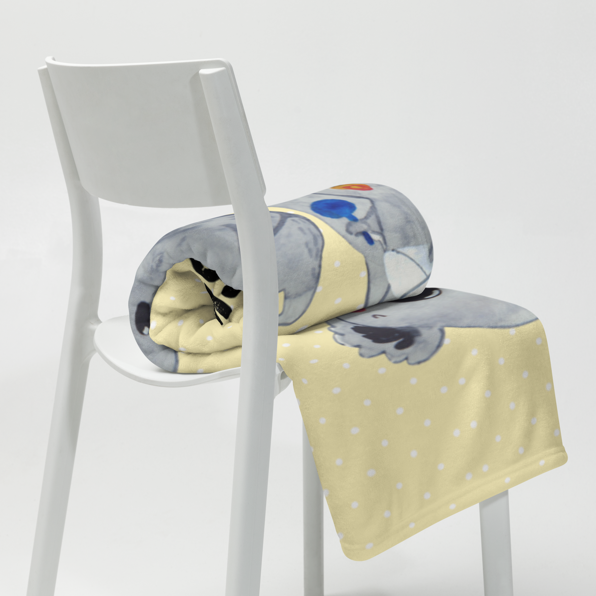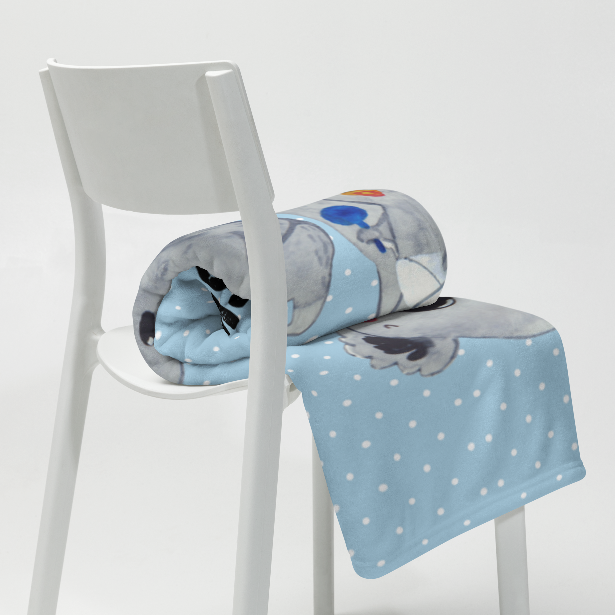 Babydecke mit Namen Koala Familie - Blau Pastell