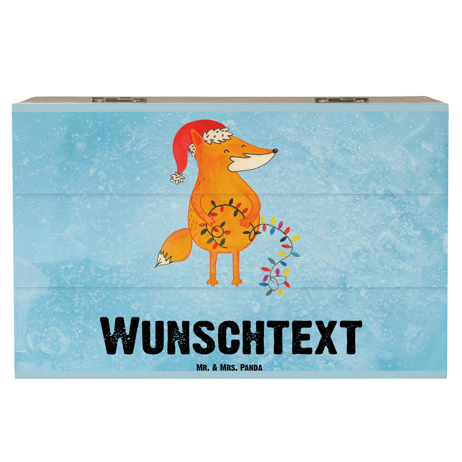 Personalisierte Holzkiste Fuchs Weihnachten - Eisblau - 19 x 12 cm
