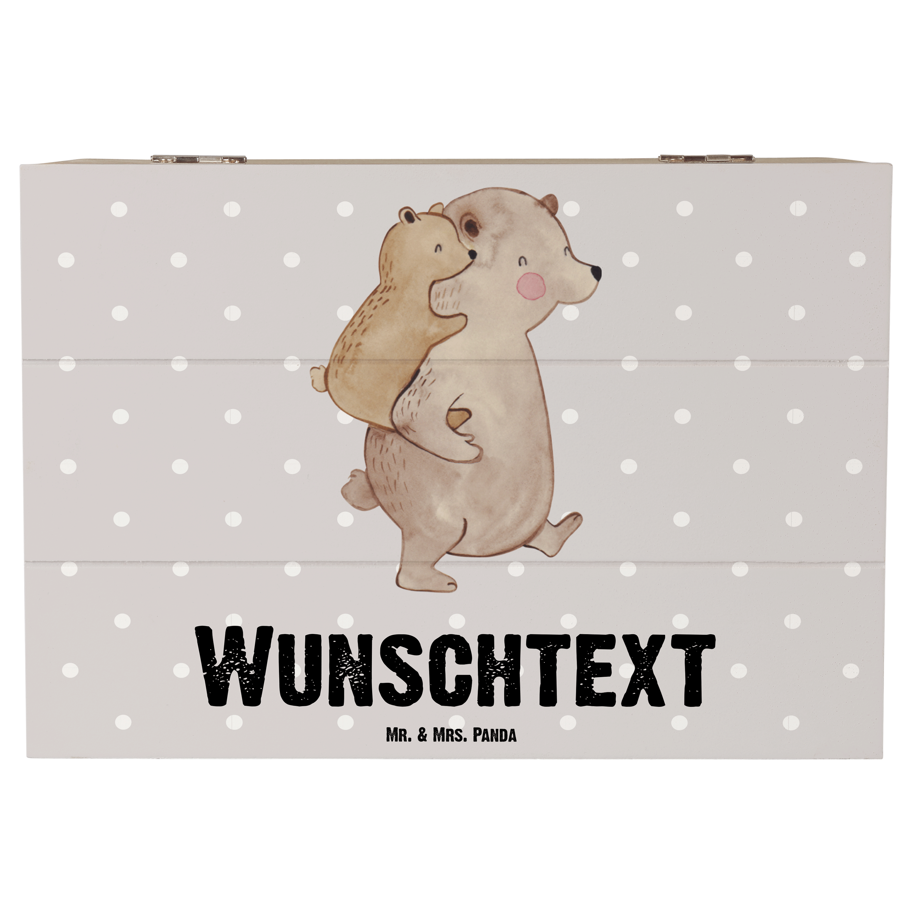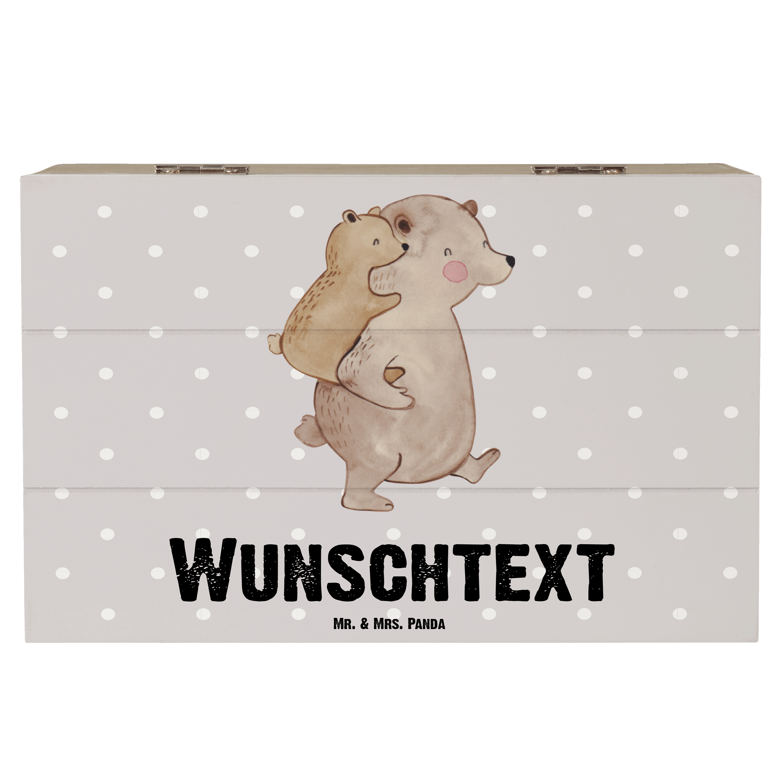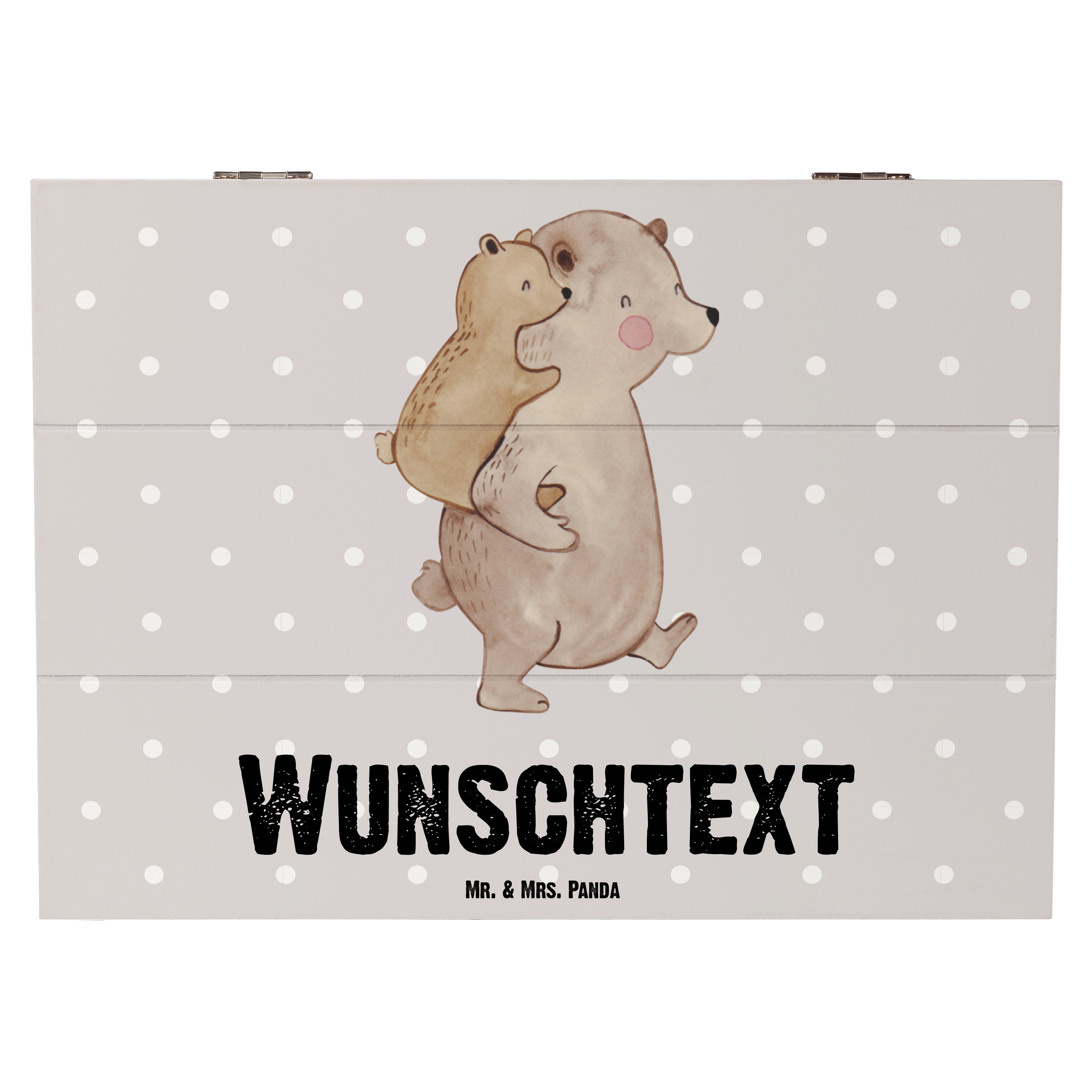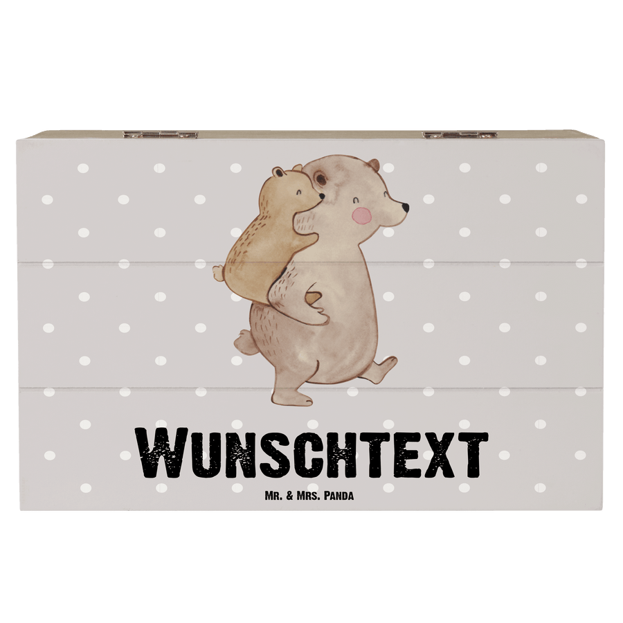 Personalisierte Holzkiste Papa Bär - Grau Pastell - 19 x 12 cm
