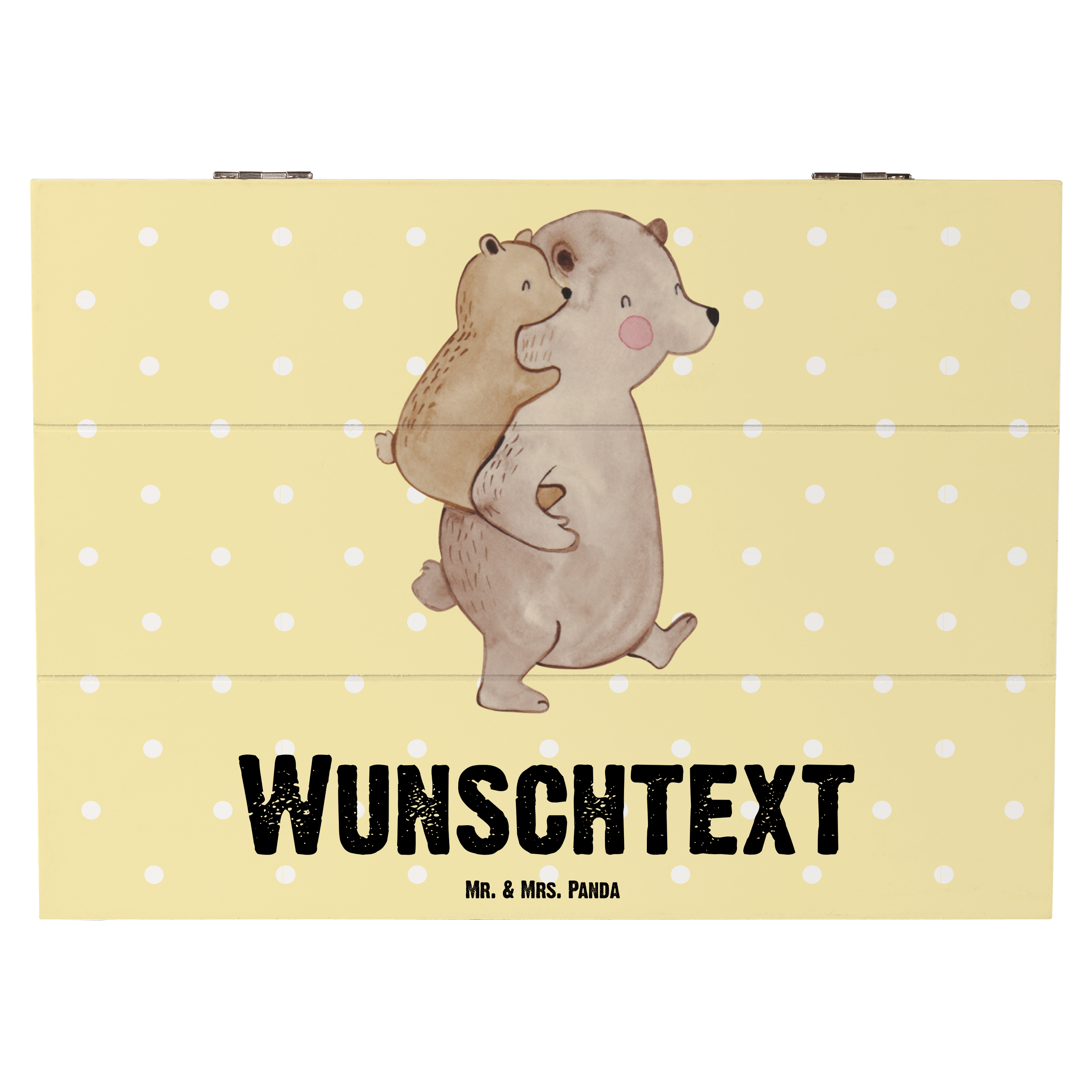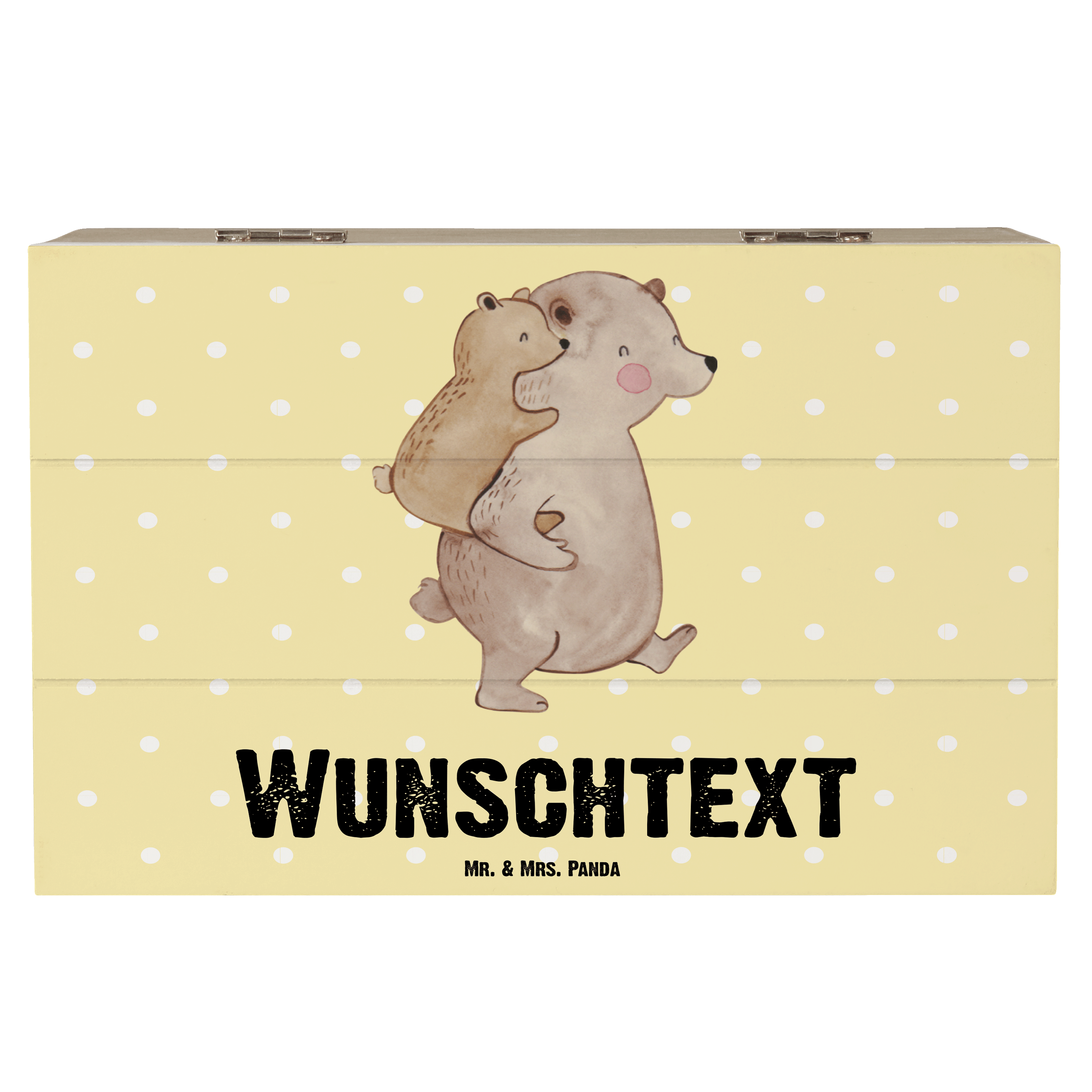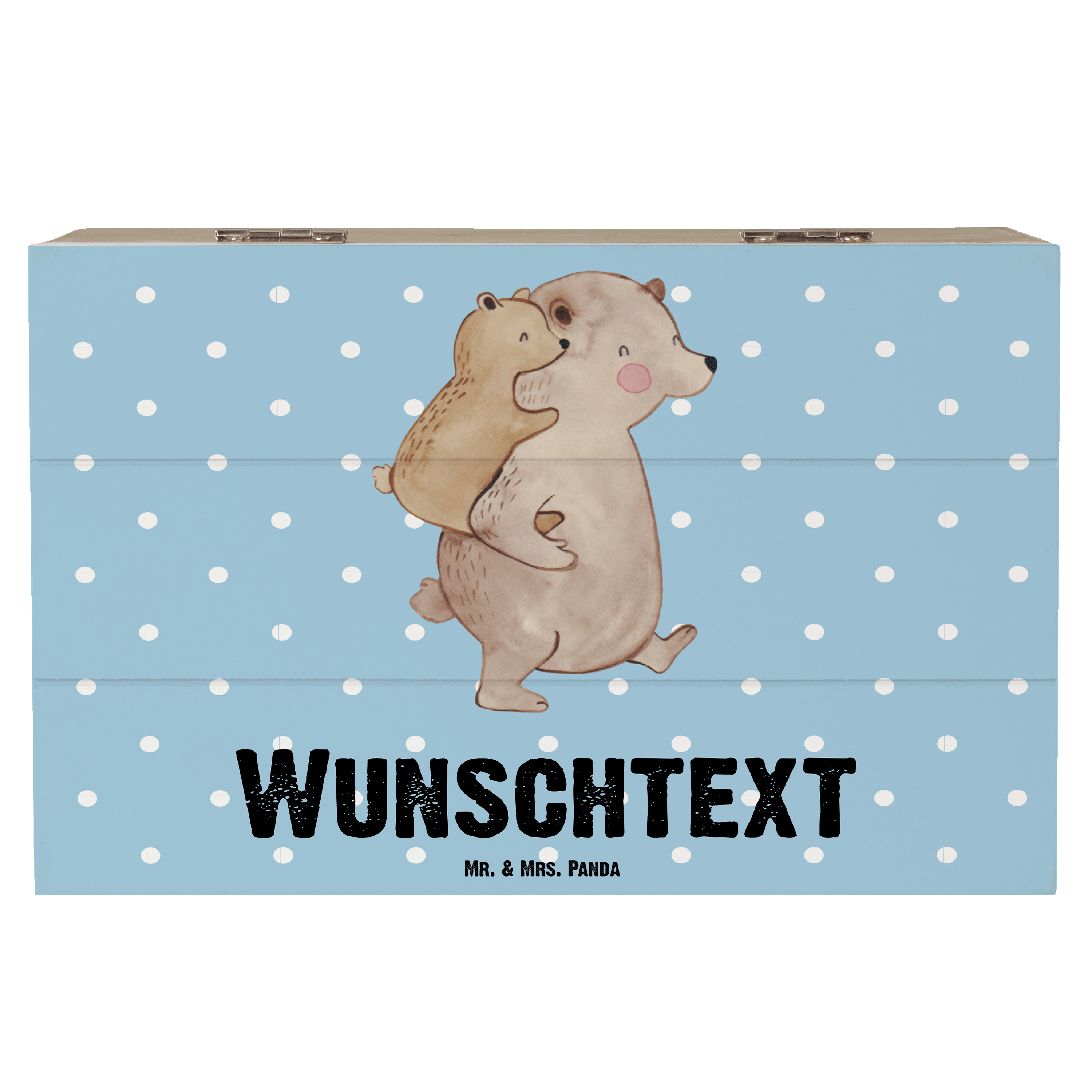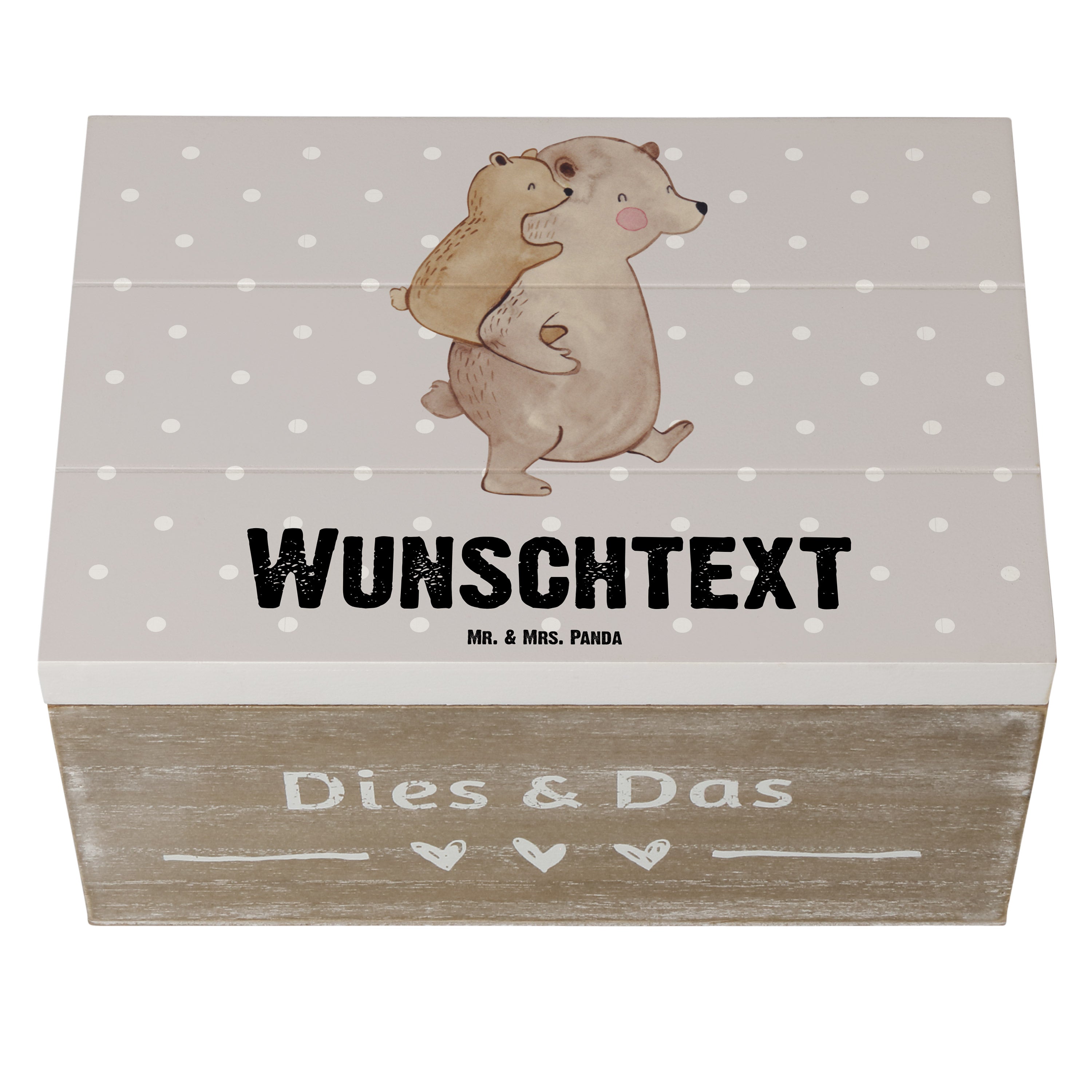 Personalisierte Holzkiste Papa Bär - Grau Pastell - 19 x 12 cm