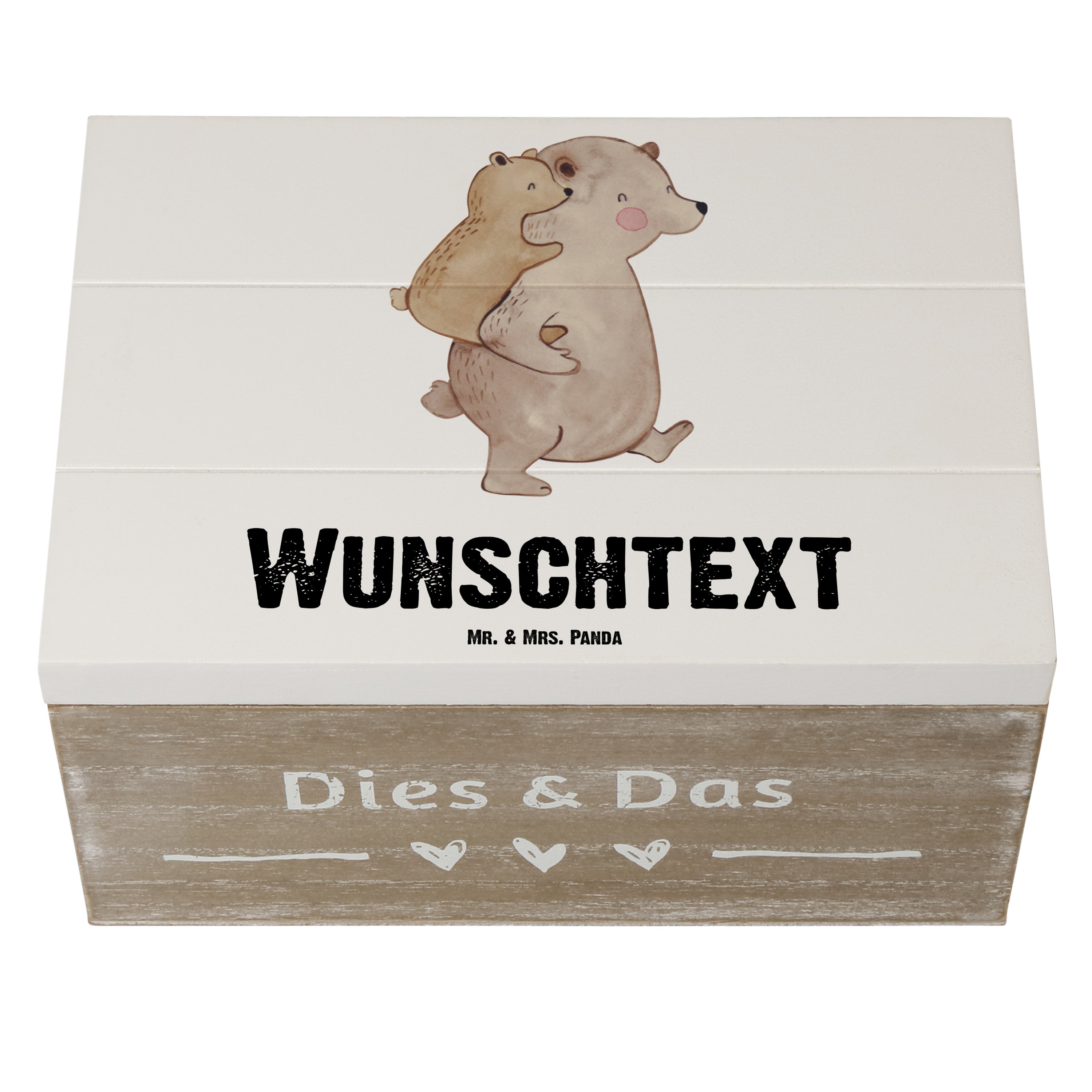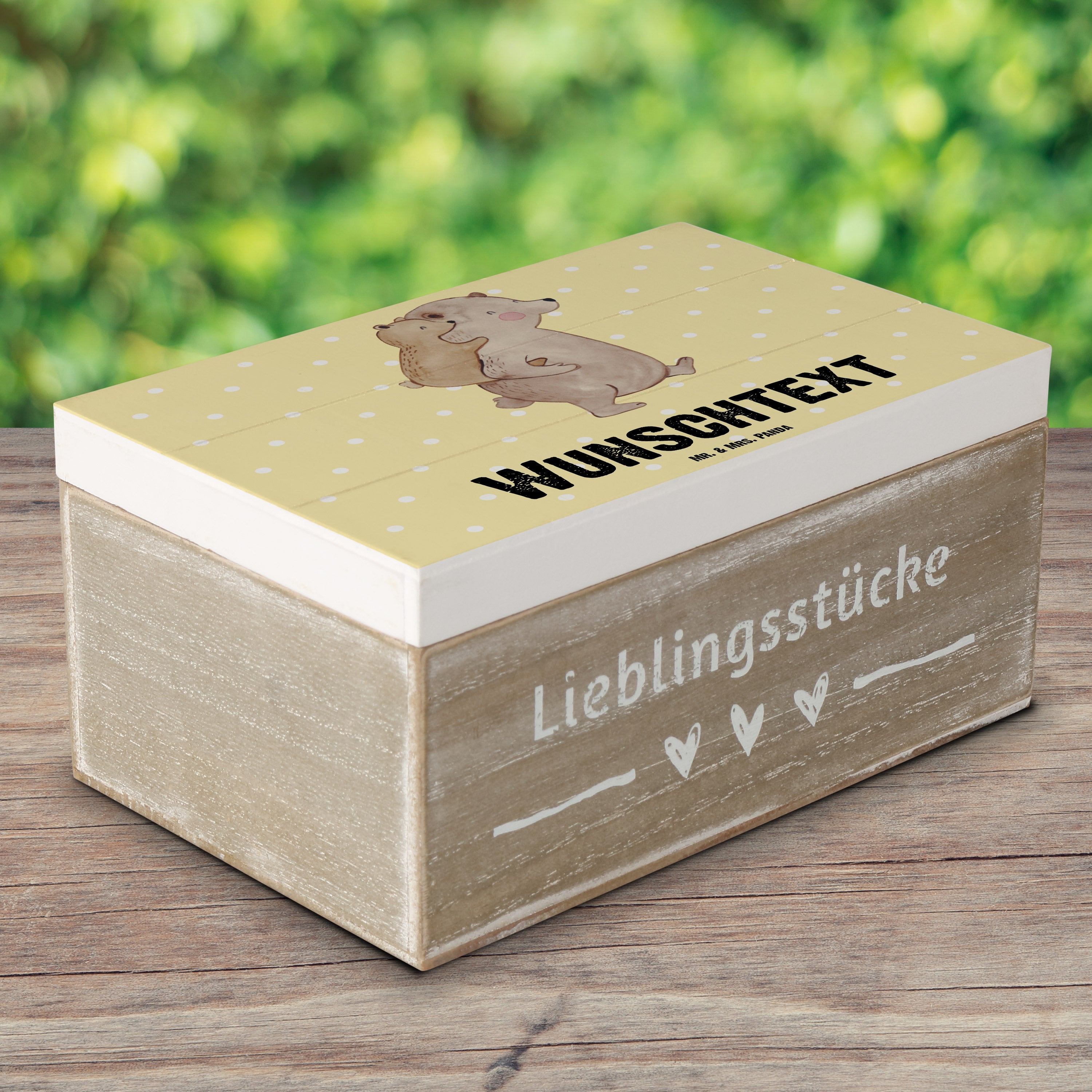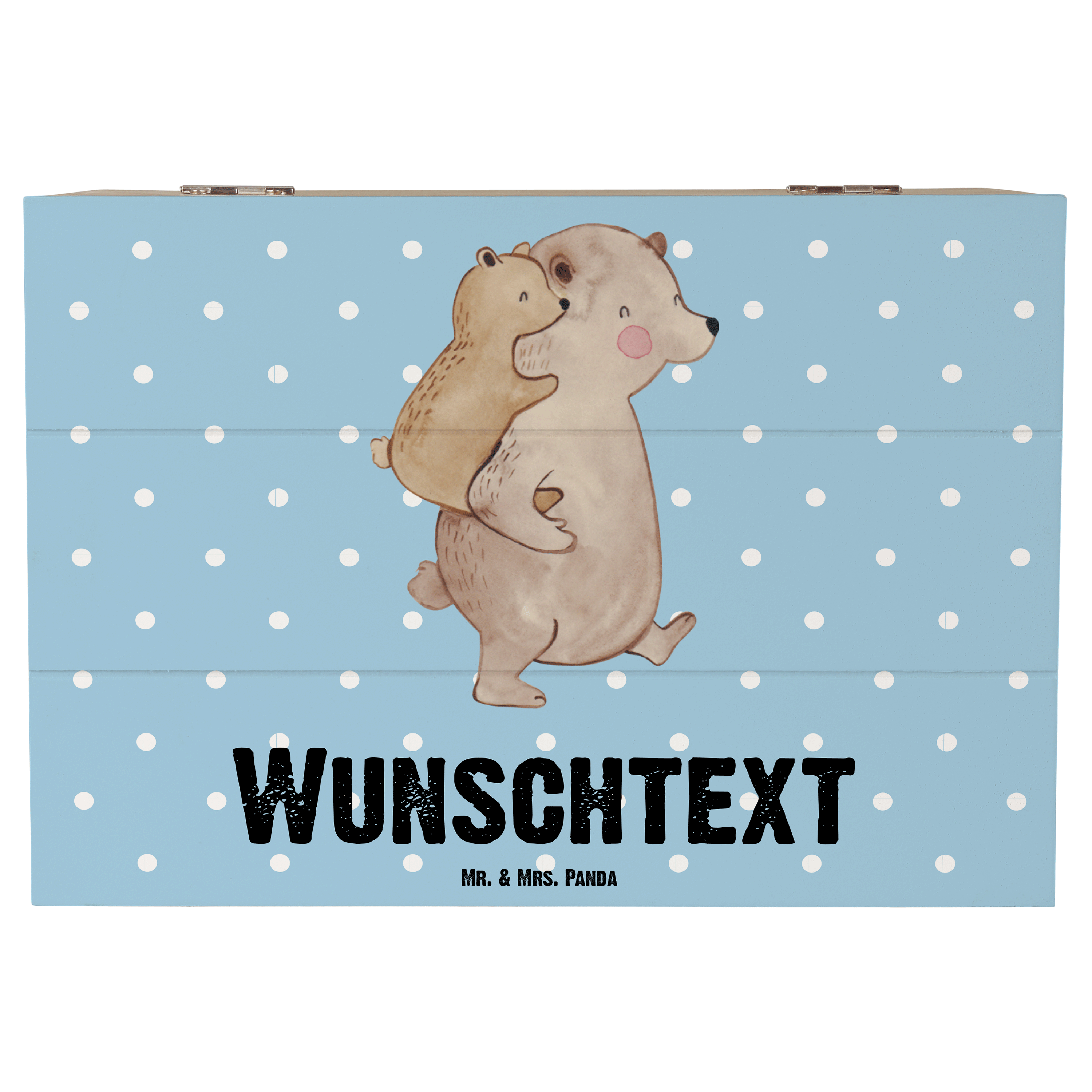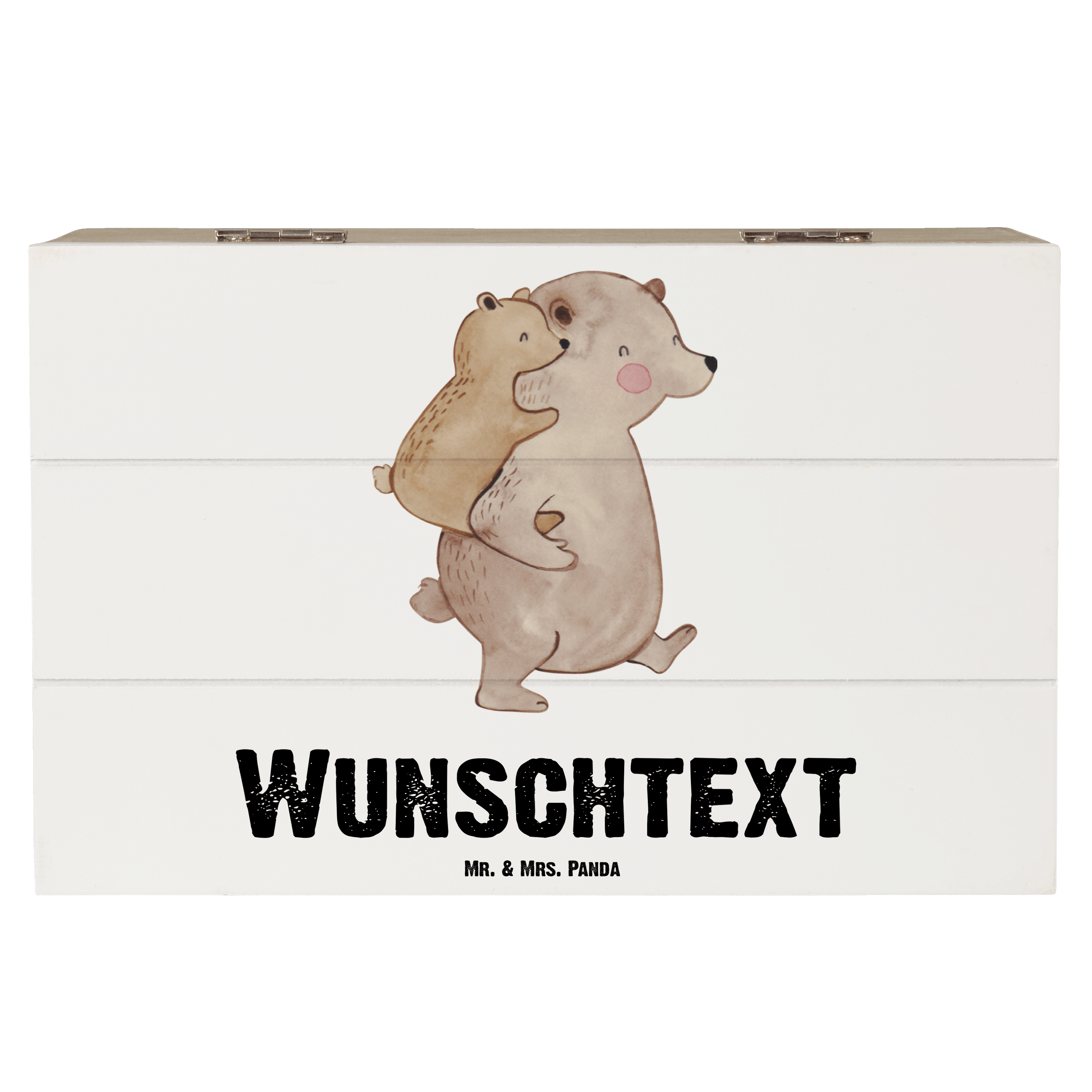 Personalisierte Holzkiste Papa Bär - Grau Pastell - 19 x 12 cm